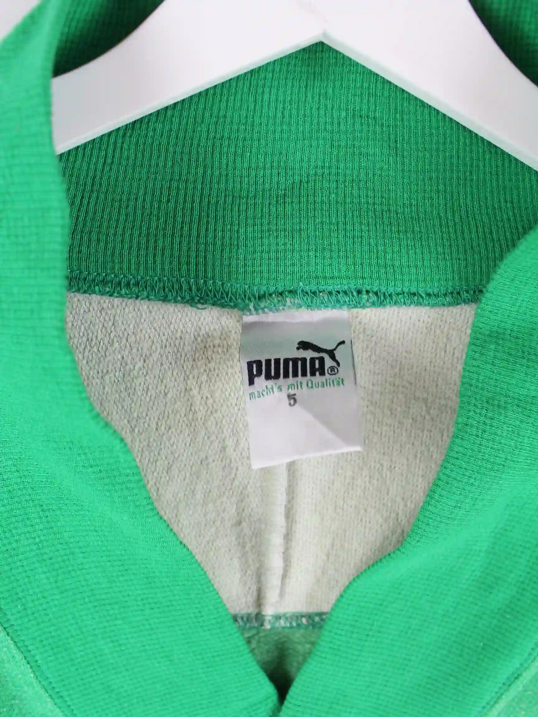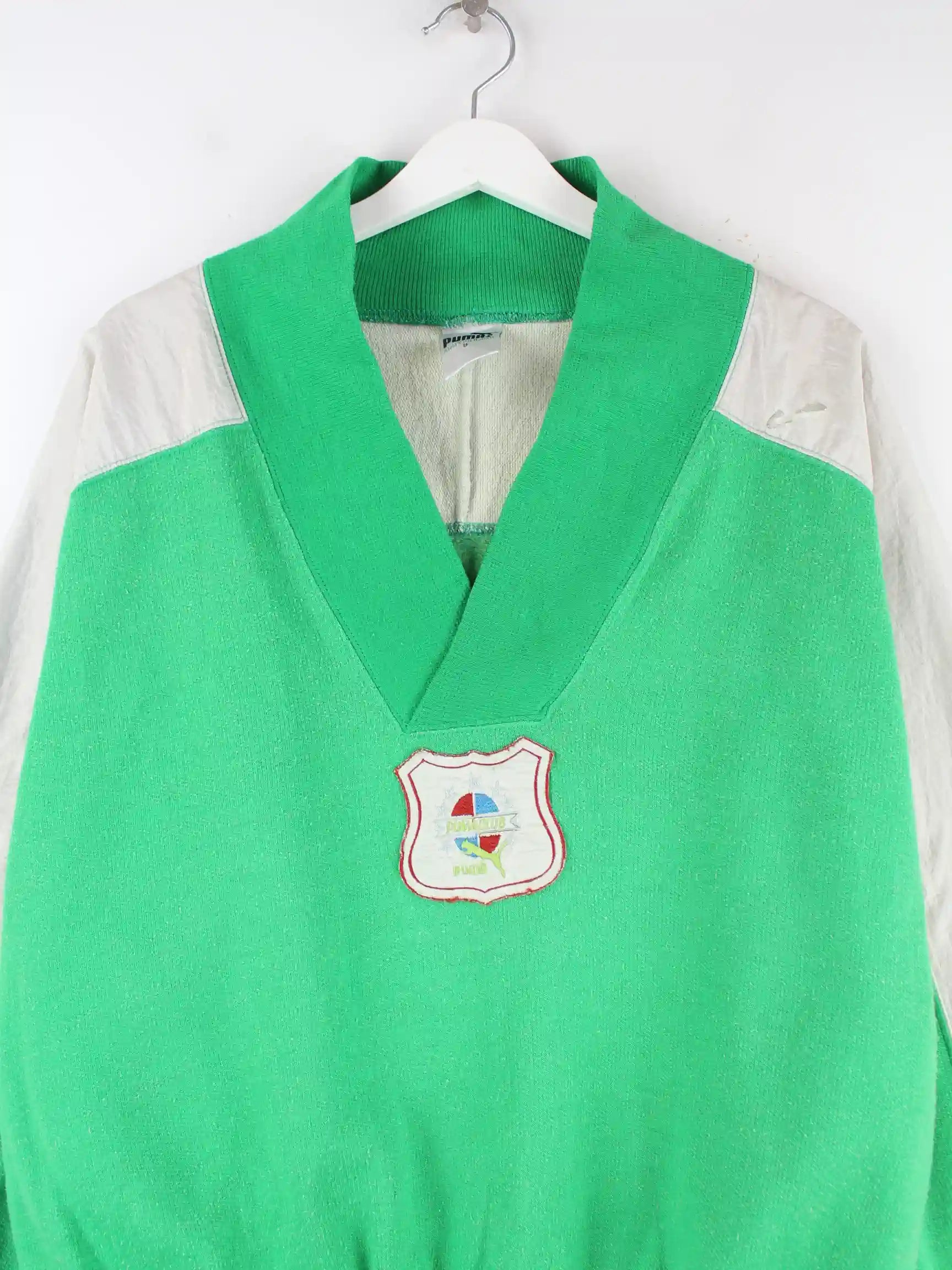 Sweater des Labels Puma in Größe M aus den 80'ern. Er ist aus einer Baumwollmischung und in Grün bei uns vorrätig.