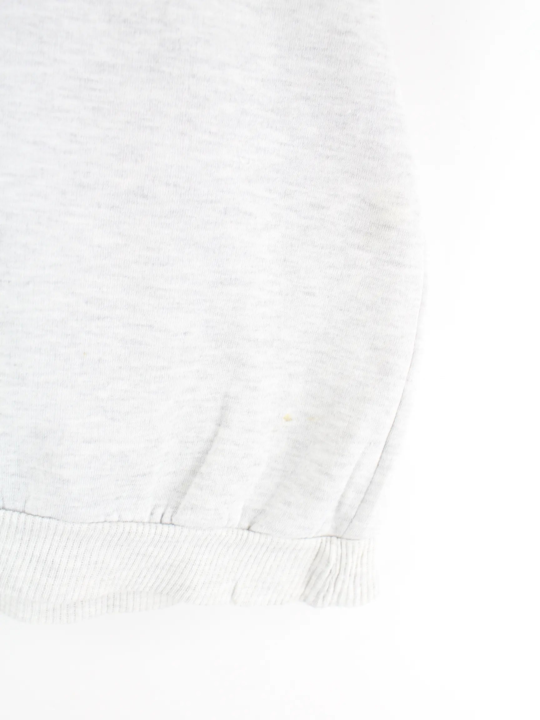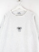 Grauer Sweater mit gestickten Motiven vom Brand Puma aus den 80'ern in Größe L. Er ist aus einer Baumwollmischung produziert. Den Zustand würden wir als 'In Ordnung' bezeichnen (vergl. Bilder).