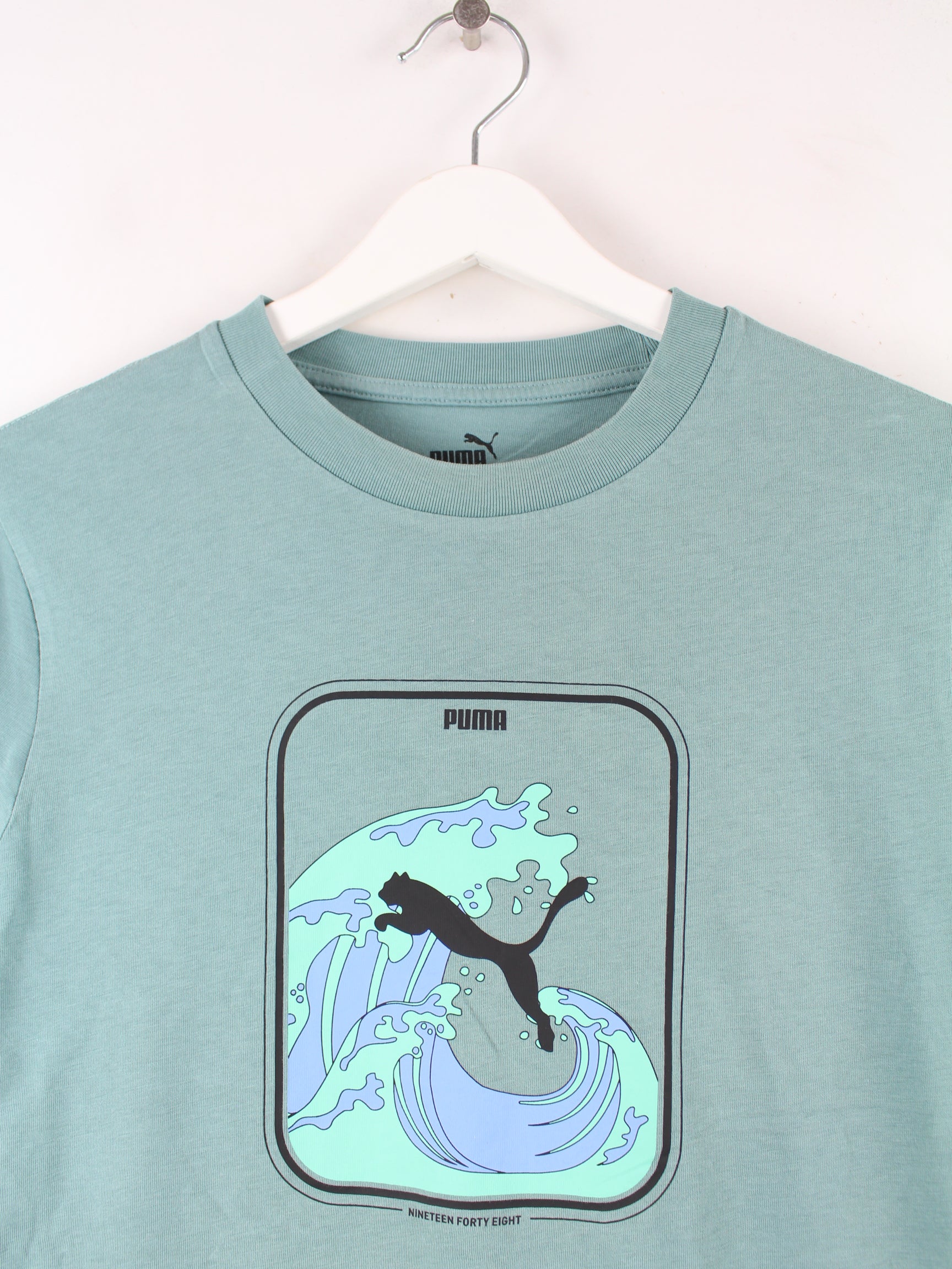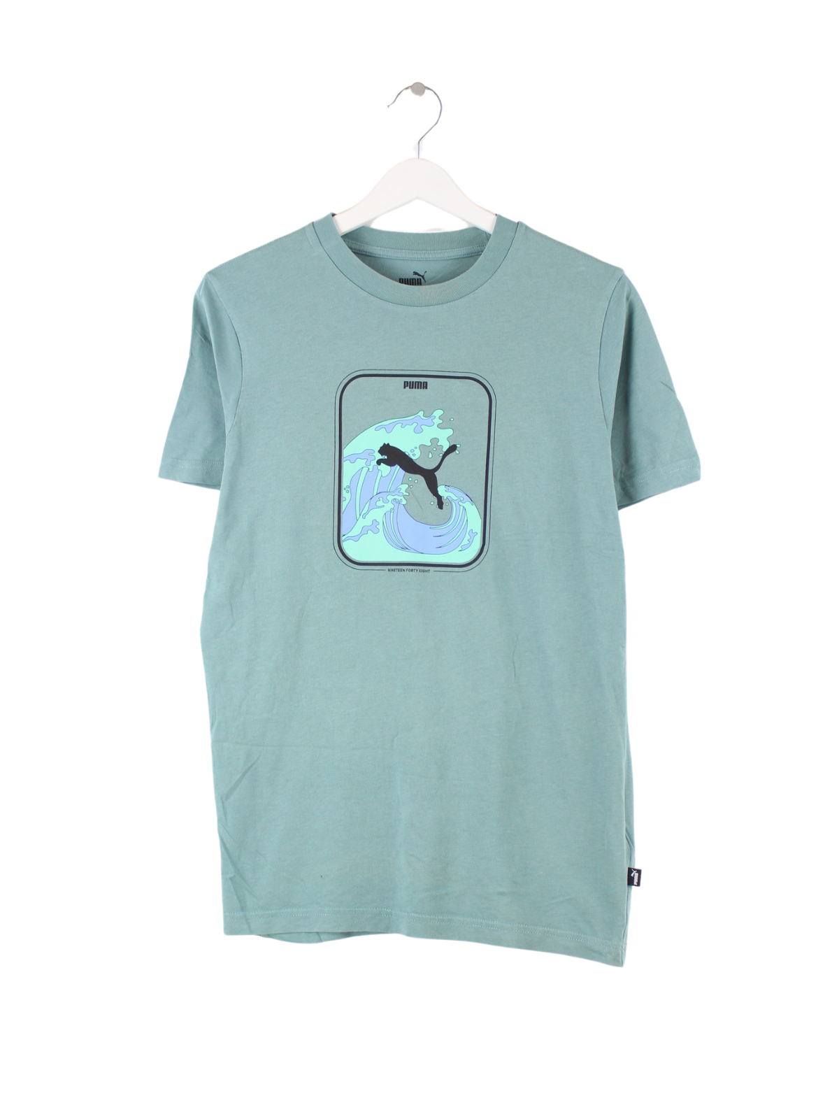 Green T-shirt from the Puma label in size S. It is made of cotton and is in good condition. With a chic print.