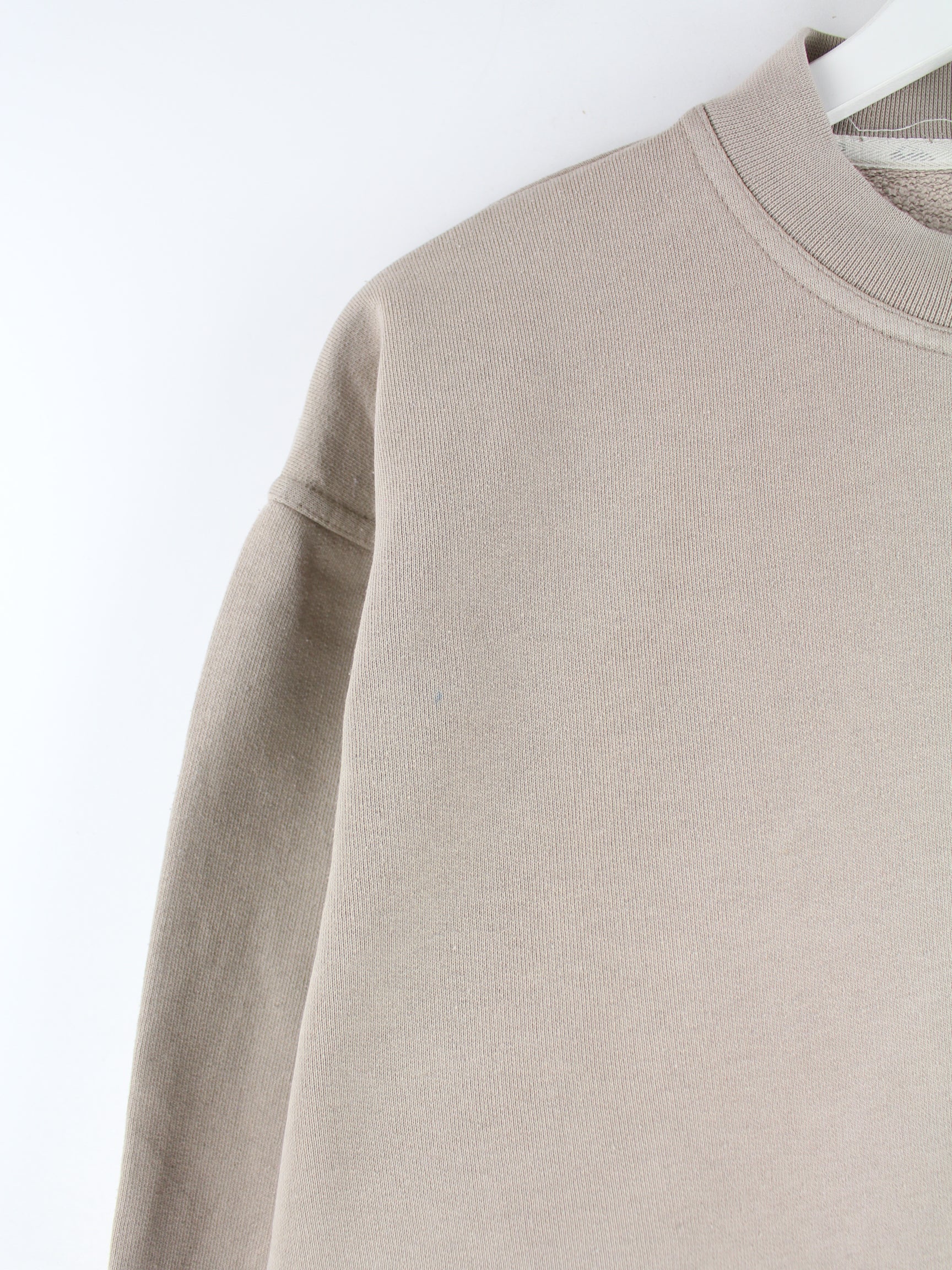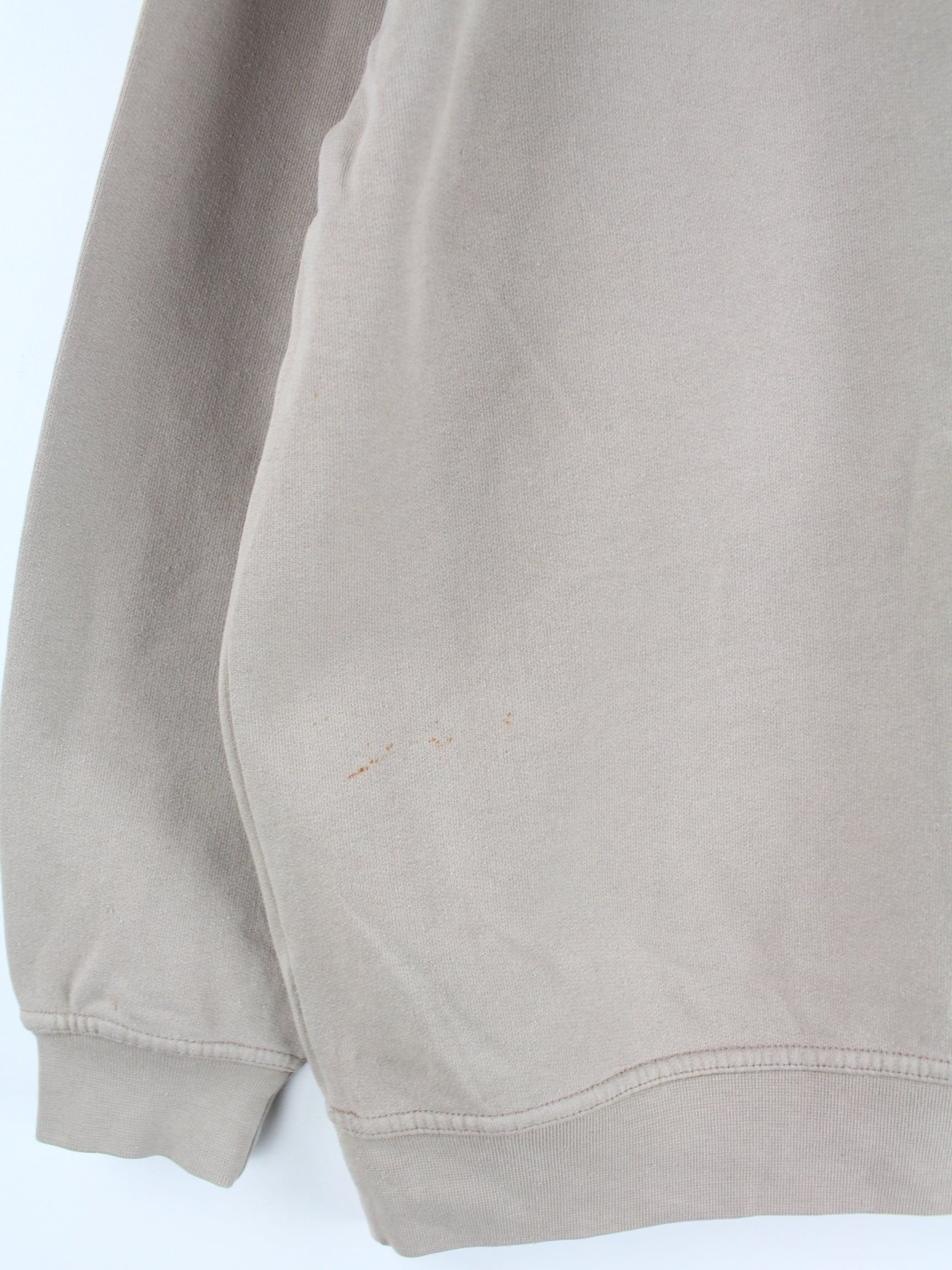 Sweater der Brand Quiksilver mit Stickereien in Größe M aus den 90'ern. Er ist aus einer Baumwollmischung gefertigt und in Beige zu haben.