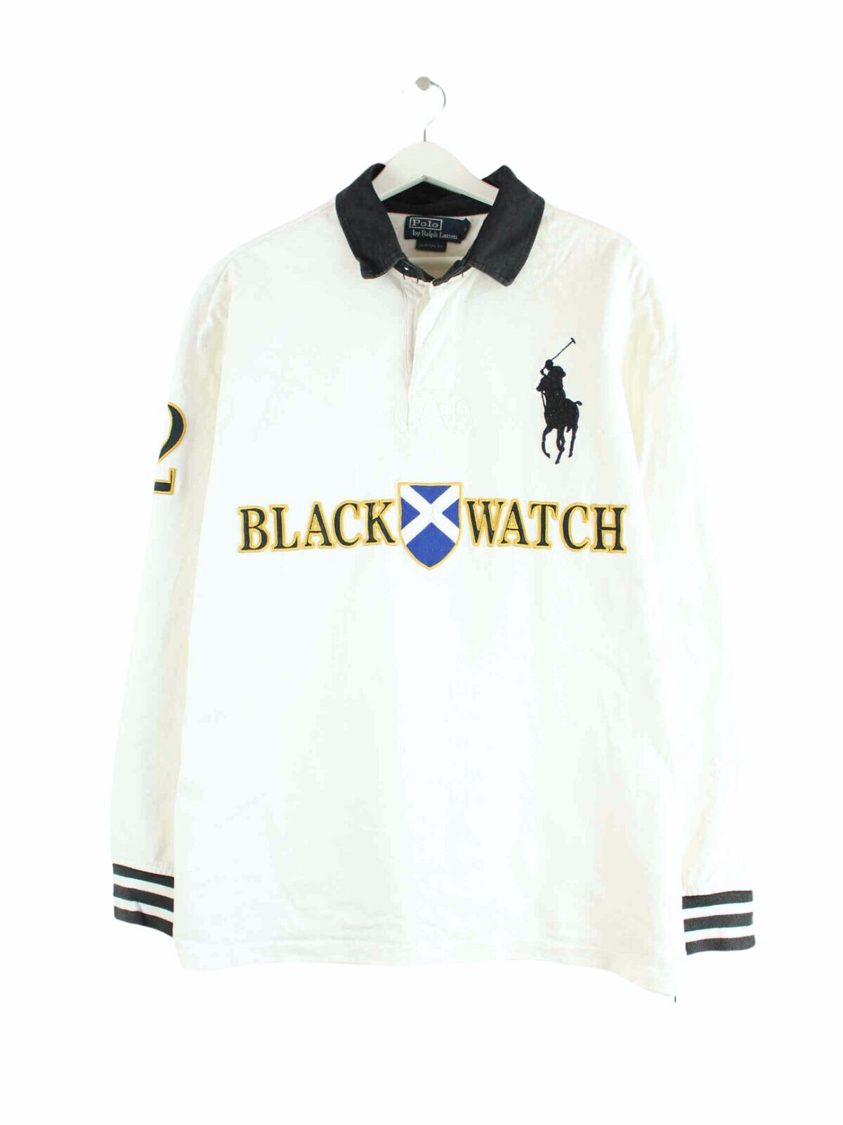 Ralph Lauren 90s Vintage Black Watch Embroidered Long Sleeve Polo White L