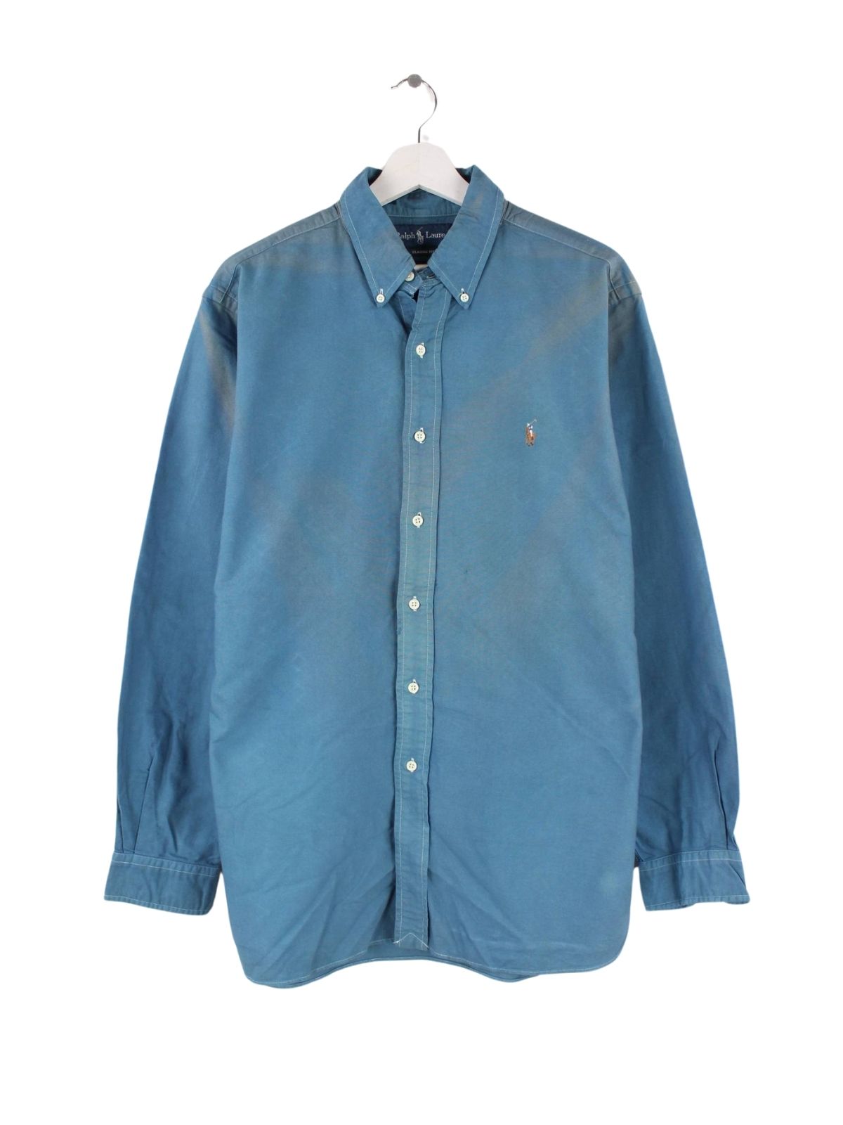 Hemd des Labels Ralph Lauren in Größe XL aus den 90'ern. Es ist aus Baumwolle hergestellt und in Blau im Bestand.