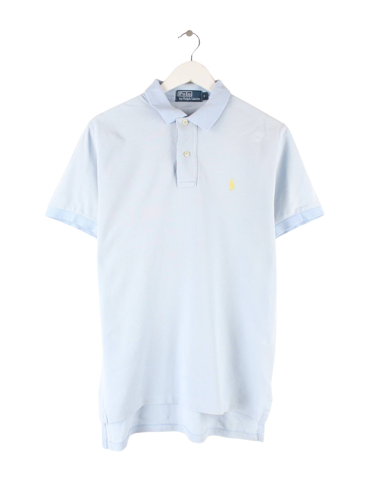 Blaues Poloshirt der Brand Ralph Lauren aus den 90'ern in Größe S. Es ist aus Baumwolle produziert und in gutem Zustand auf Lager.