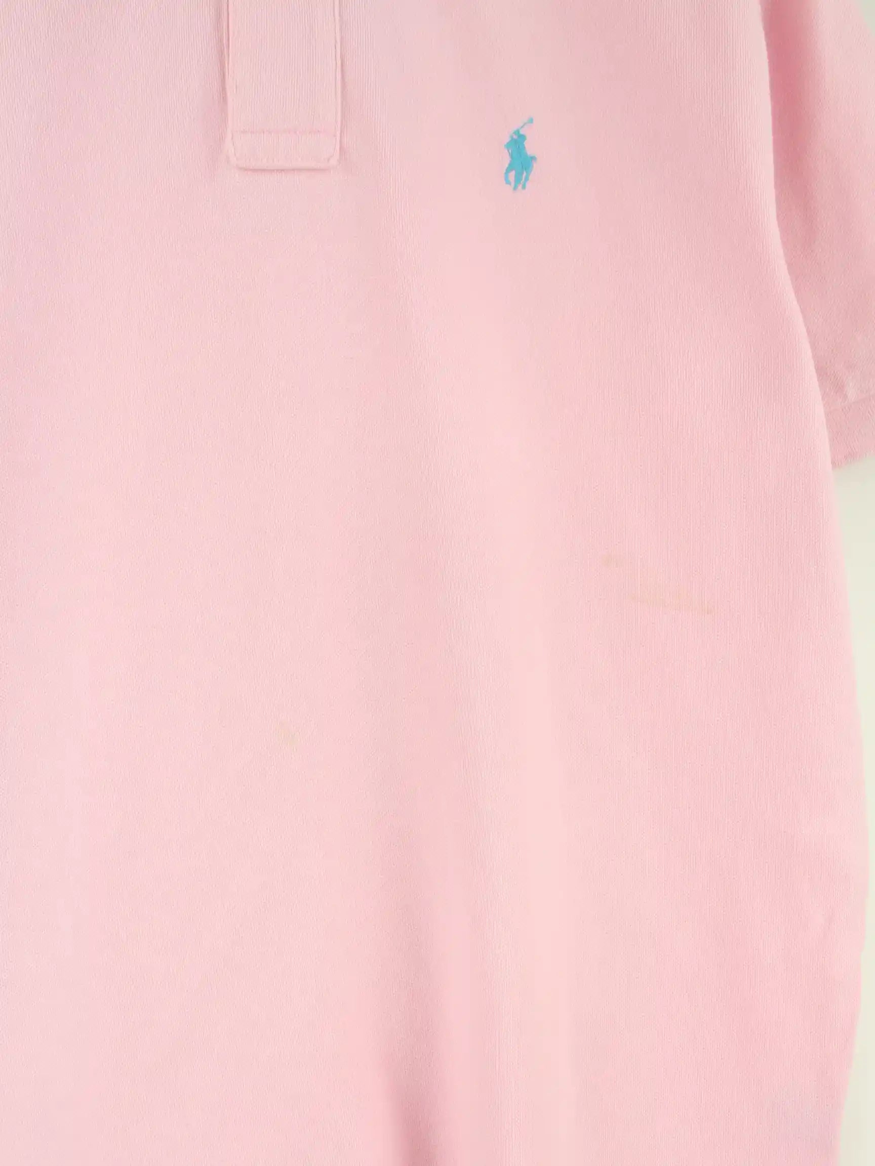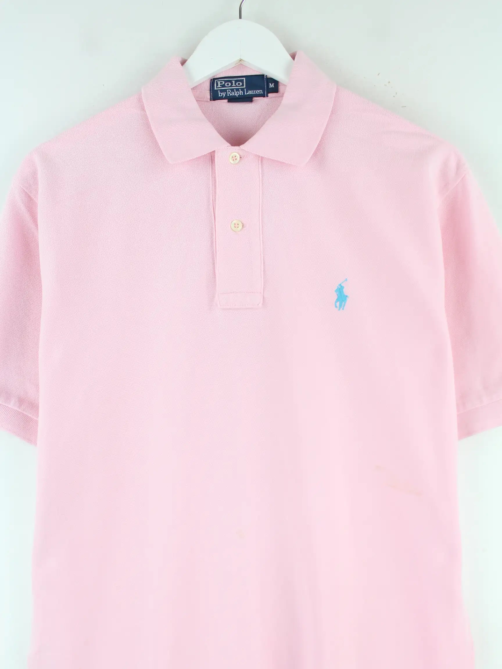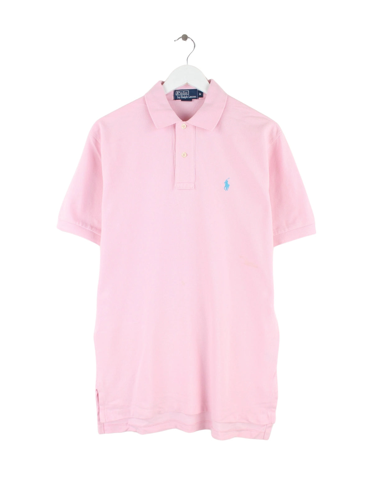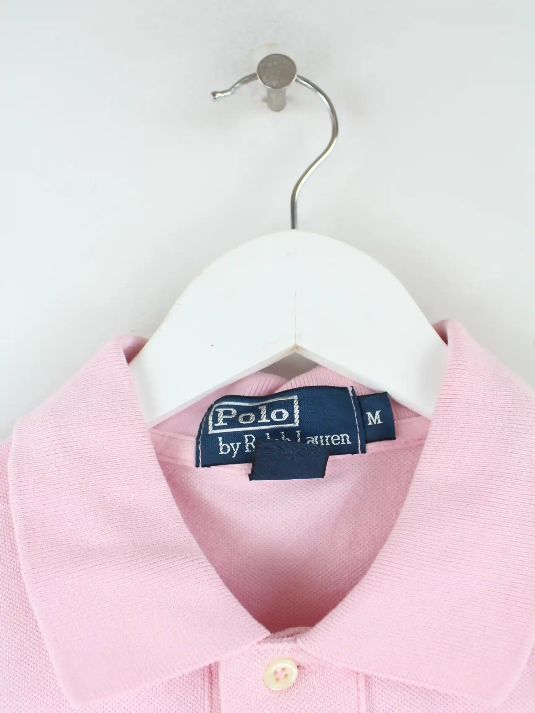 Rosafarbenes Poloshirt vom Label Ralph Lauren aus den 90'ern in Größe M. Es ist aus Baumwolle hergestellt. Den Zustand würden wir als 'In Ordnung' bezeichnen (vergl. Bilder).