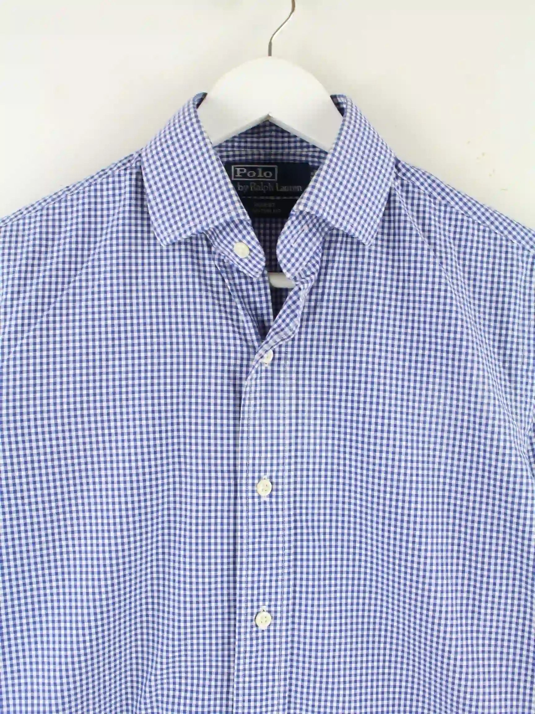 Blaues Hemd vom Brand Ralph Lauren aus den 90'ern in Größe M. Es ist aus Baumwolle gefertigt. Den Zustand würden wir als 'In Ordnung' bezeichnen (vergl. Bilder).