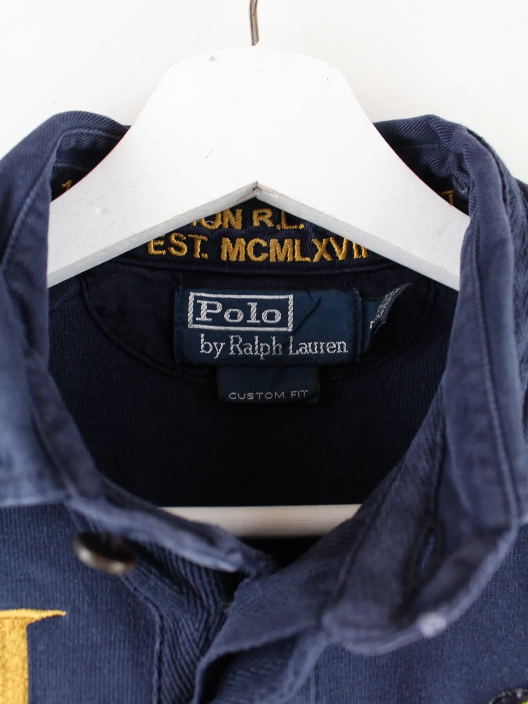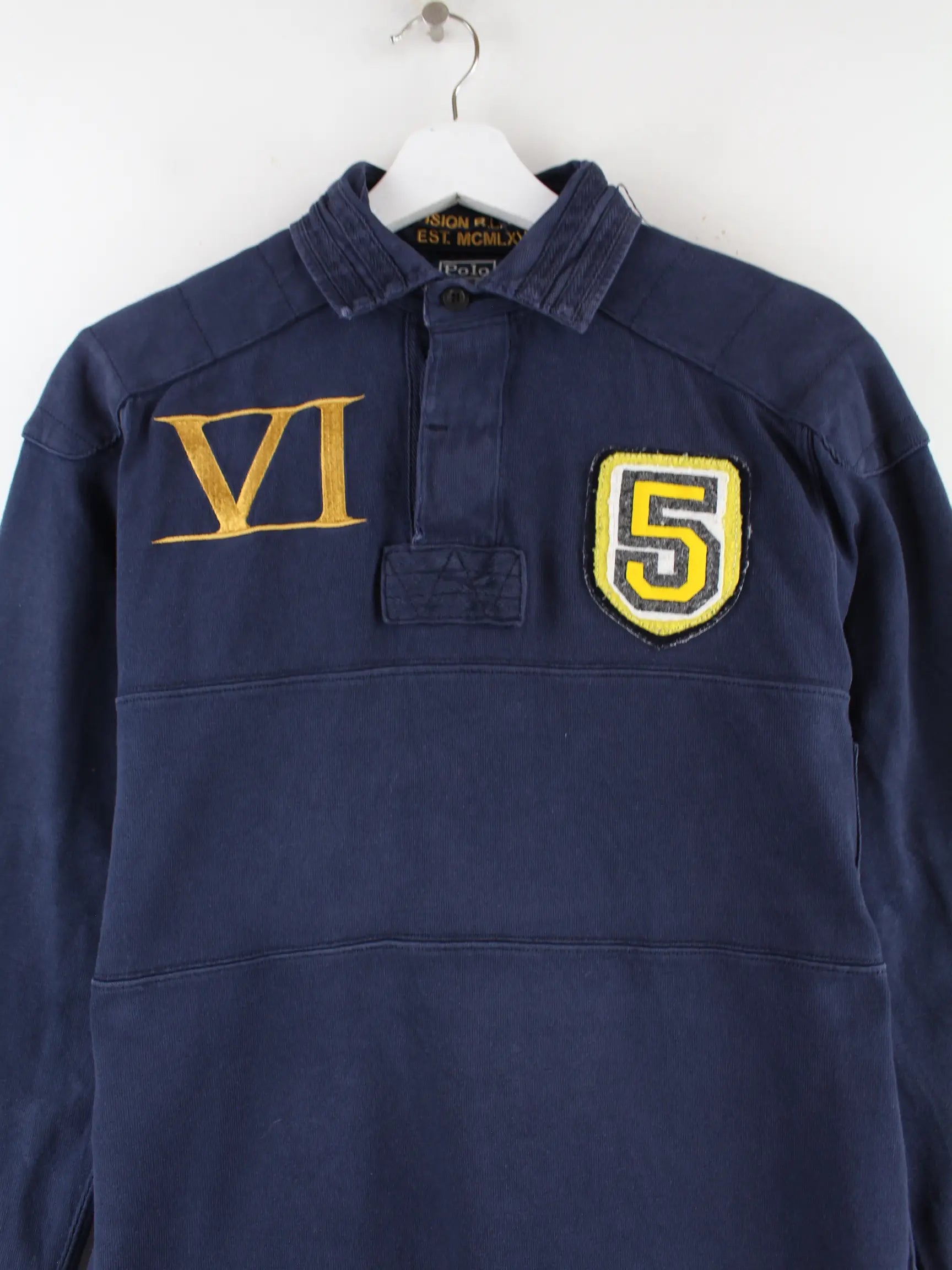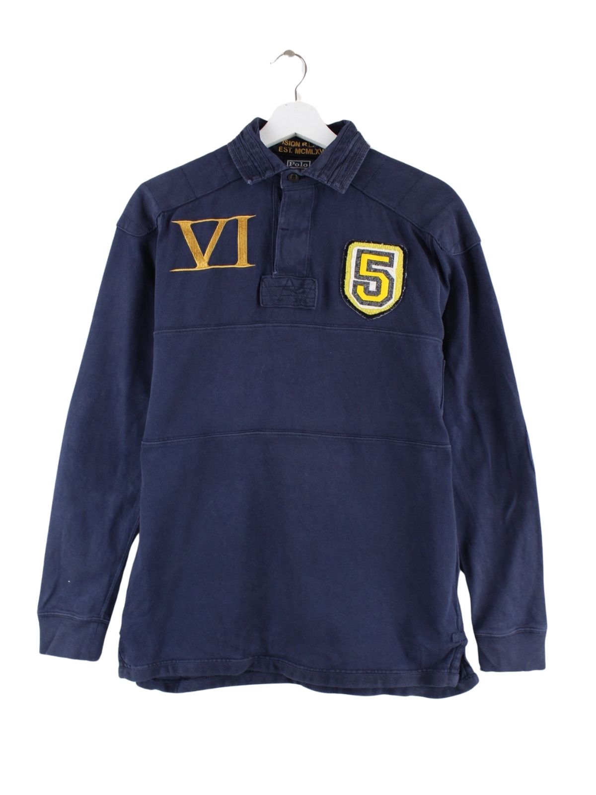Ralph Lauren 90s Vintage Rugby Langarm Polo Blau S