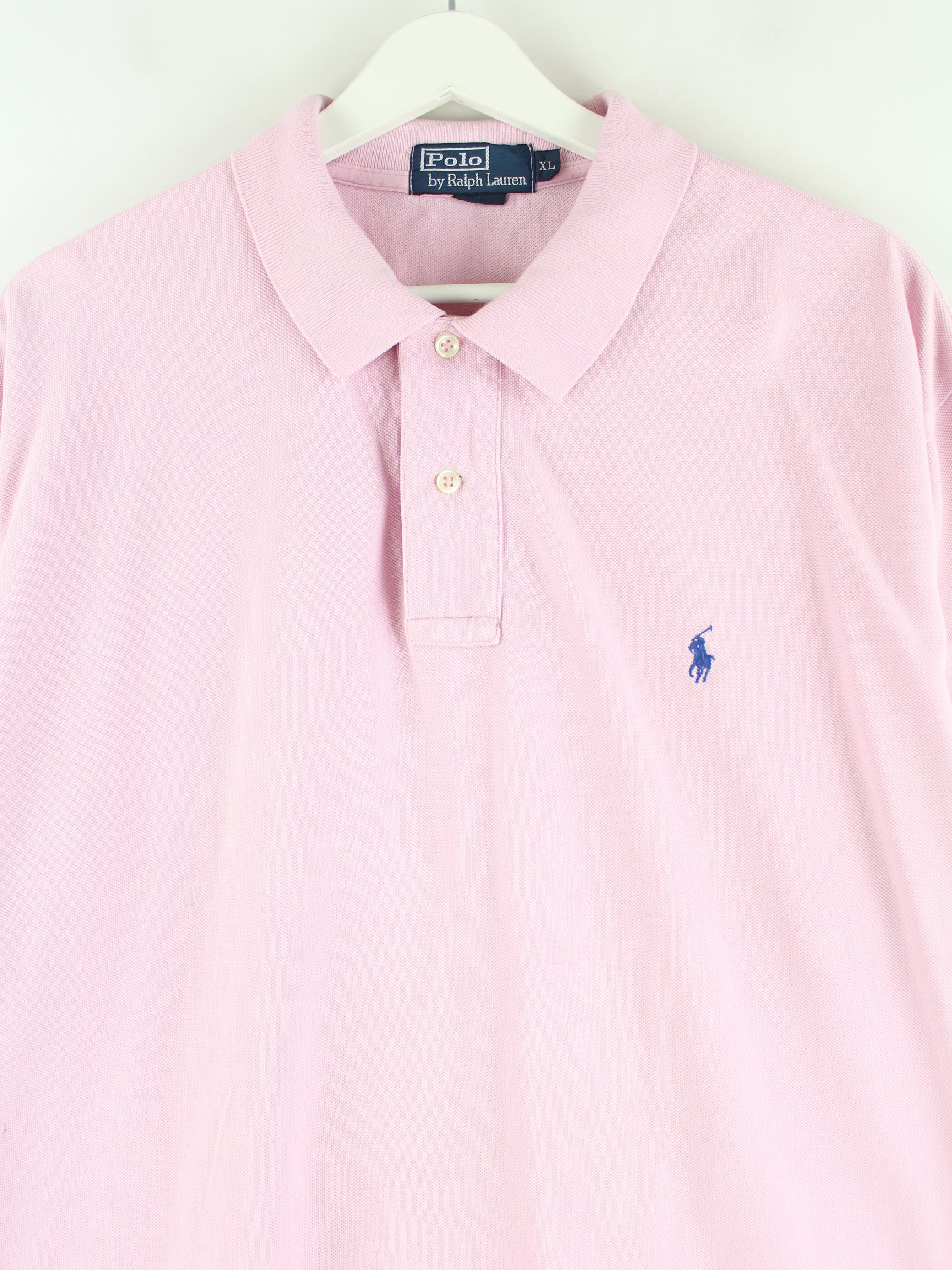 Pink polo shirt by Ralph Lauren from the 90's in size XL. It is made of cotton. We would describe the condition as 'fine' (see pictures).