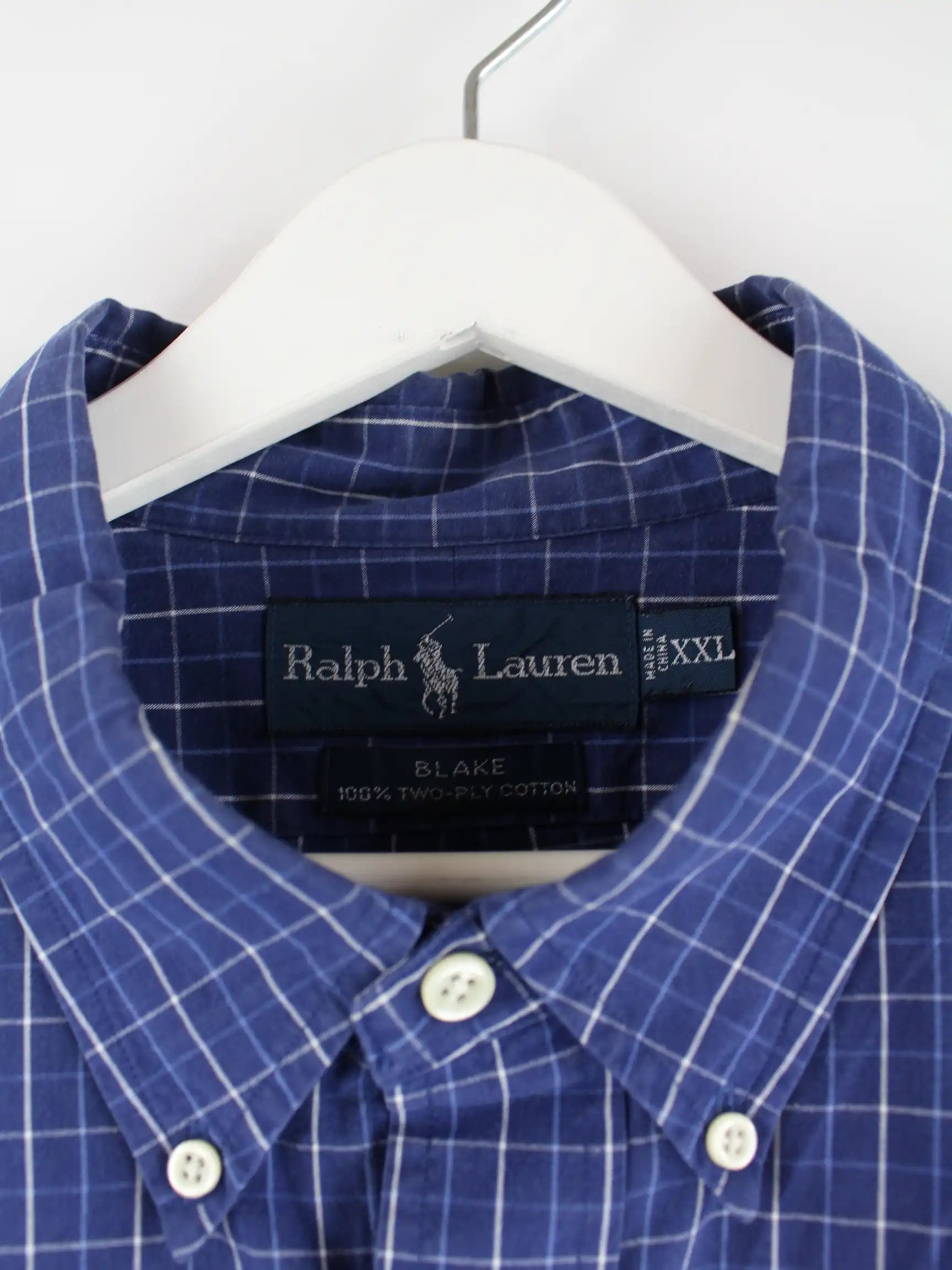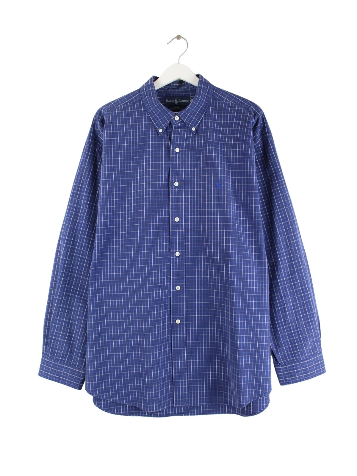 Blaues kariertes Vintage Hemd vom Label Ralph Lauren aus den 90ern in Größe XXL. Es ist aus Baumwolle und in sehr gutem Zustand zu haben.