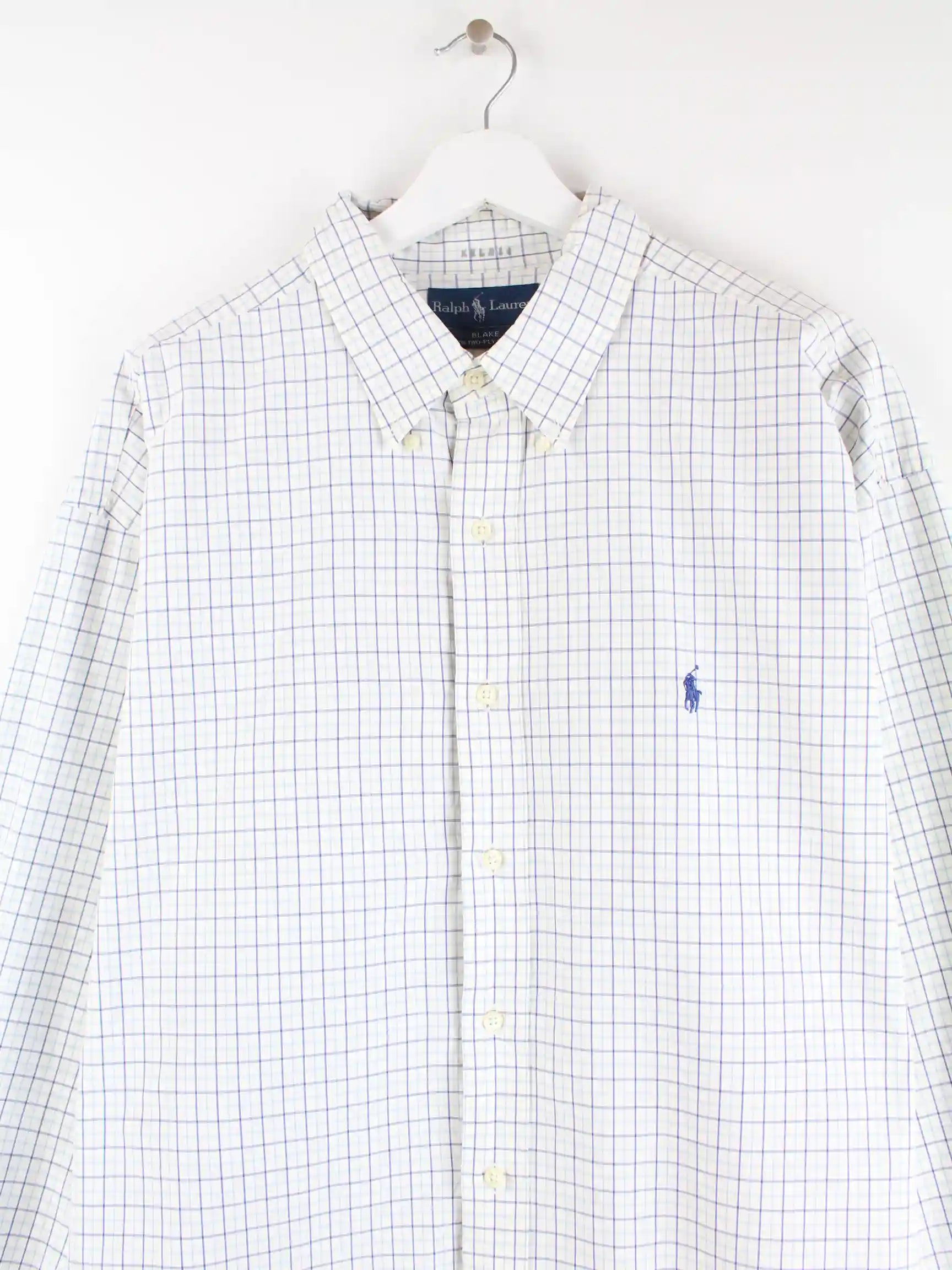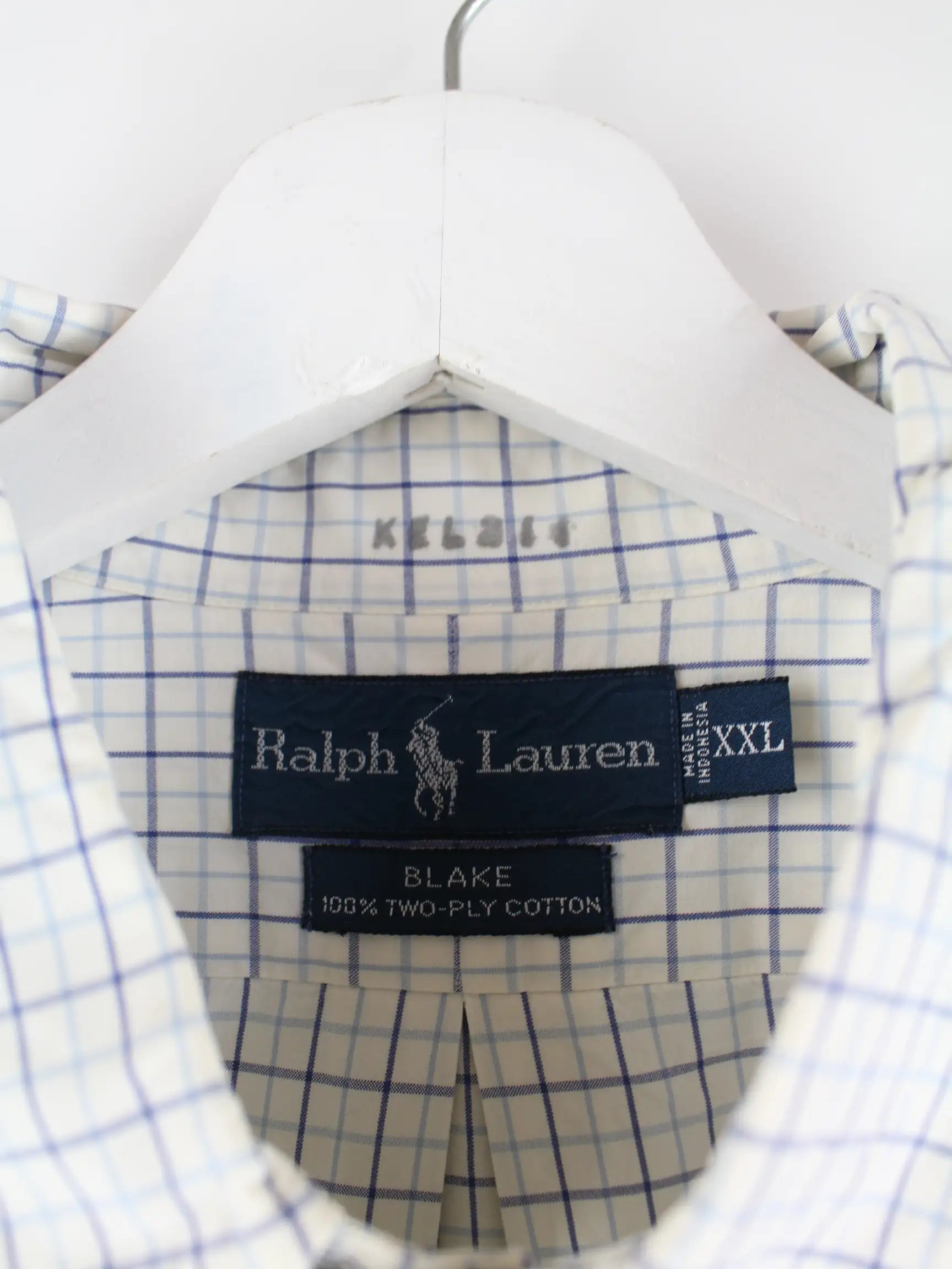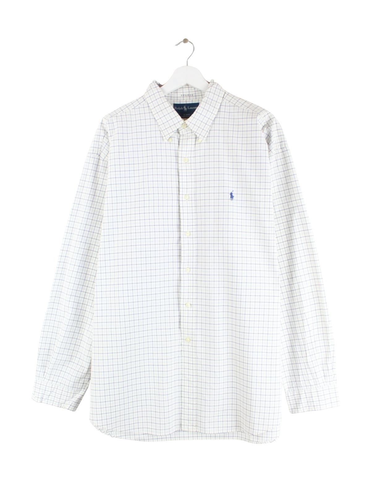 Gestreiftes Hemd des Labels Ralph Lauren in Größe XXL aus den 90'ern. Es ist aus Baumwolle produziert und in Weiß im Angebot.