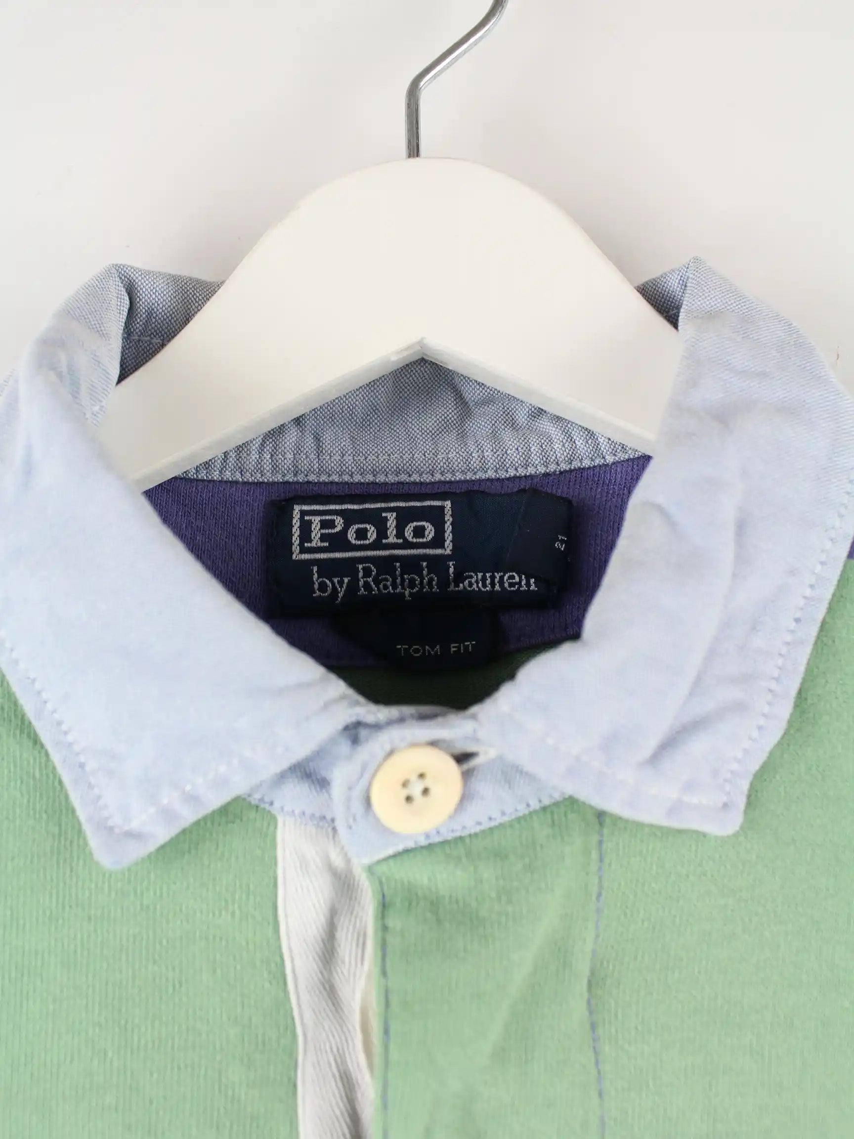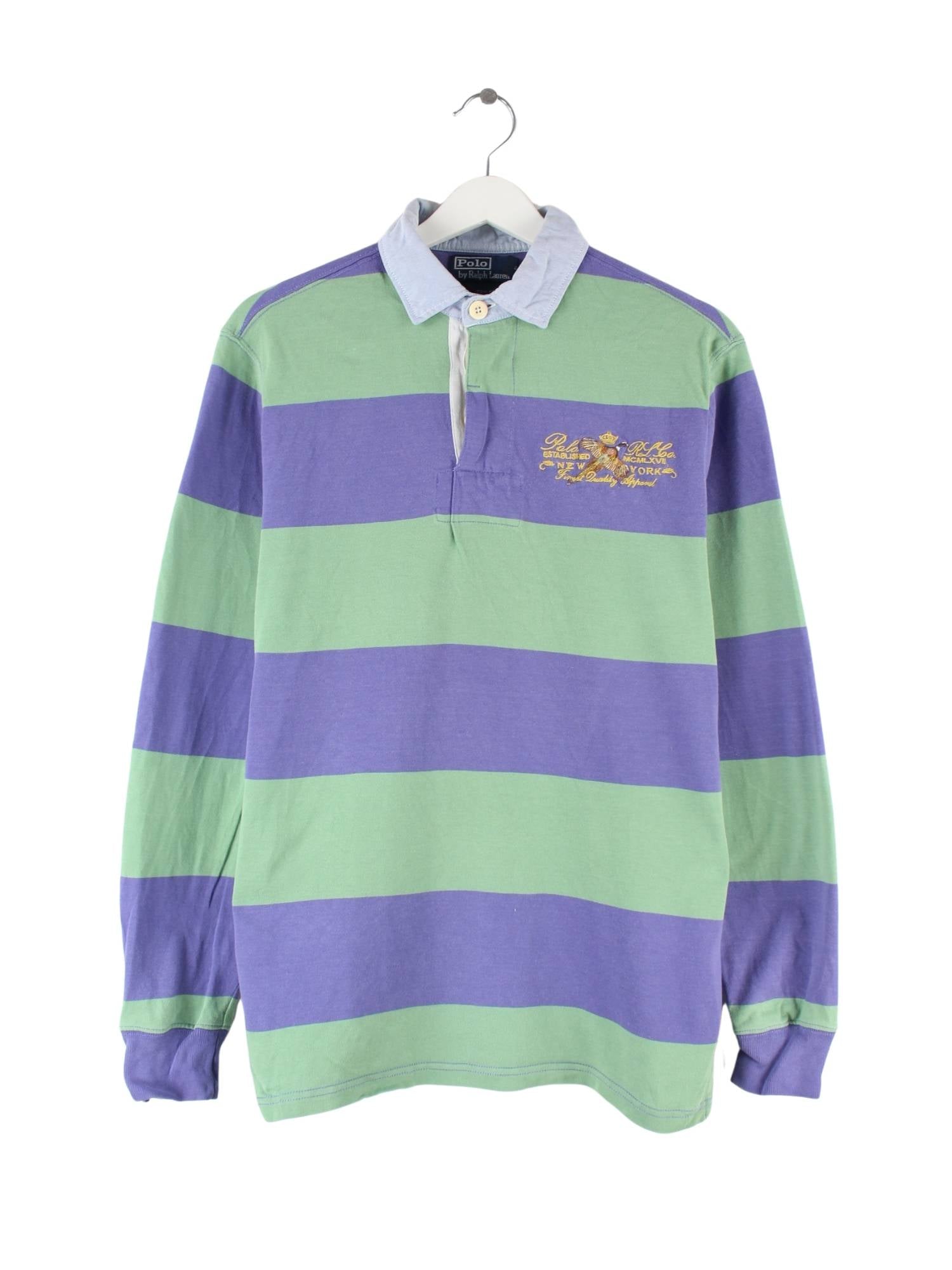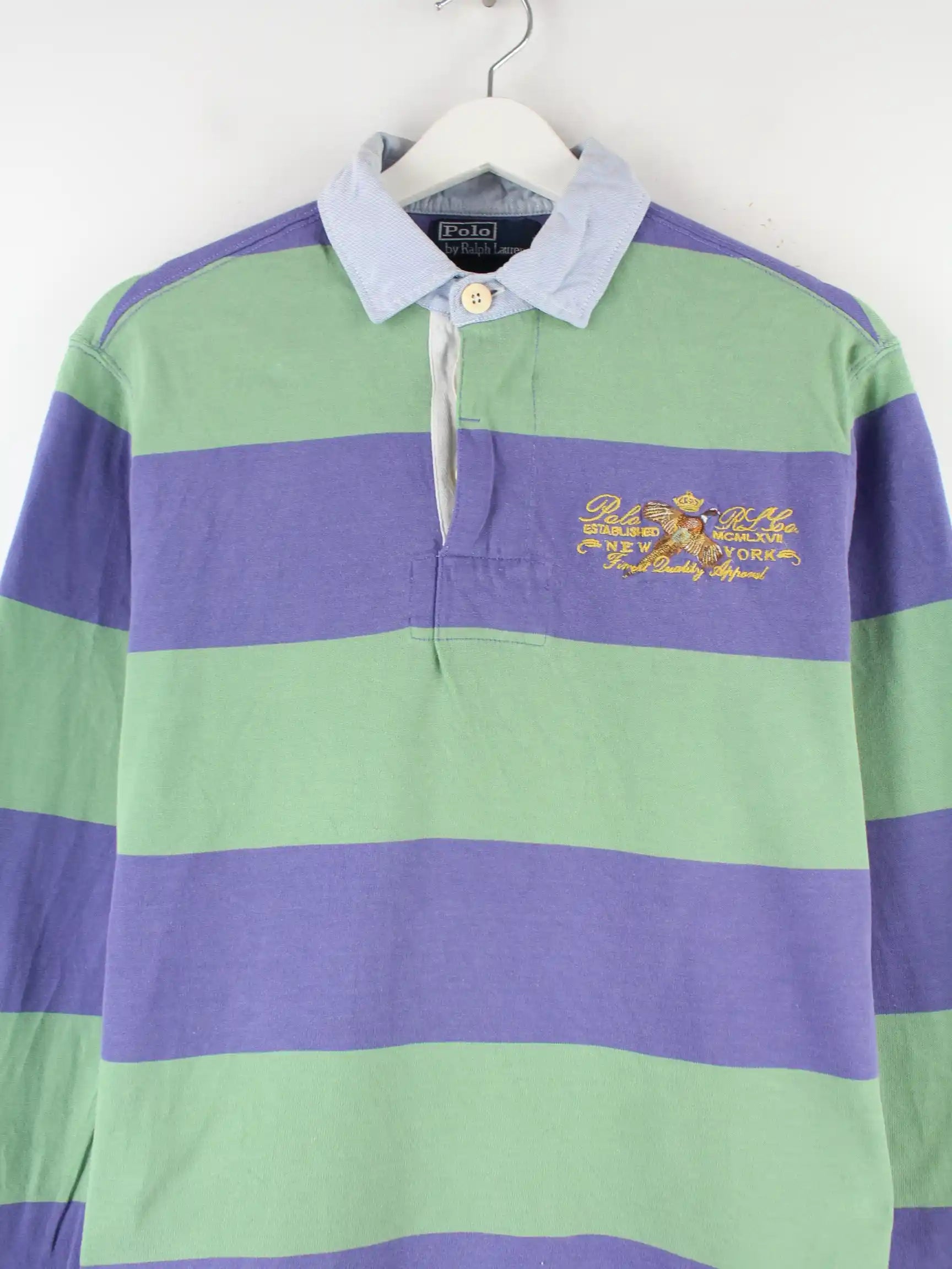 Ralph Lauren 90s Vintage Striped Rugby Polo Langarm Polo Grün/Blau S