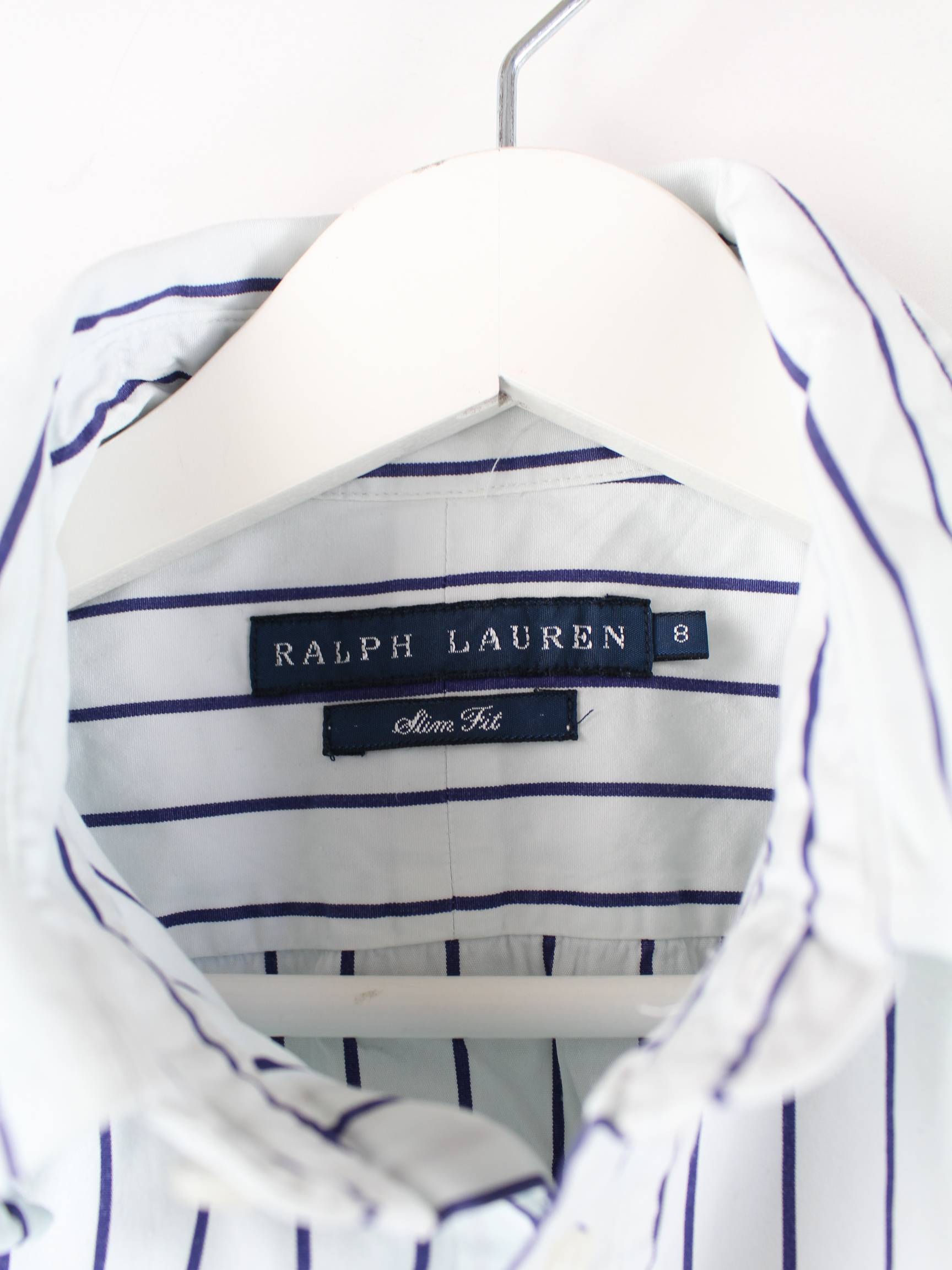 Ralph Lauren Damen 90s Vintage Slim Fit Striped Hemd Weiß S