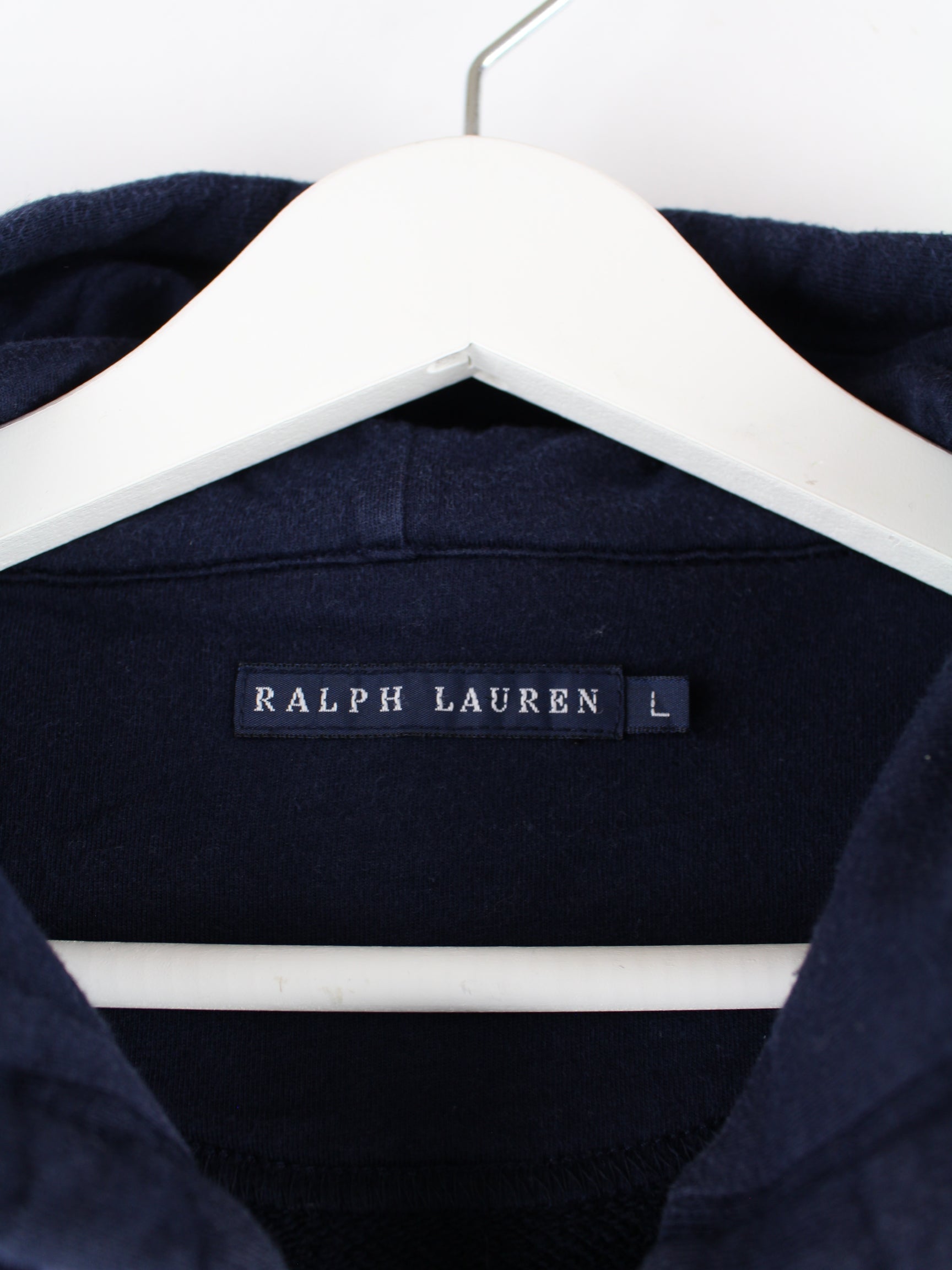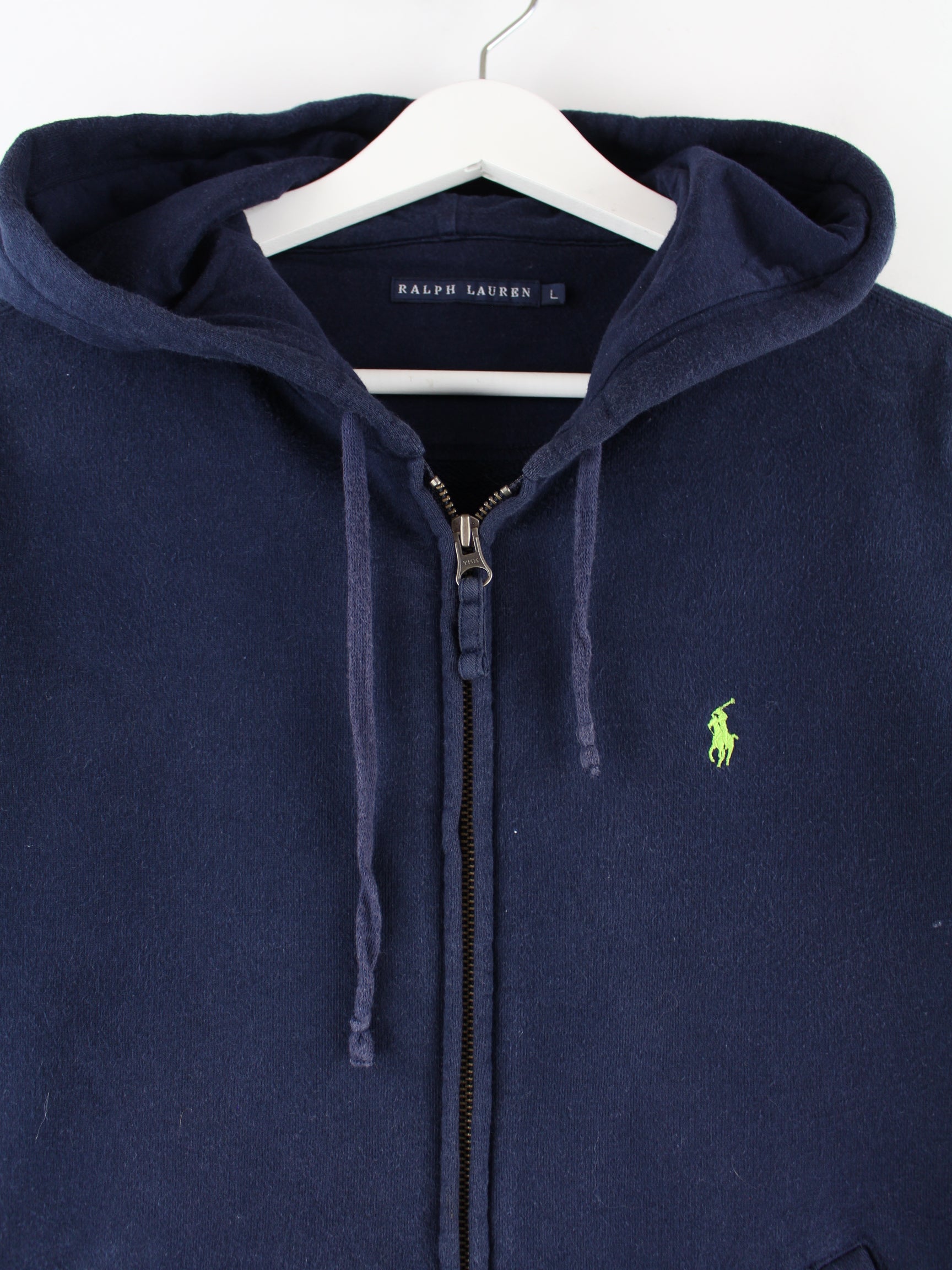 Hoodie from the label Ralph Lauren with zip in size M. It is made of a cotton blend and comes in blue.