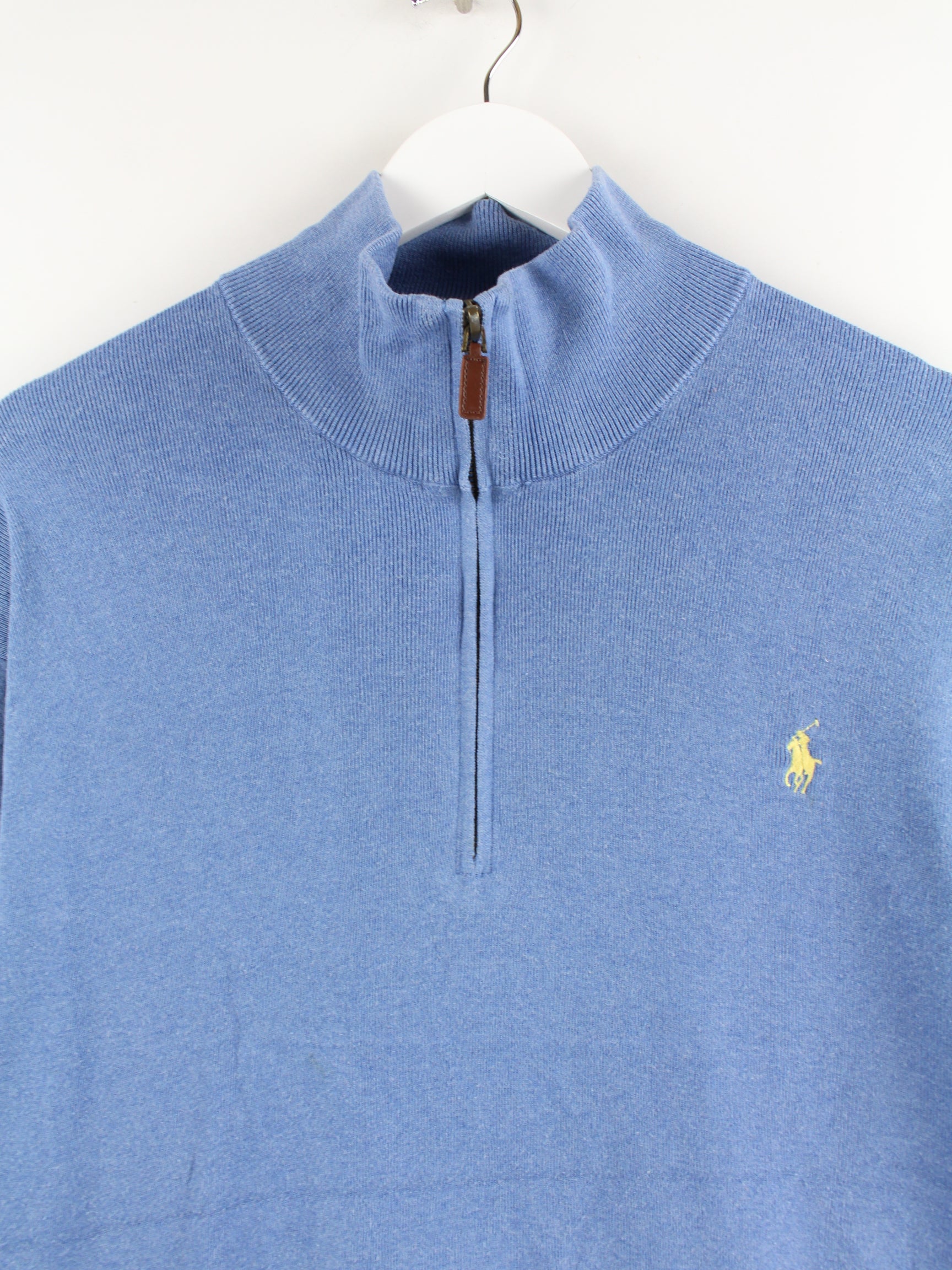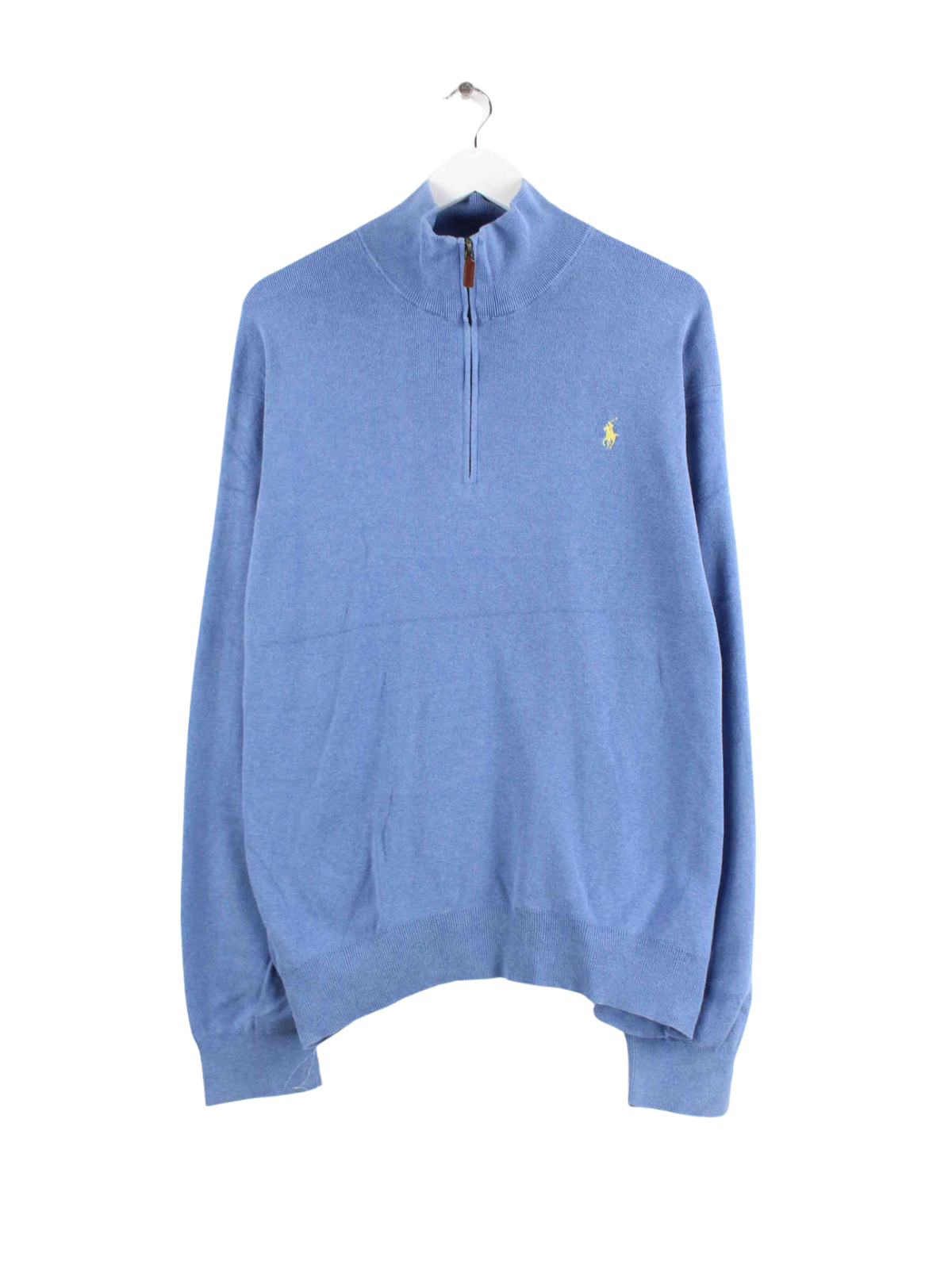Blue sweater with half zip from Ralph Lauren in size XL. It is made of cotton and is available from us in good condition.