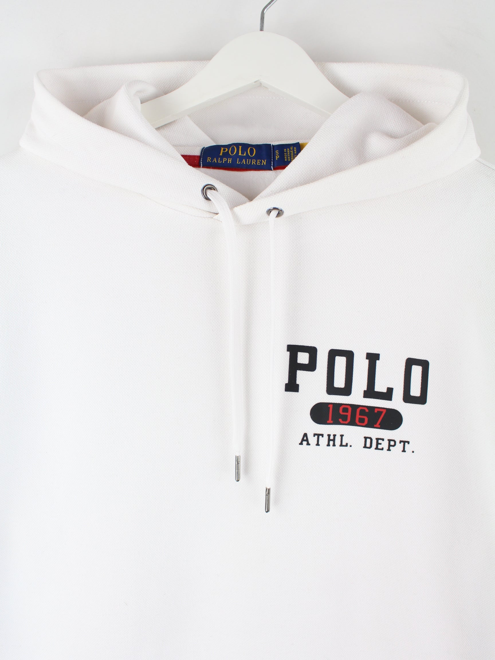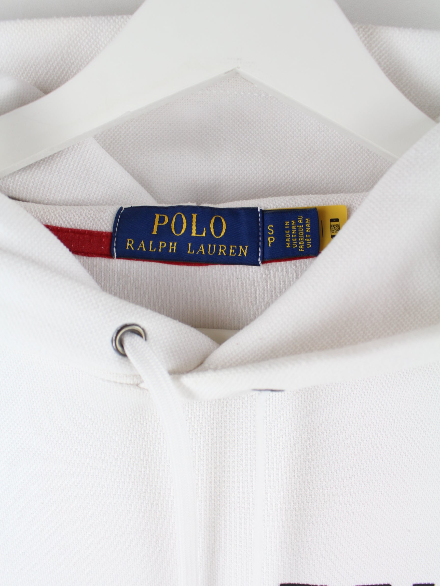 Hoodie by Ralph Lauren in size S. It is made from a cotton blend and is in stock in white.