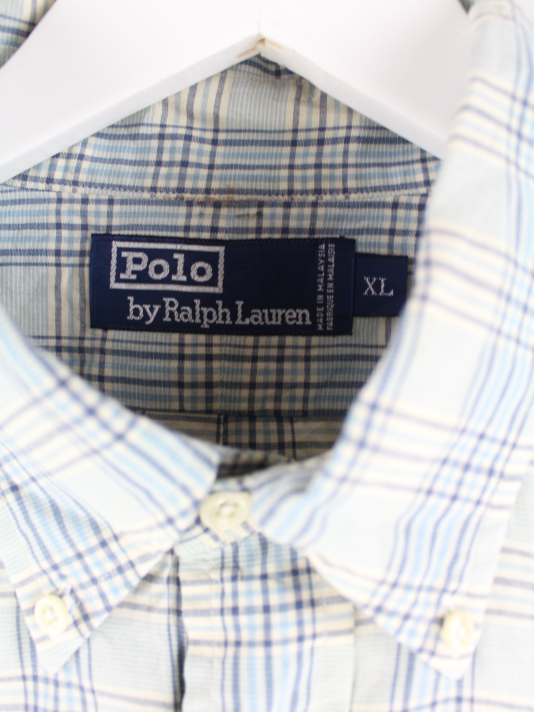 Ralph Lauren y2k Checked Short Sleeve Shirt Blue XL