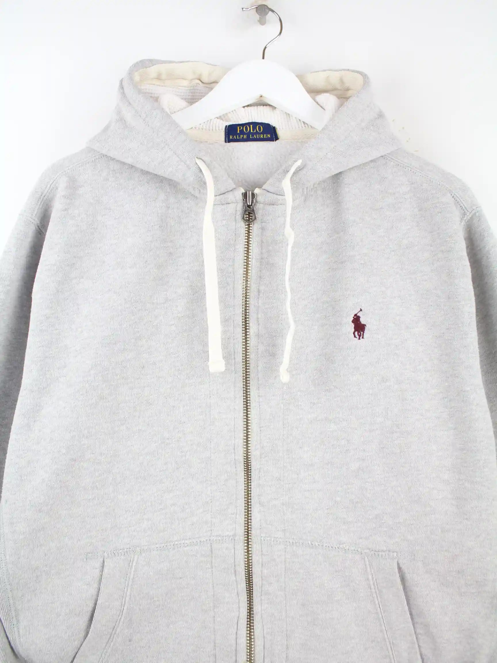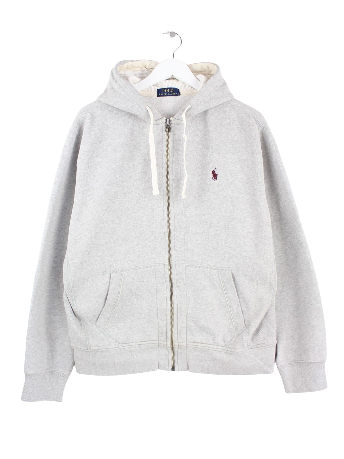 Grauer Hoodie mit durchgehendem Reißverschluß von Ralph Lauren in Größe M. Er ist aus einer Baumwollmischung angefertigt und in sehr gutem Zustand zu haben.