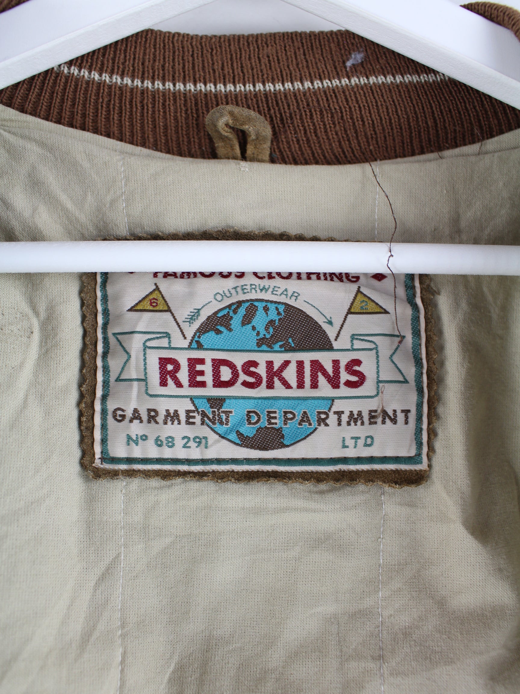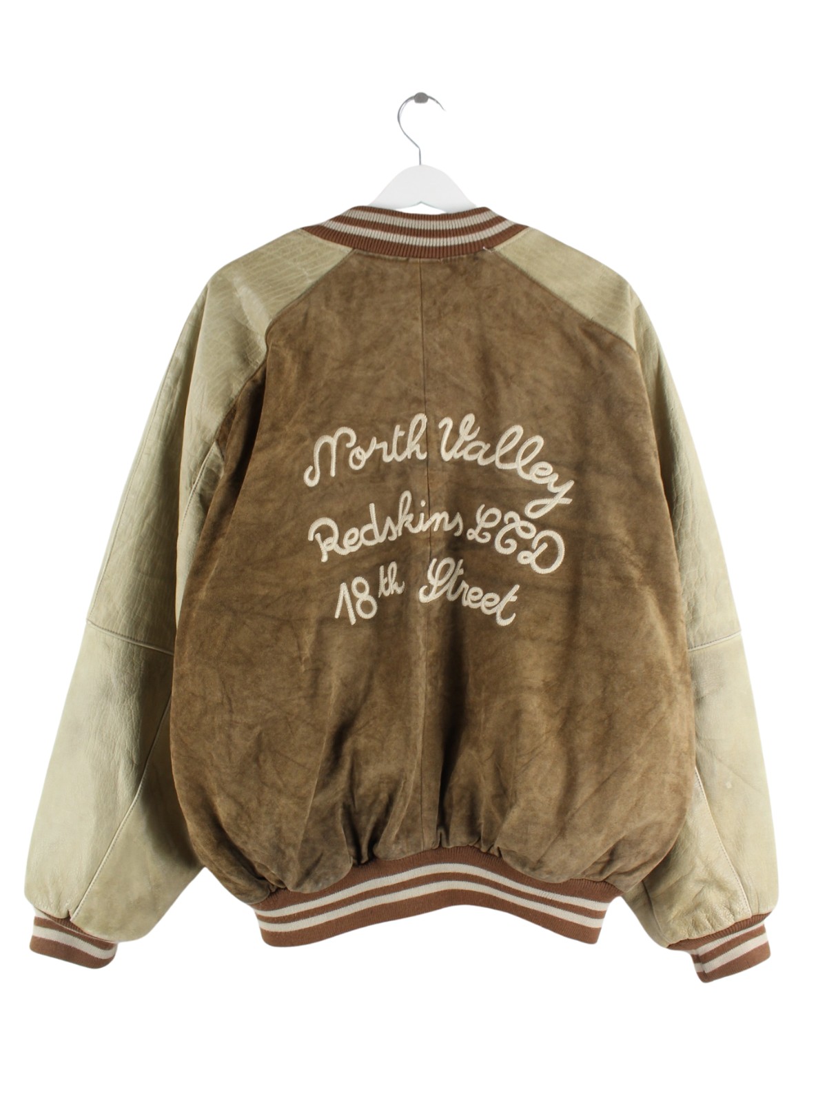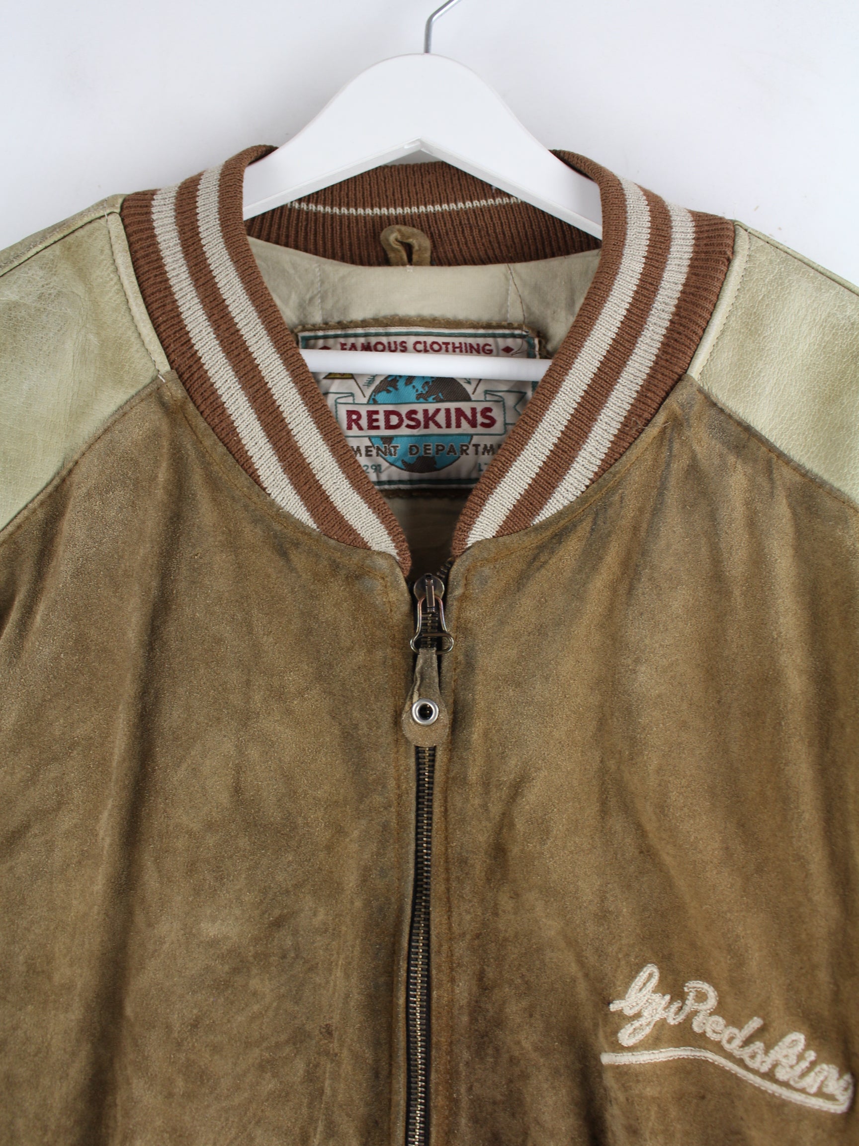 Jacket from the Redskins label with embroidery in size XL from the 90's. It is made of leather and is available in beige.