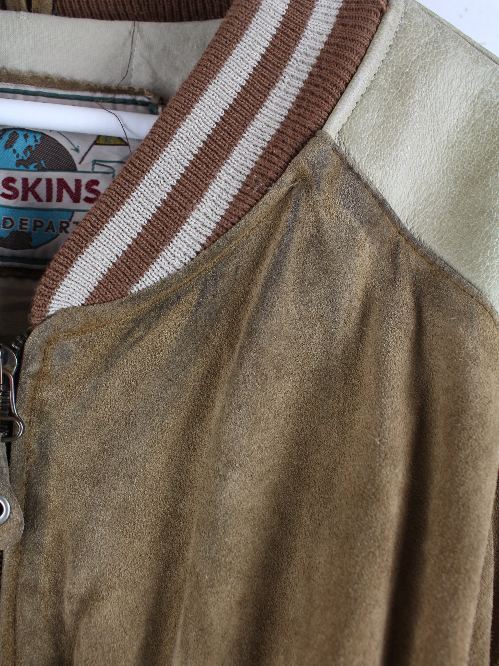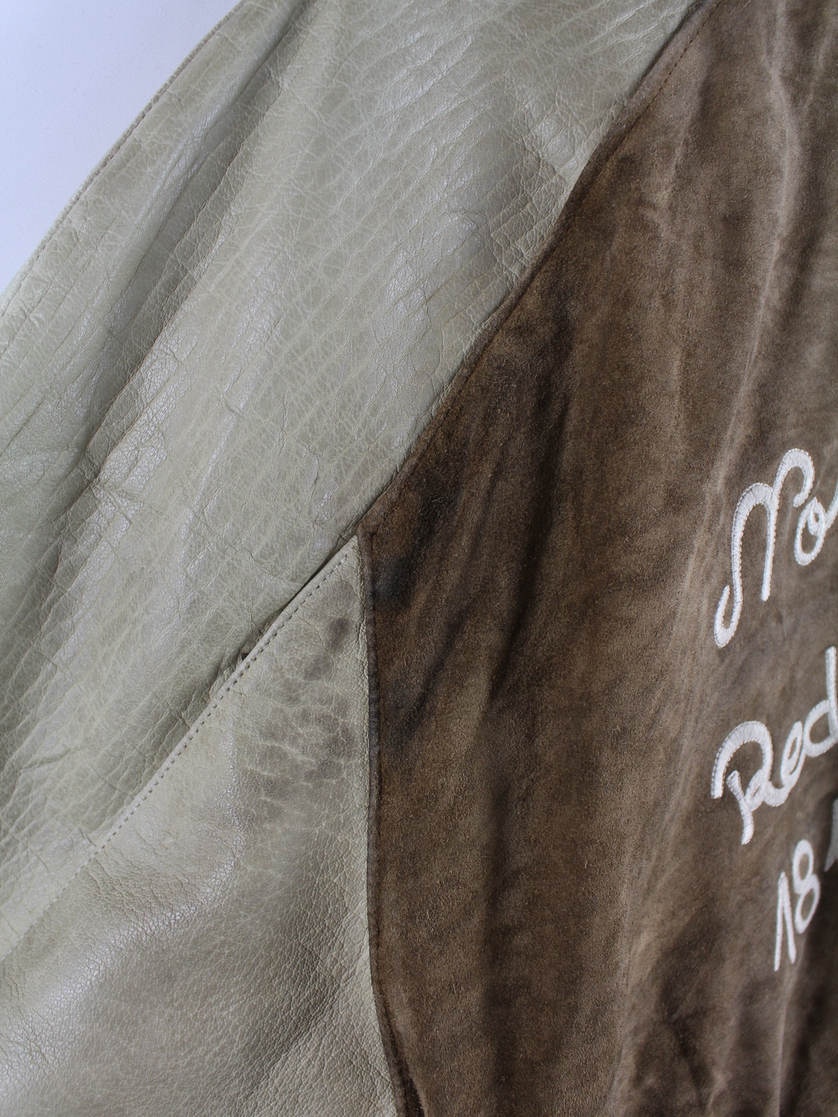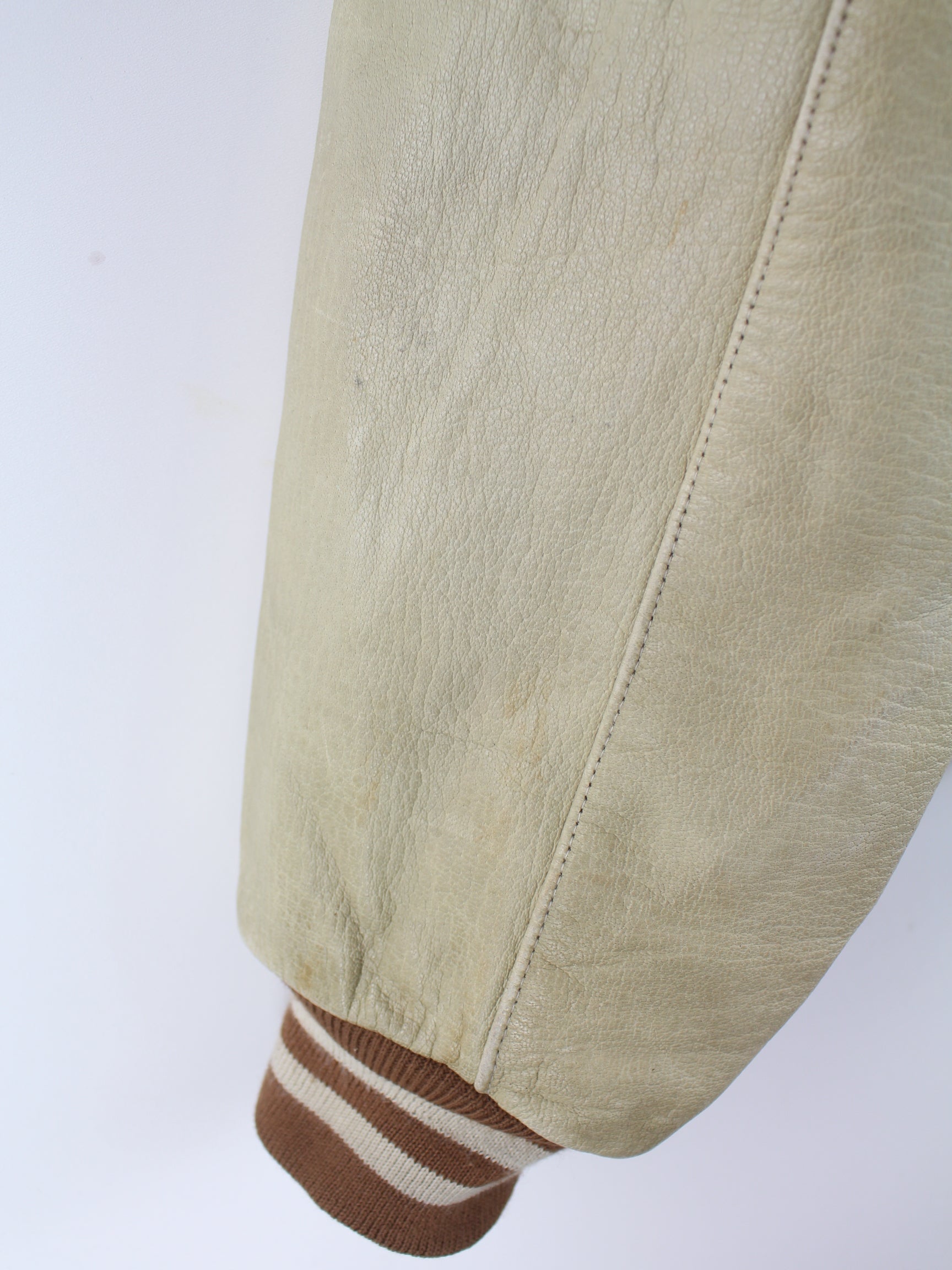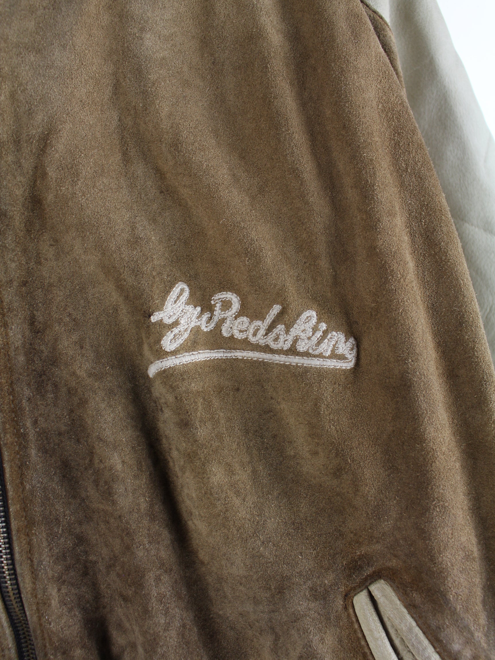 Redskins 90s Vintage Embroidered Leather College Jacket Beige XL