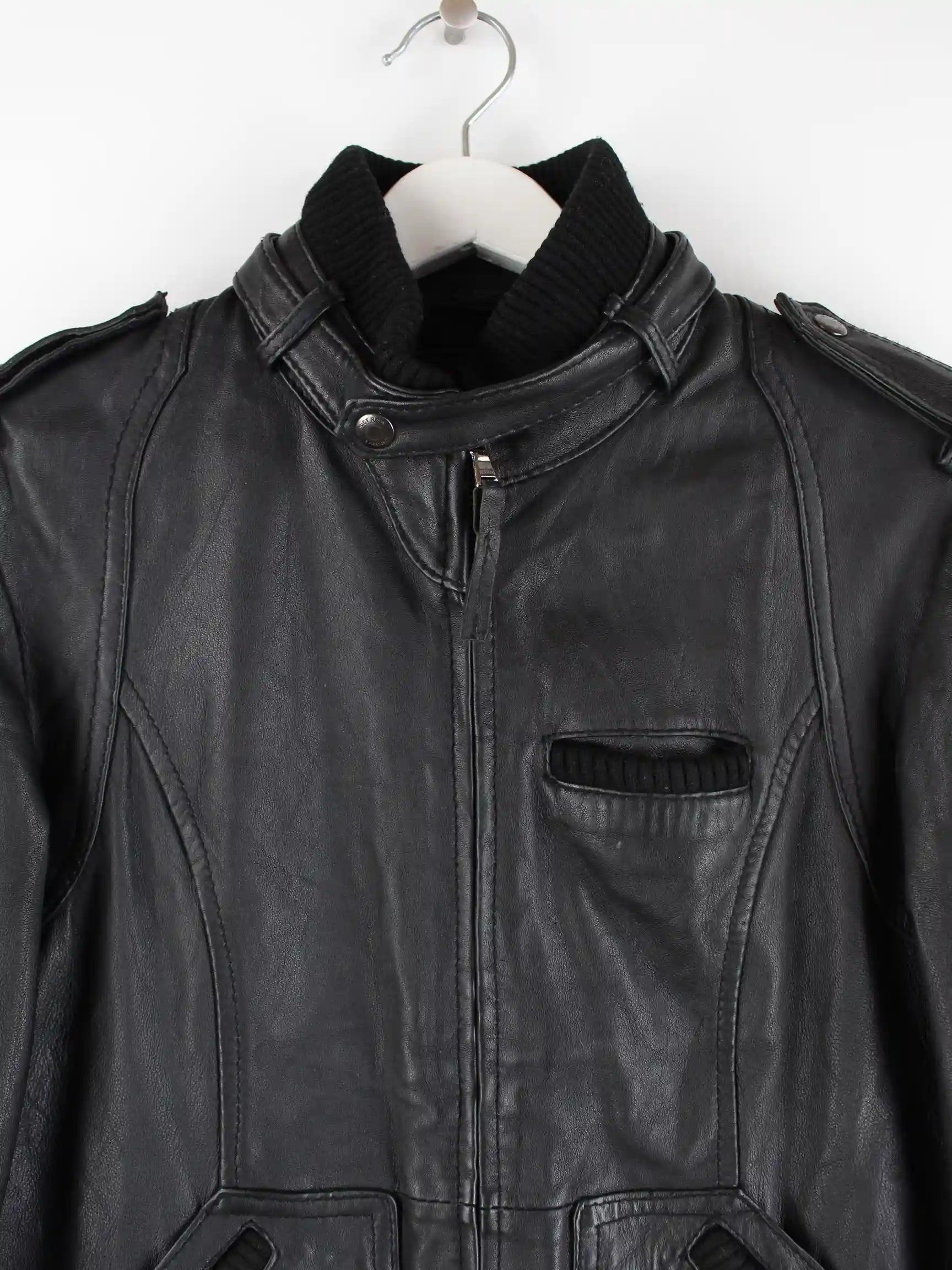 Jacke vom Label Redskins in Größe S. Sie ist aus Leder gefertigt und in Schwarz zu haben.
