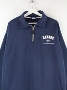 Sweater aus dem Hause Reebok mit kurzem Reißverschluß in Größe XXL. Er ist aus einer Baumwollmischung gemacht und in Blau bei uns zu bekommen.