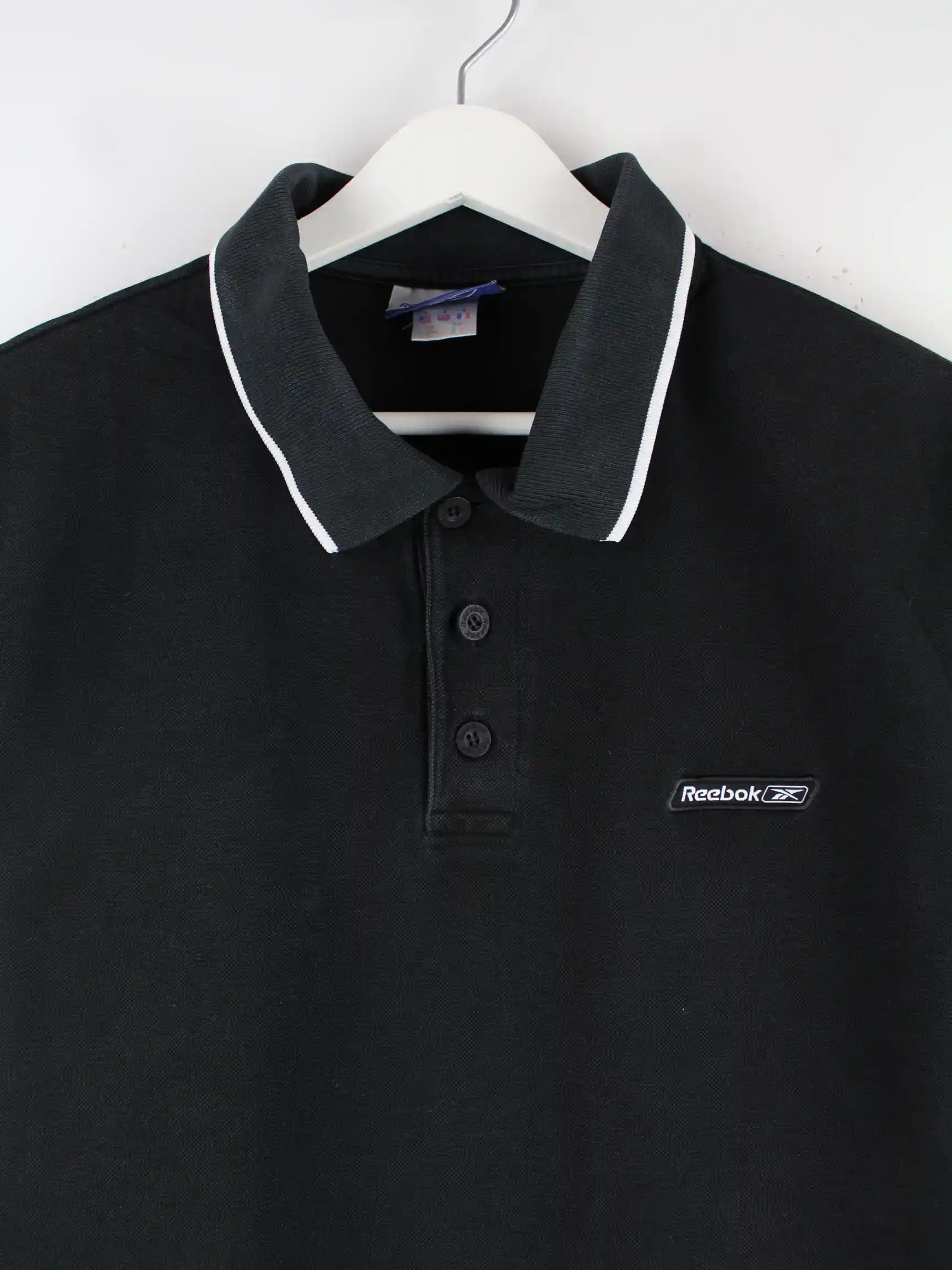 Poloshirt vom Brand Reebok in Größe M. Es ist aus Baumwolle hergestellt und in Schwarz lieferbar.