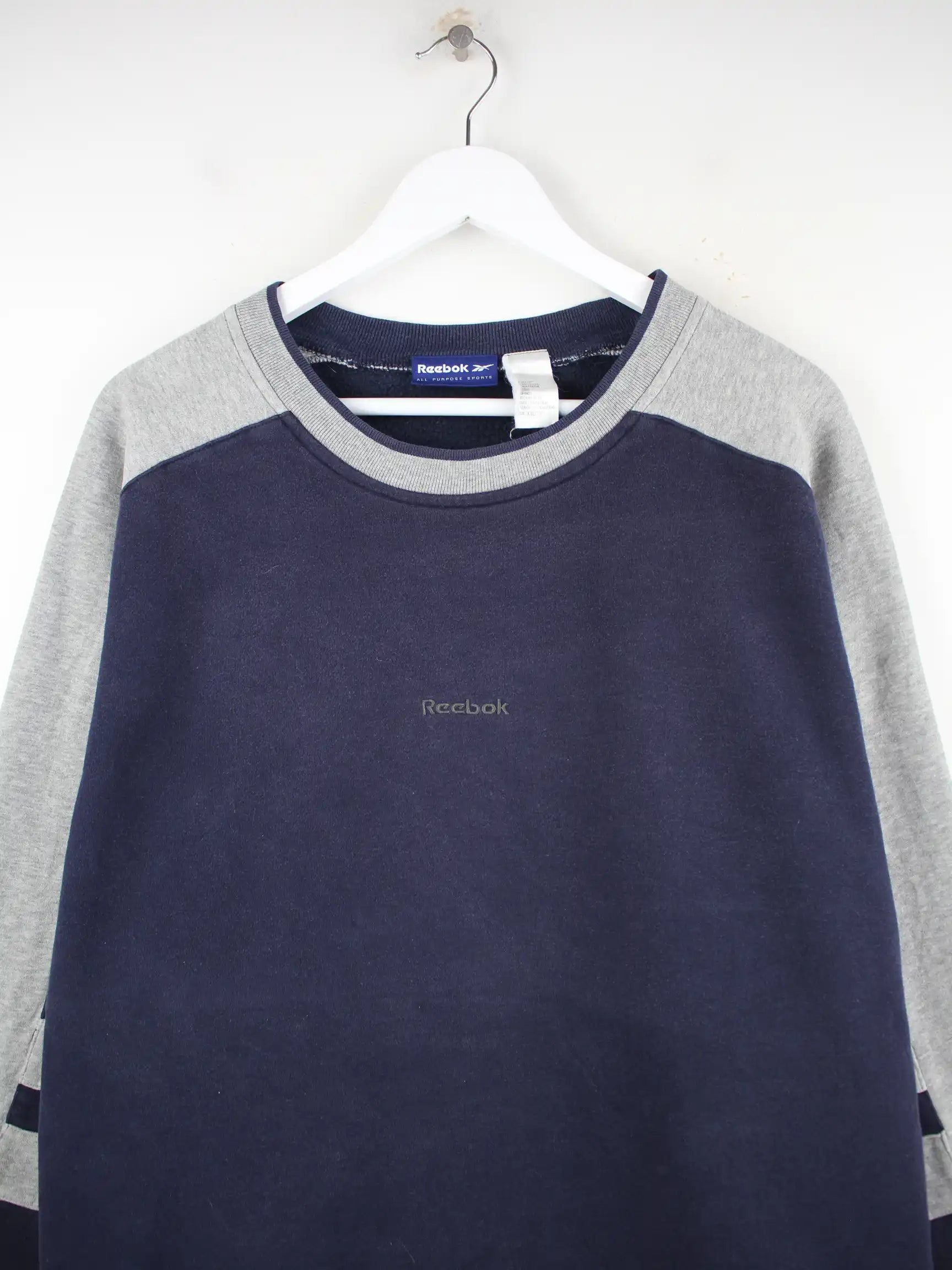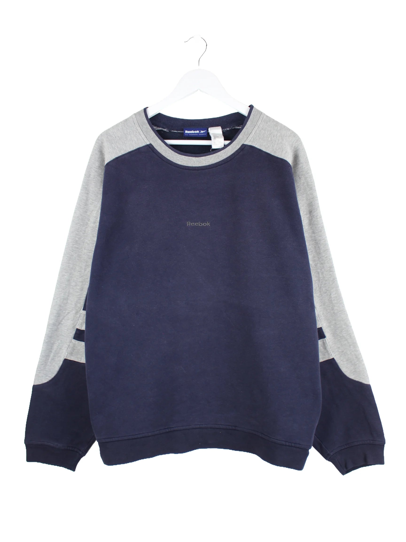Blauer Sweater aus dem Hause Reebok in Größe XXL. Er ist aus einer Baumwollmischung gemacht und in gutem Zustand in Stock.