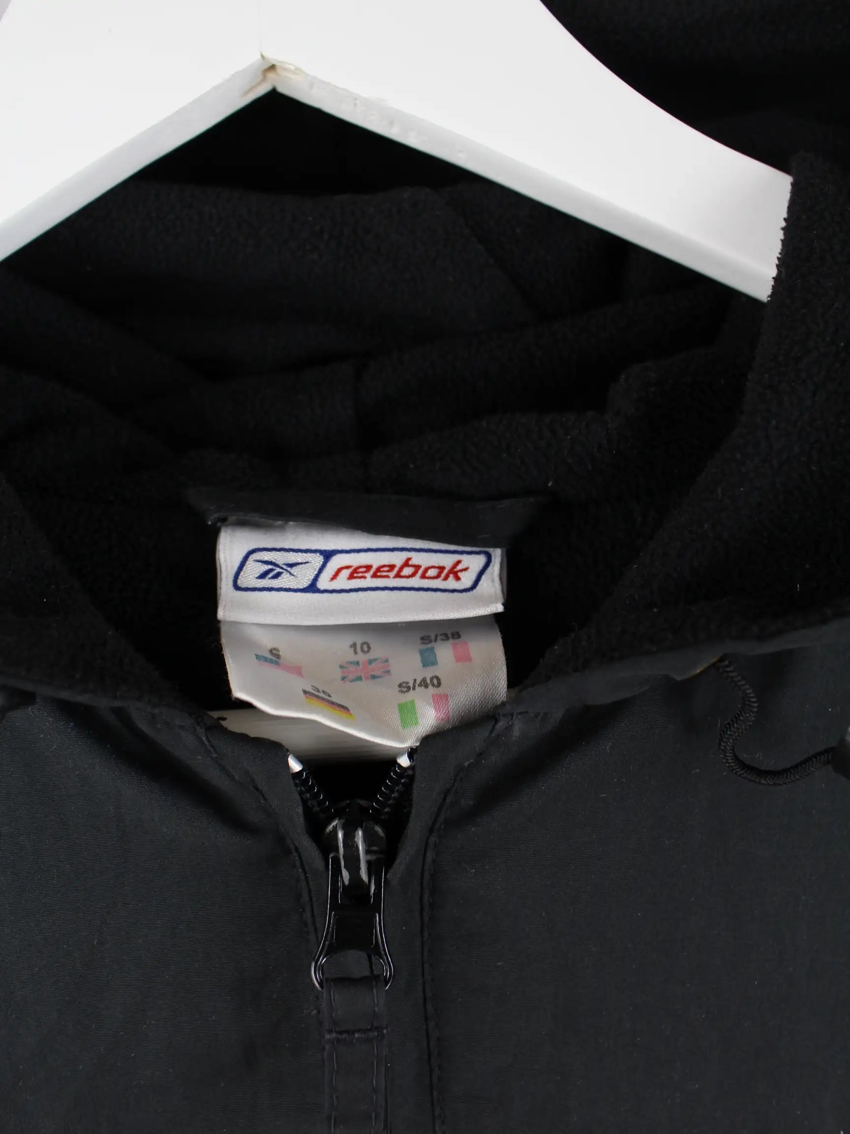 Leichte Jacke des Labels Reebok in Größe S. Sie ist aus kuscheligem Fleece produziert und in Schwarz in Stock.