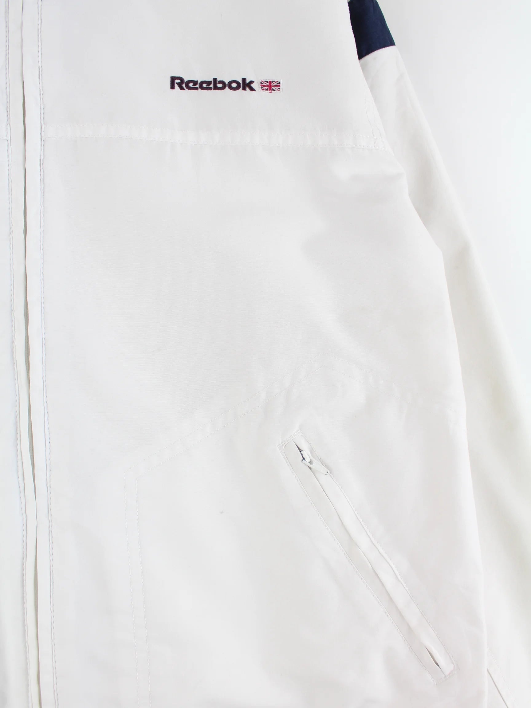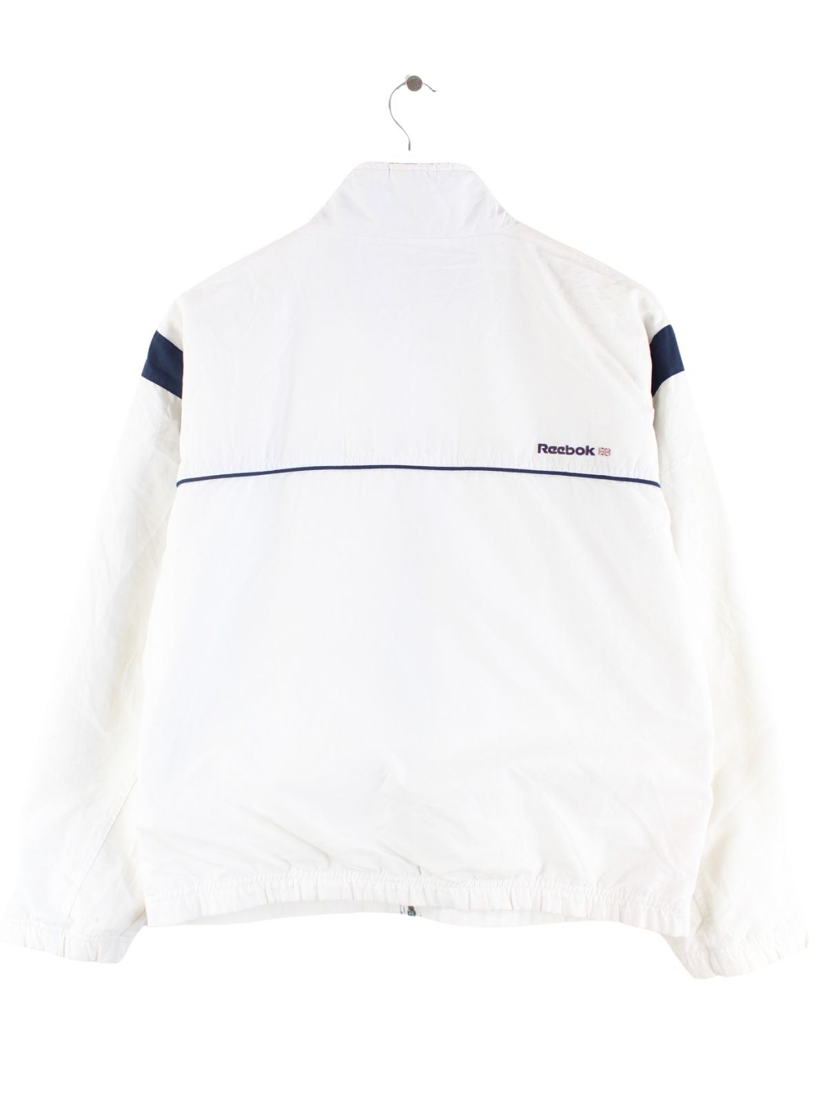 Trainingsjacke aus dem Hause Reebok in Größe M. Sie ist aus Synthetik produziert und in Weiß im Bestand.