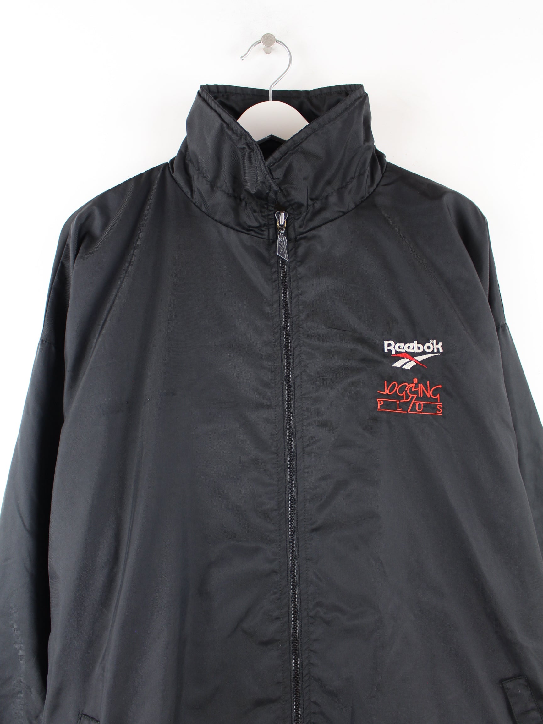 Lightweight jacket from the brand Reebok with embroidery in size L from the 90's. It is made of synthetic material and is available in black.