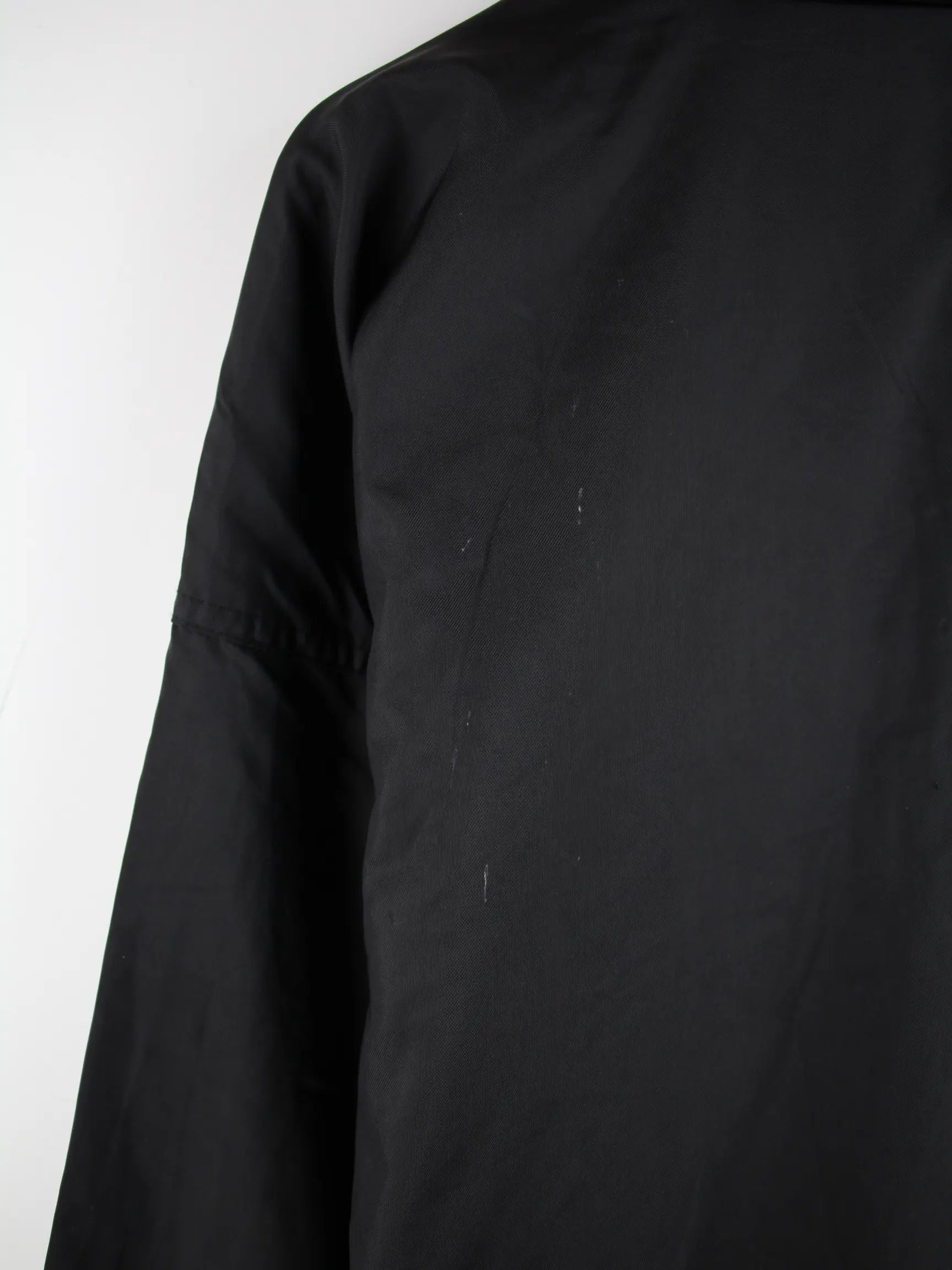 Leichte Jacke vom Label Reebok in Größe L aus den 90'ern. Sie ist aus Synthetik angefertigt und in Schwarz bei uns vorrätig.