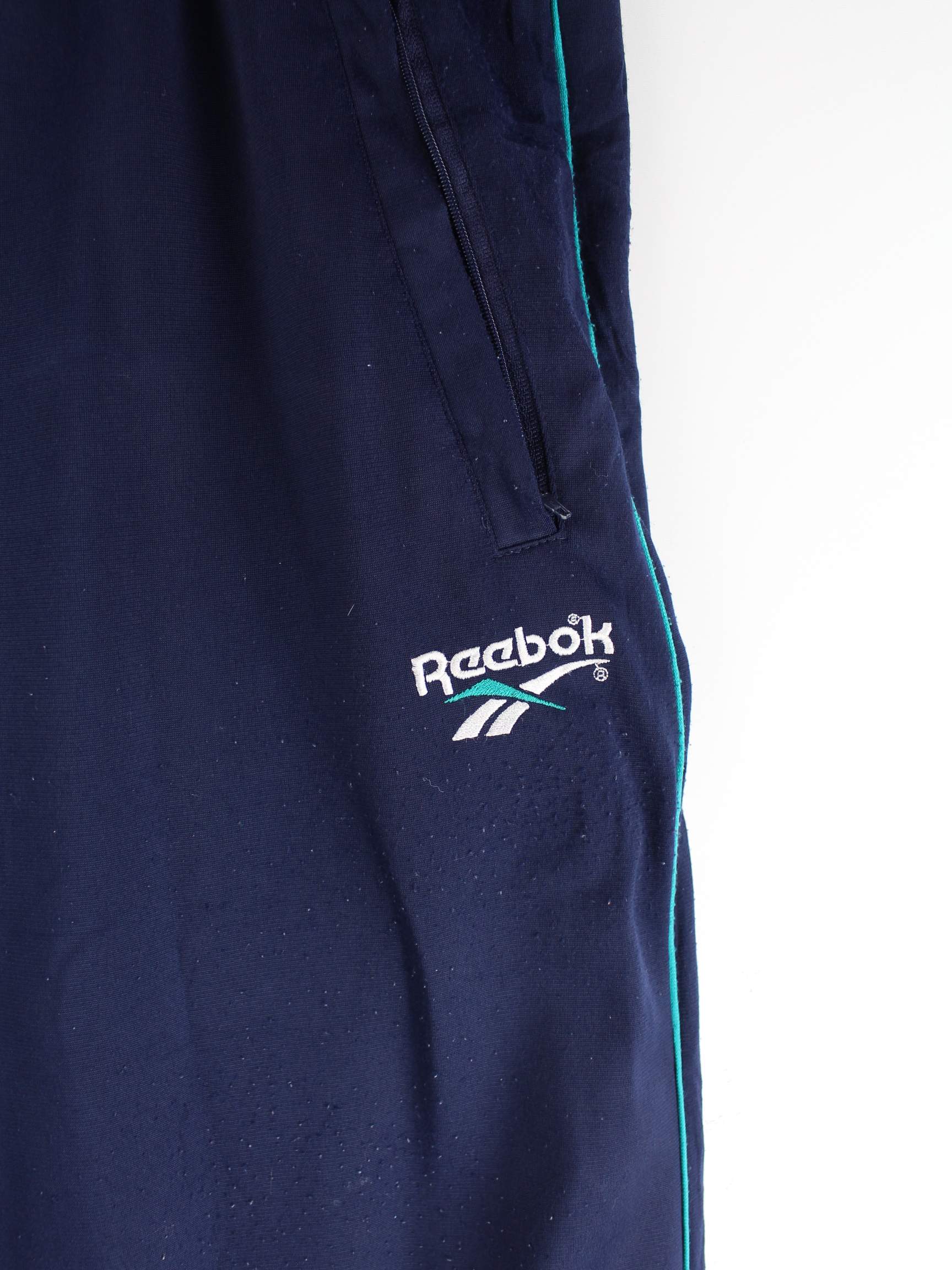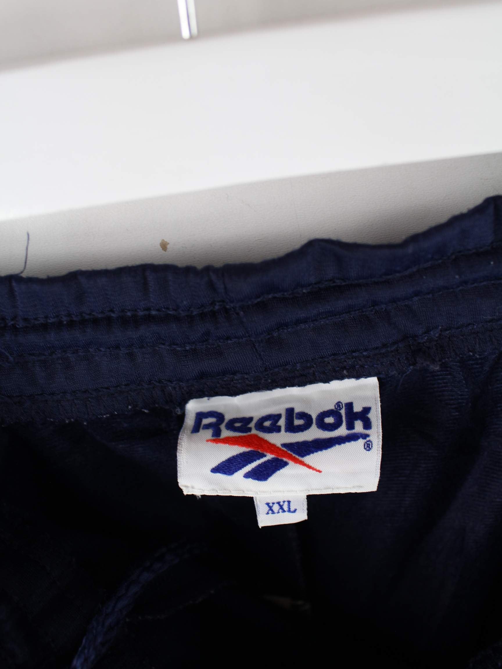 Blaue Track Pants des Labels Reebok aus den 90'ern in Größe XXL. Sie sind aus Synthetik produziert und in gutem Zustand lieferbar.