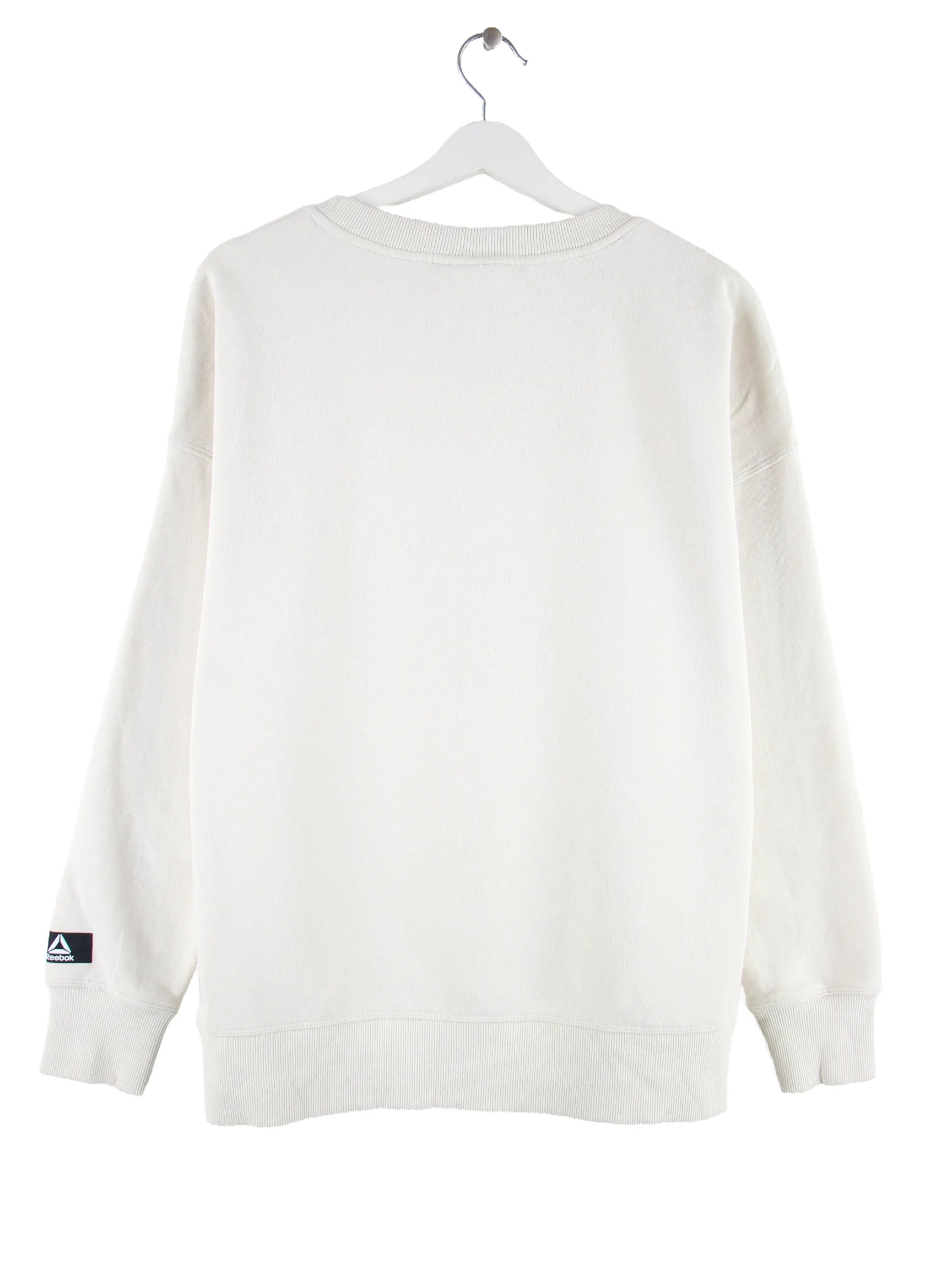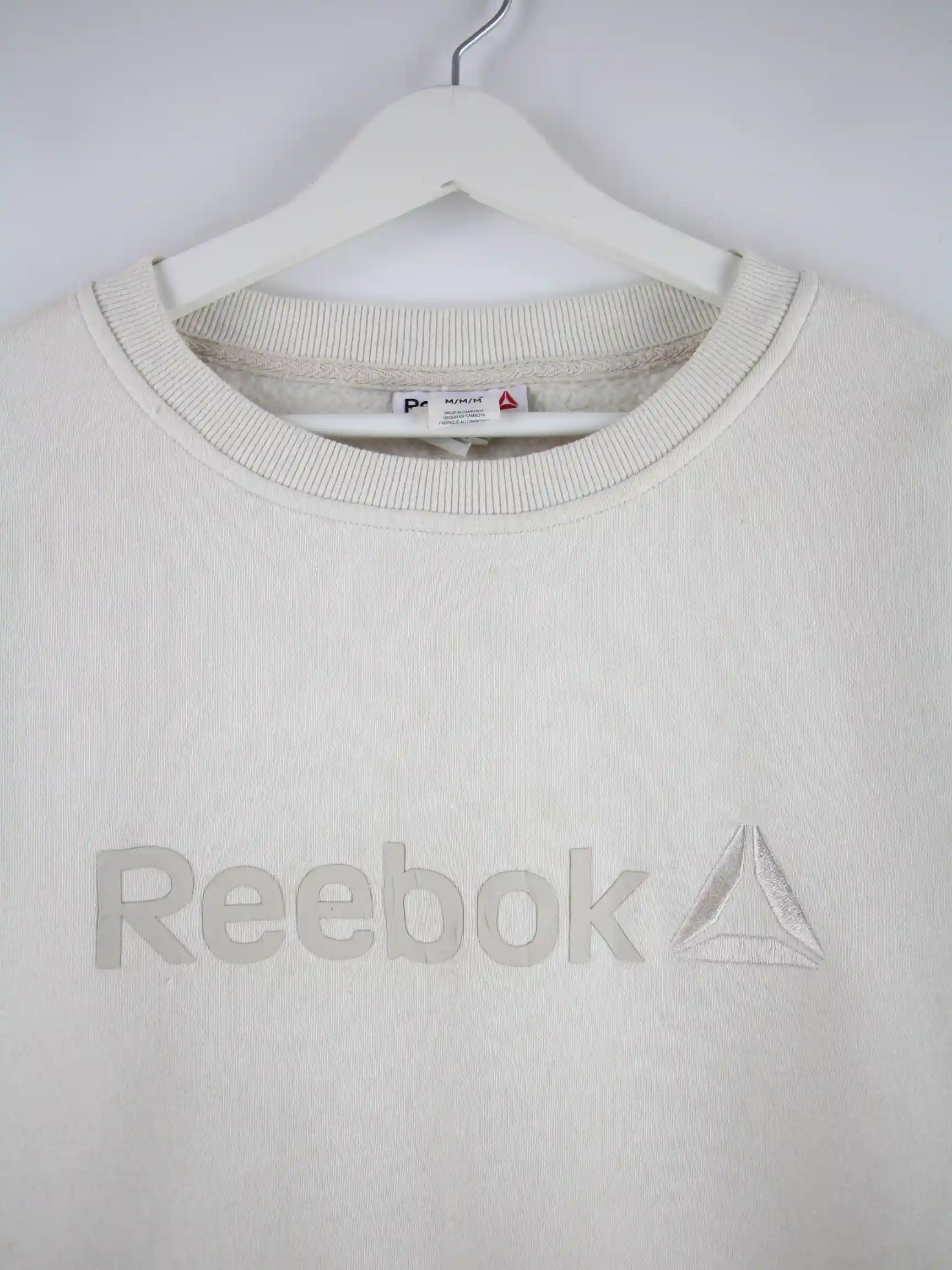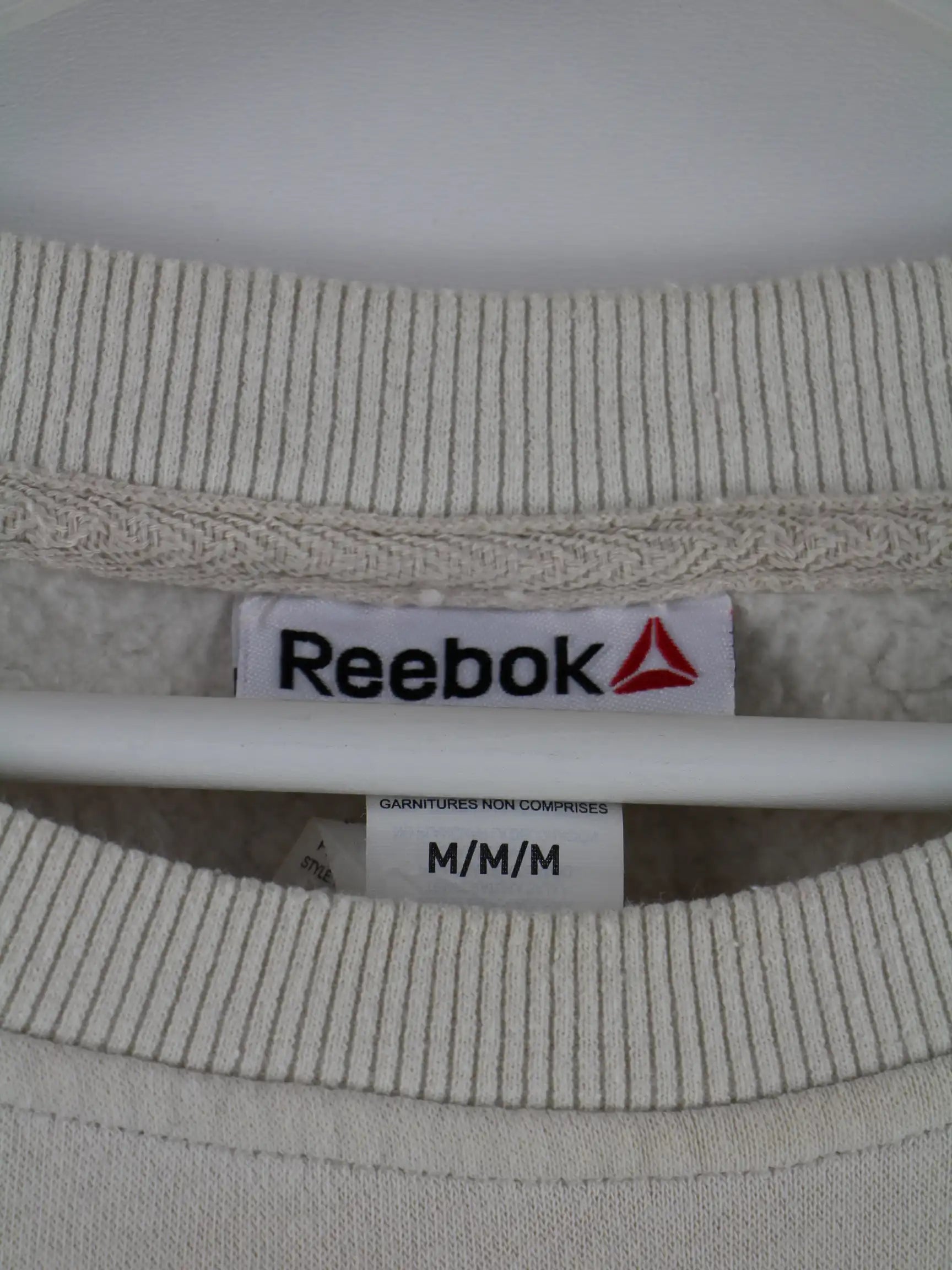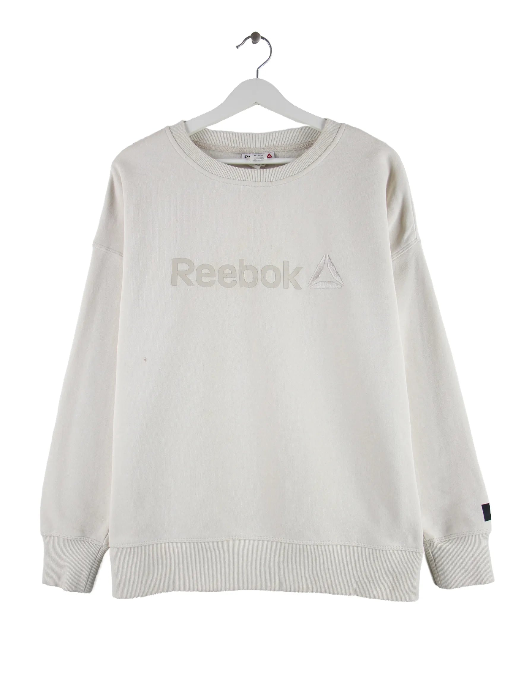 Beigefarbener Sweater vom Brand Reebok in Größe M. Er ist aus einer Baumwollmischung gemacht. Den Zustand würden wir als 'In Ordnung' bezeichnen (vergl. Bilder).Mit schickem Logo Print.