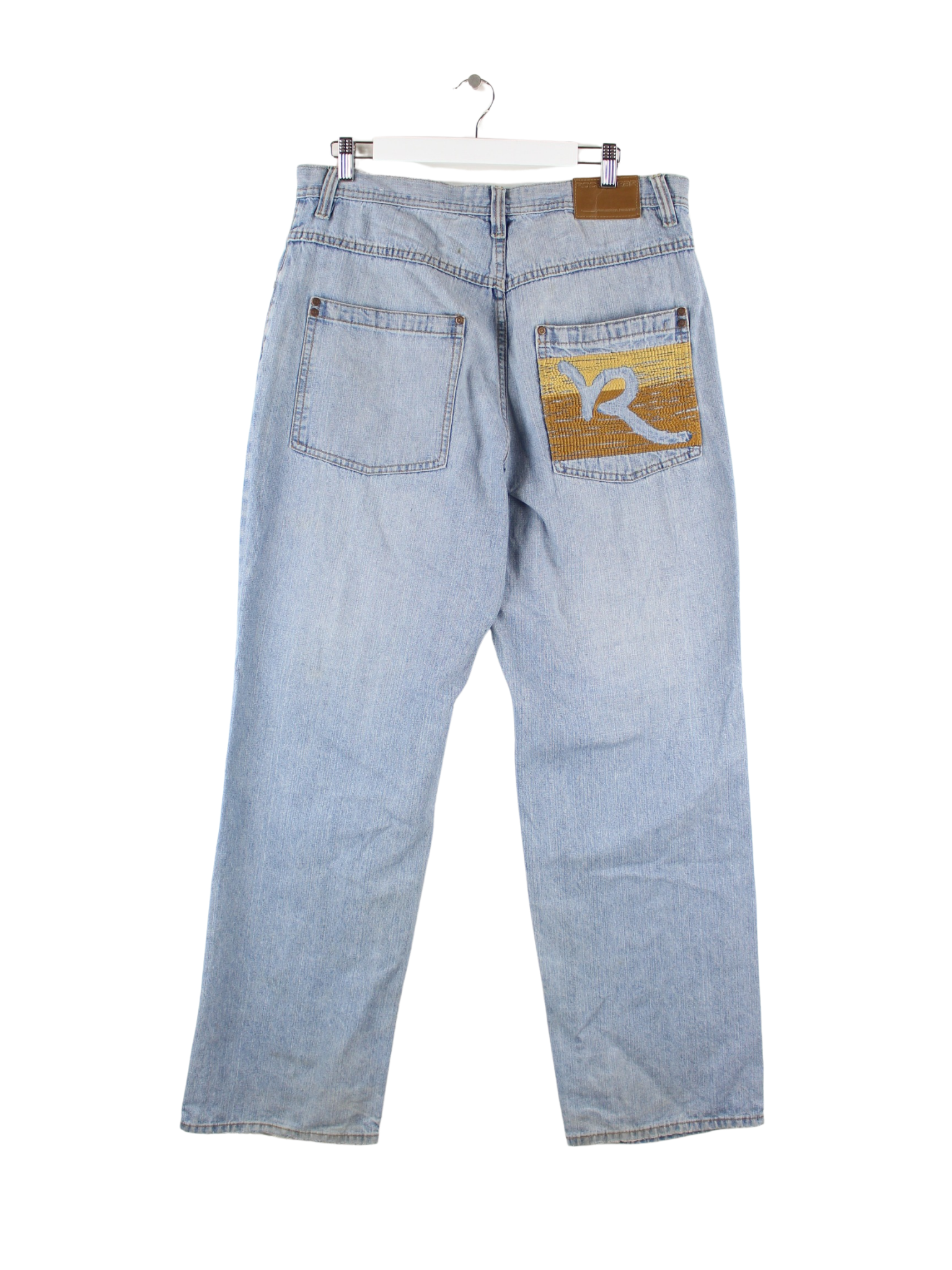 Blue jeans from the brand Roca Wear in W34 x L34 from the early 2000s. We would describe the condition as 'fine' (see pictures).