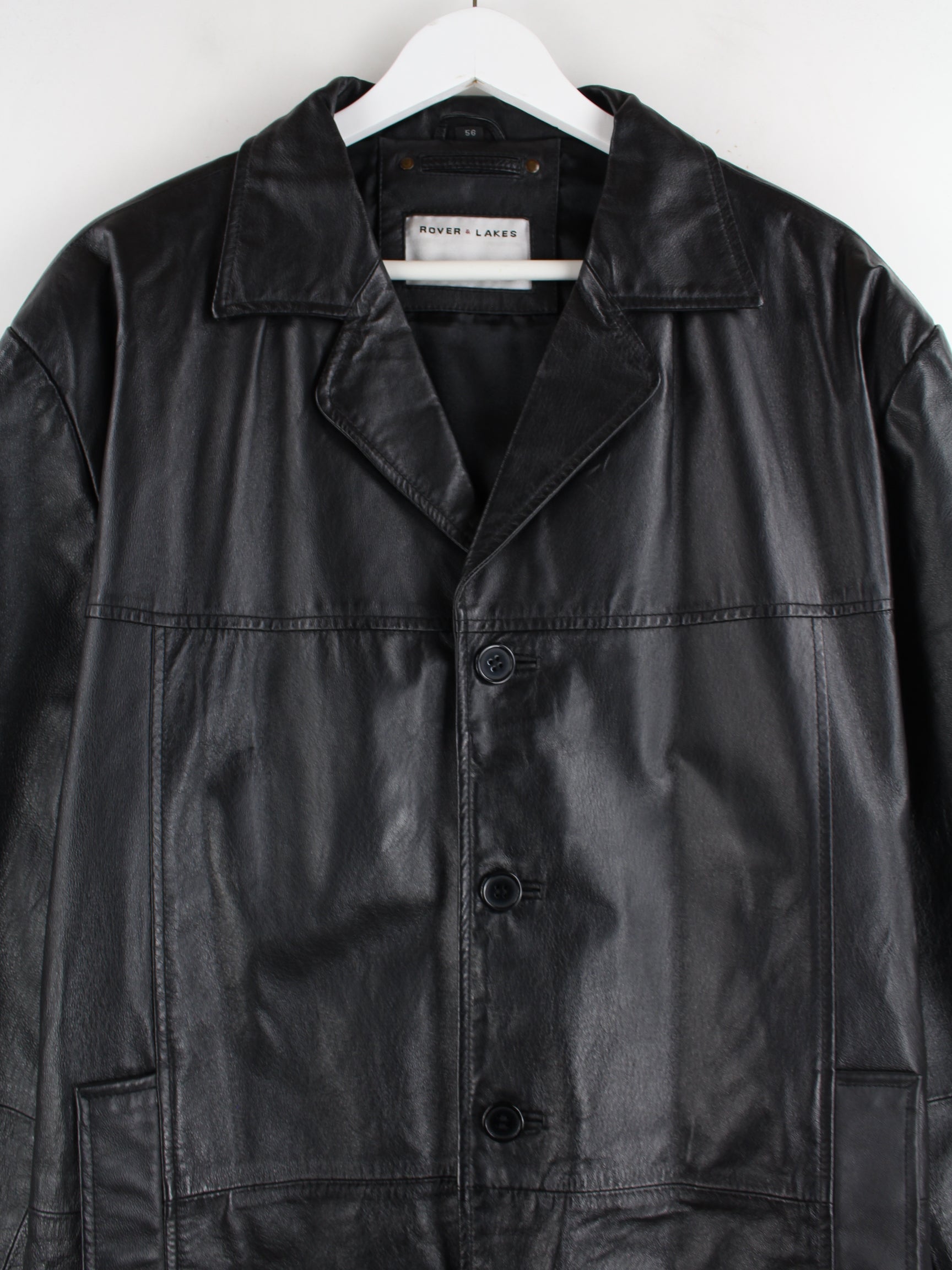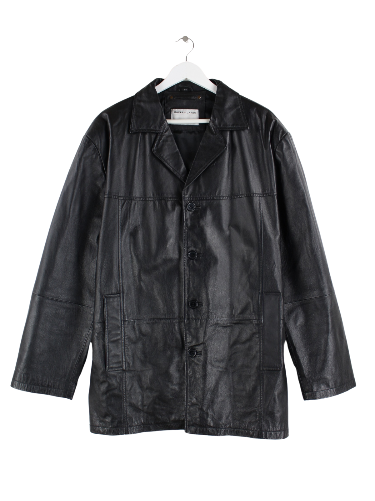Black jacket from the Rover & Lakes label from the 90's in size XL. It is made of leather and is in good condition.