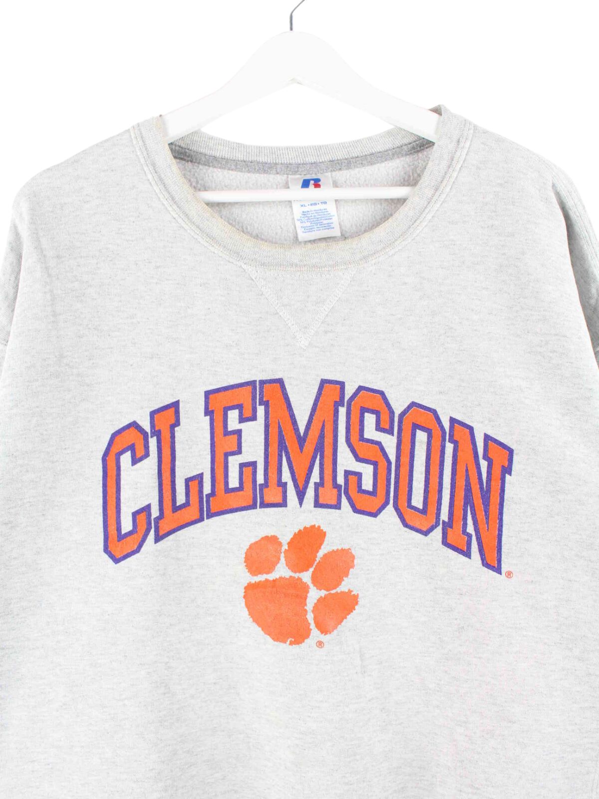 Sweater from Russell Athletic in size XL. It is made from a cotton blend and is available in gray. With rare Clemson print.