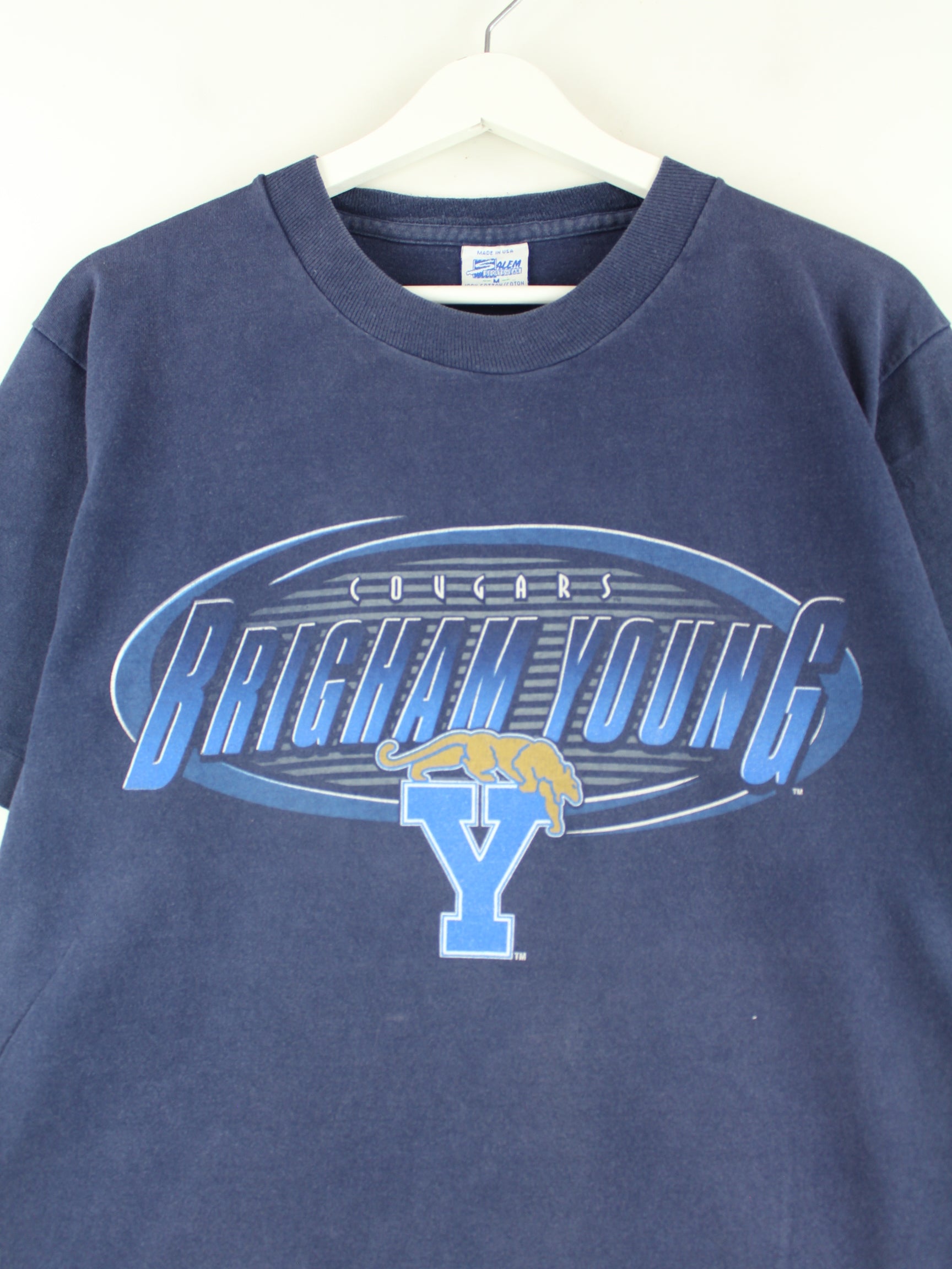 Salem Sportswear 90s Vintage Cougars Print Single Stitch T-Shirt Blue M