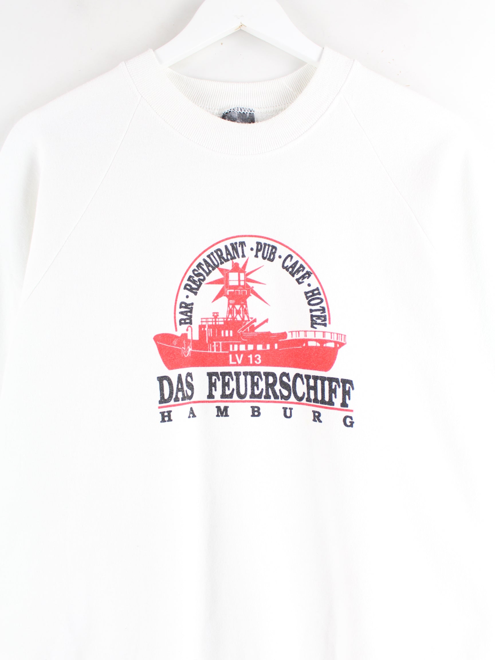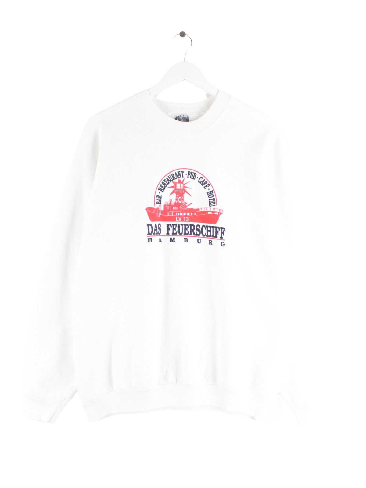 Screen Stars 90s Vintage Feuerschiff Hamburg Print Sweater Weiß L