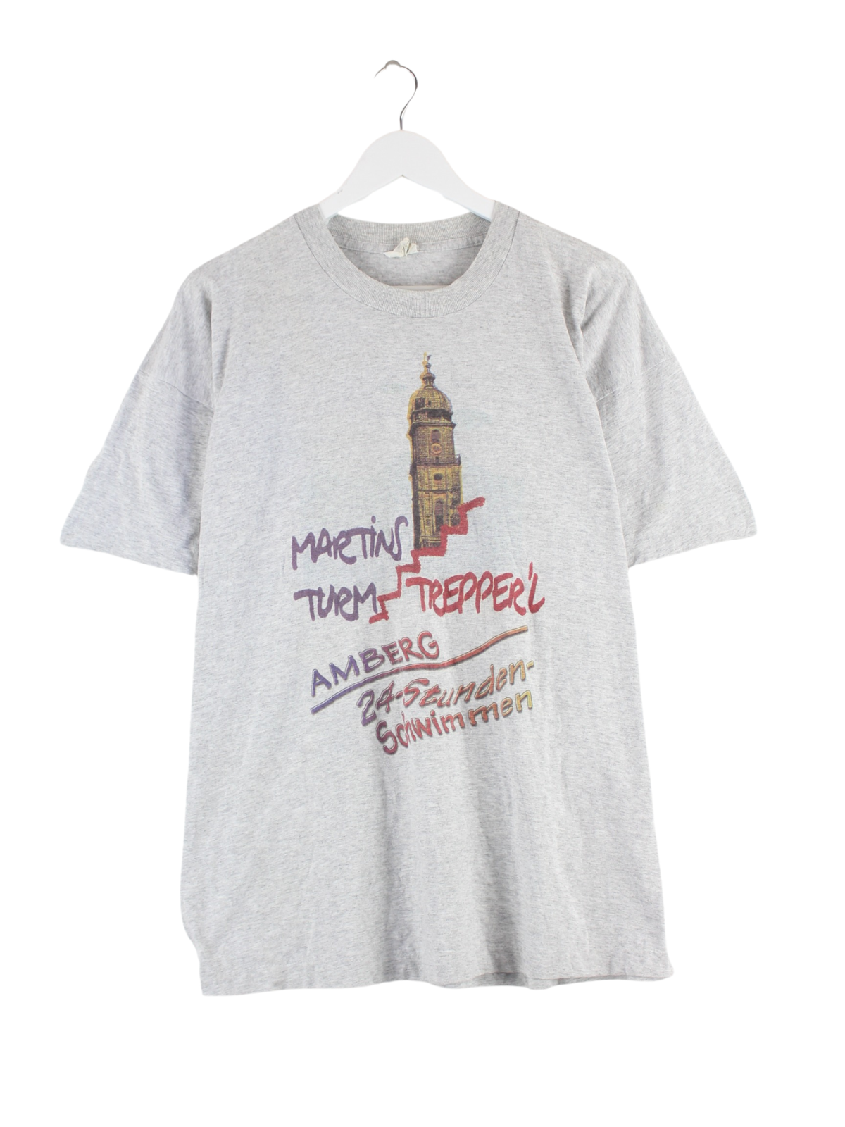 T-shirt from the label Screen Stars in size XL from the 90's. It is made of cotton and comes in grey. With a chic swim print.