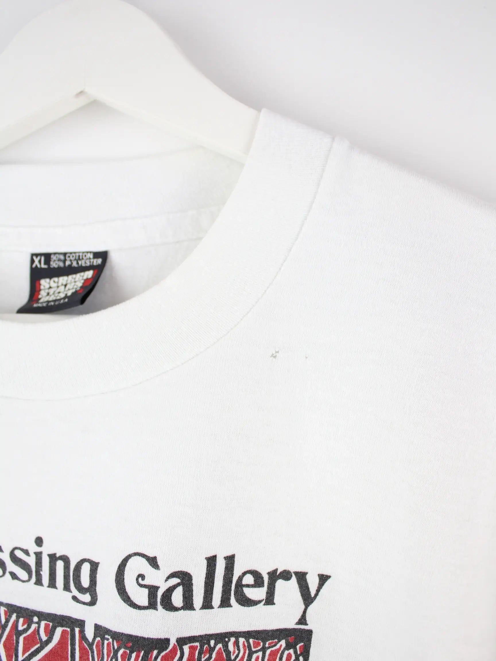T-Shirt vom Brand Screen Stars in Größe XL aus den 90'ern. Es ist aus Baumwolle gefertigt und in Weiß im Angebot. Mit schönem Vintage Print.