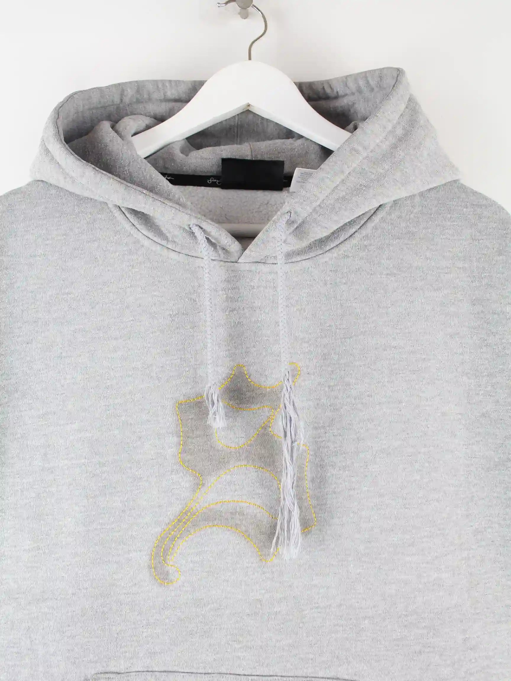 Hoodie des Labels Sean John mit gesticktem Logo in Größe XL aus Anfang der 2000'er. Er ist aus einer Baumwollmischung gemacht und in Grau in Stock.