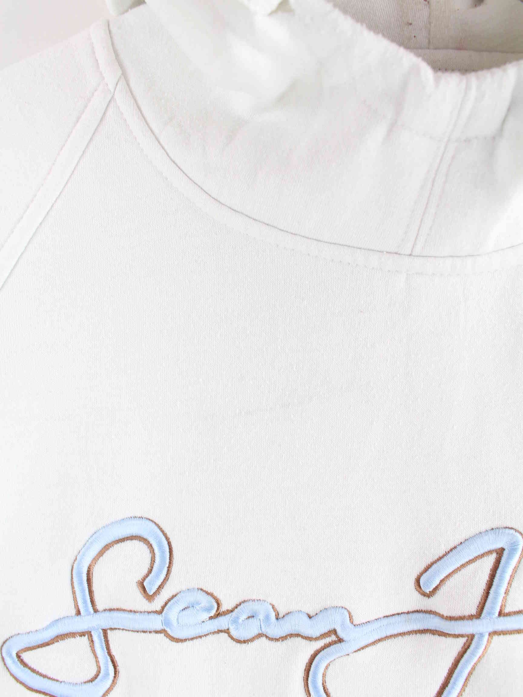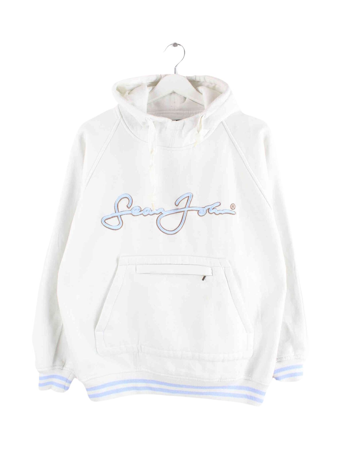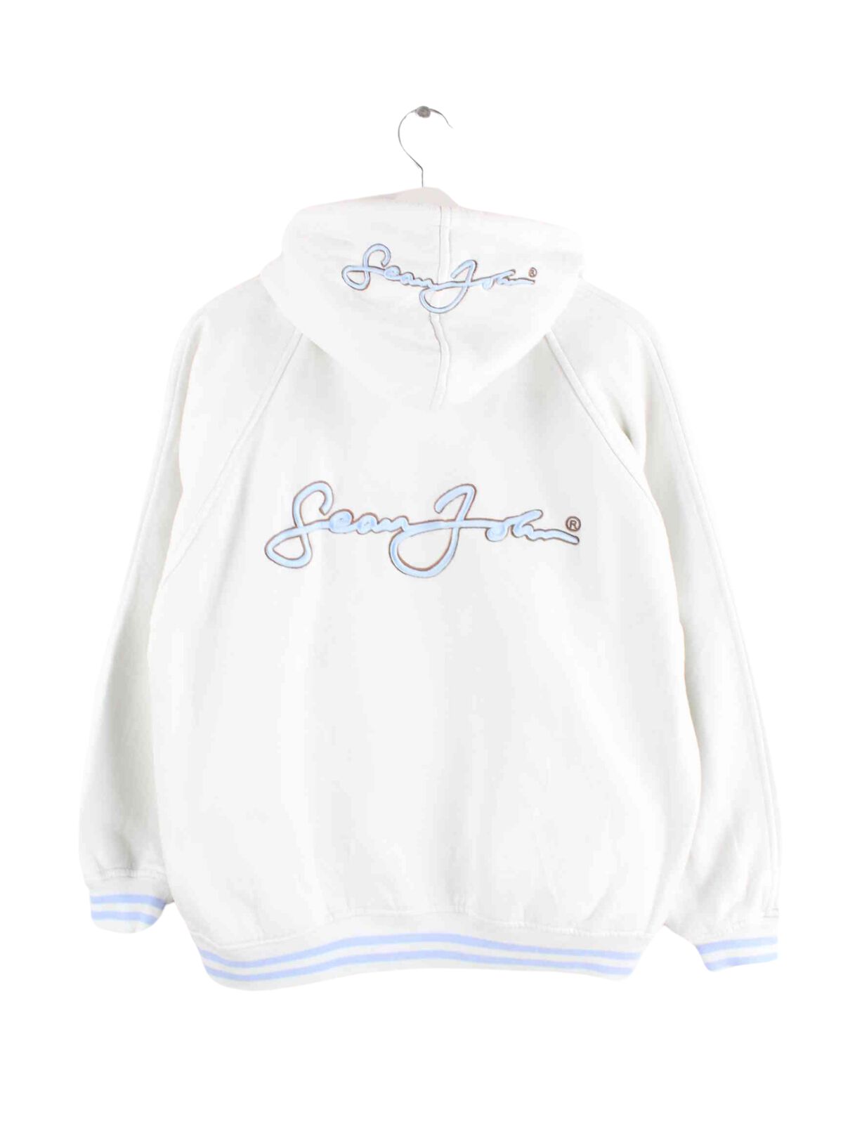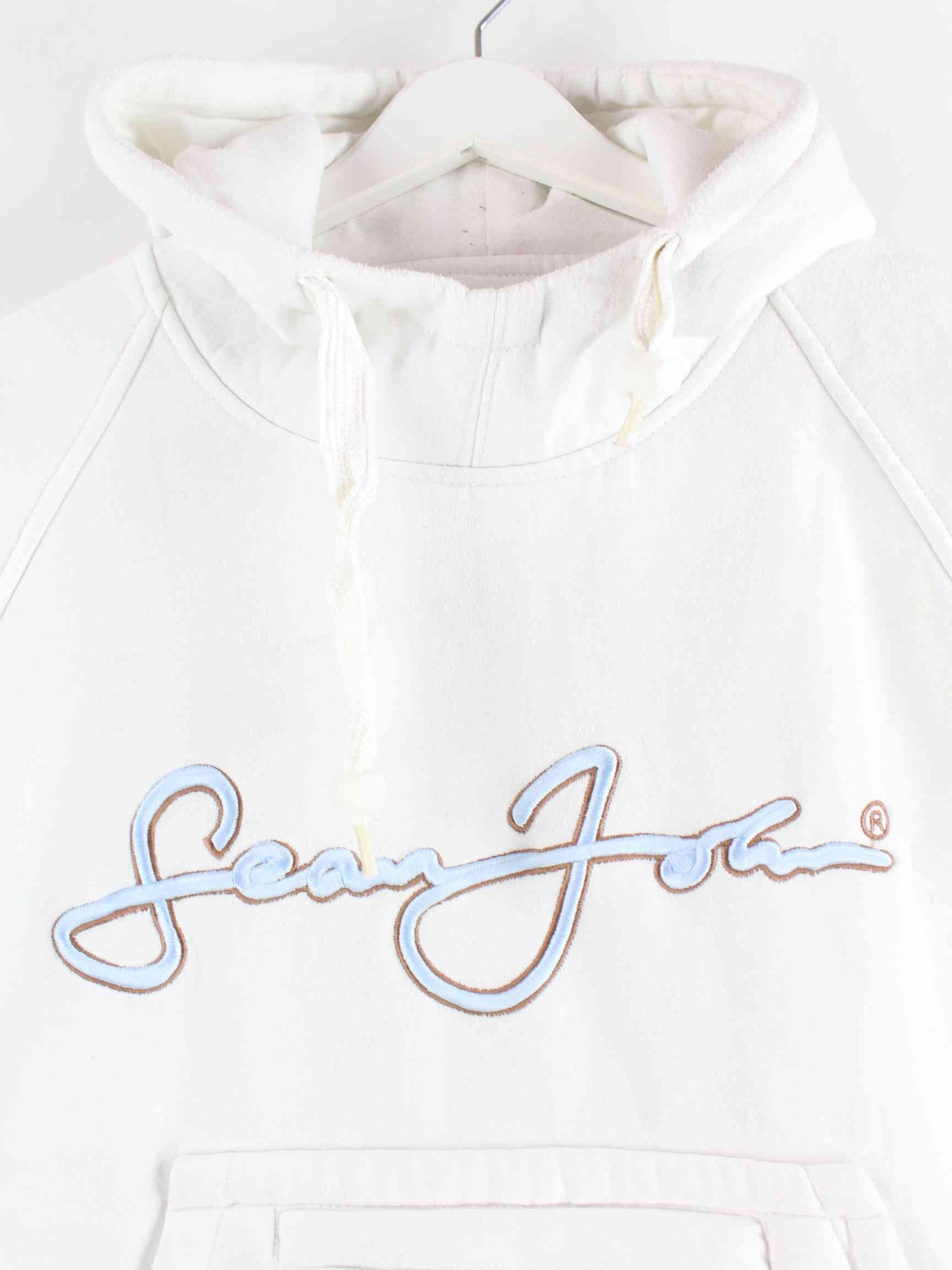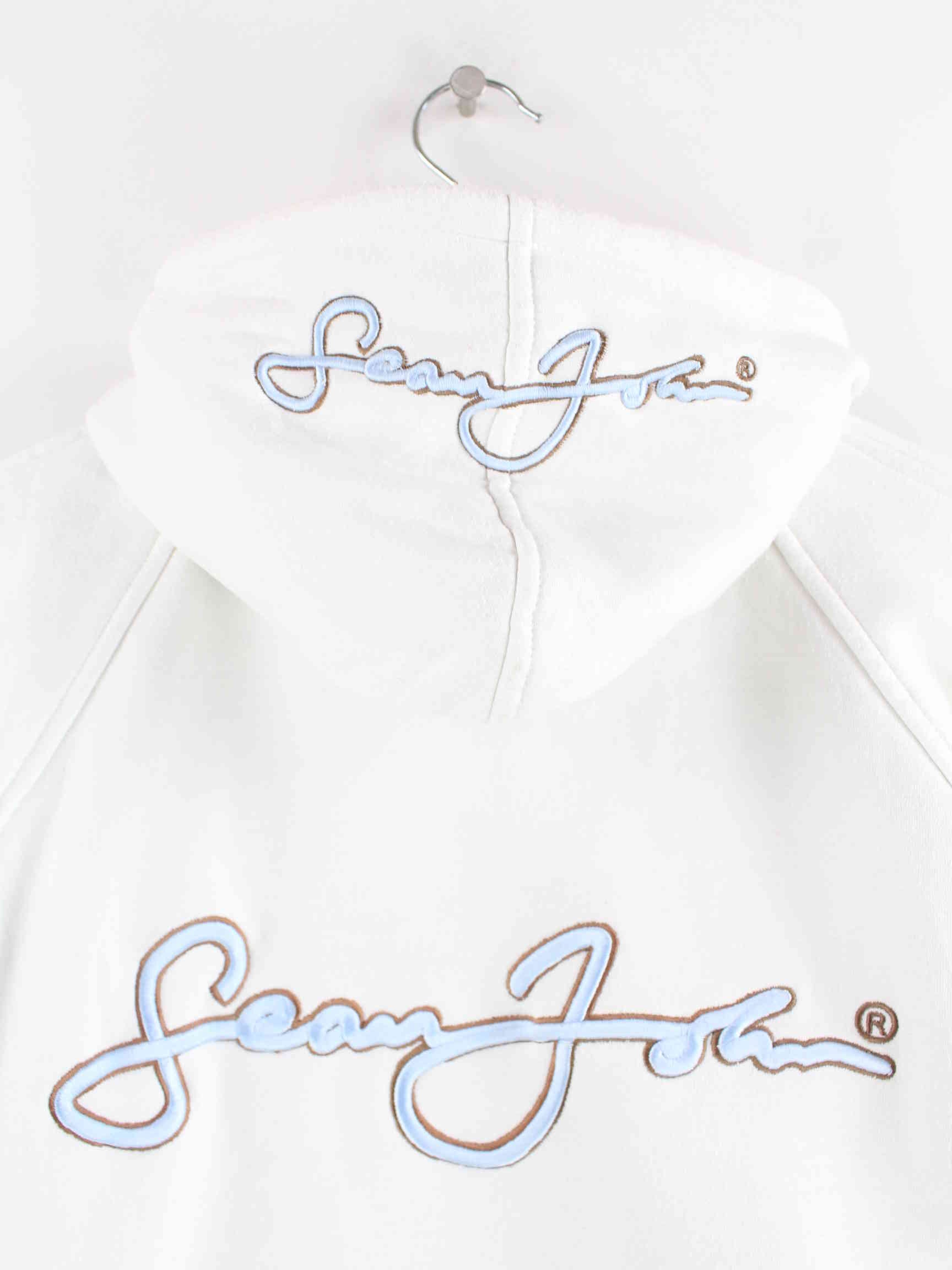 White hoodie with embroidered motifs from the Sean John brand from the early 2000s in size M. It is made of a cotton blend and is on offer in good condition.