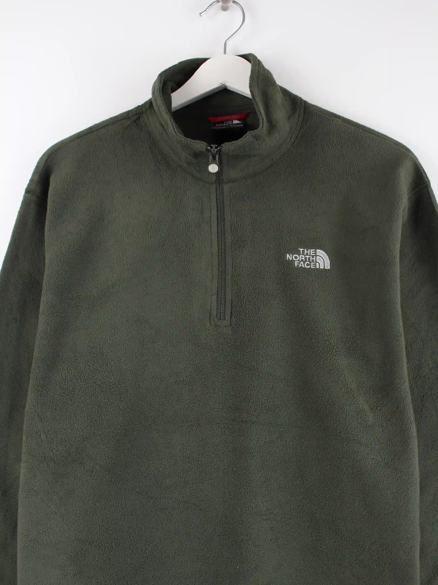 Grüner Sweater mit kurzem Reißverschluß aus dem Hause The North Face in Größe L. Er ist aus kuscheligem Fleece gemacht und in sehr gutem Zustand im Bestand.