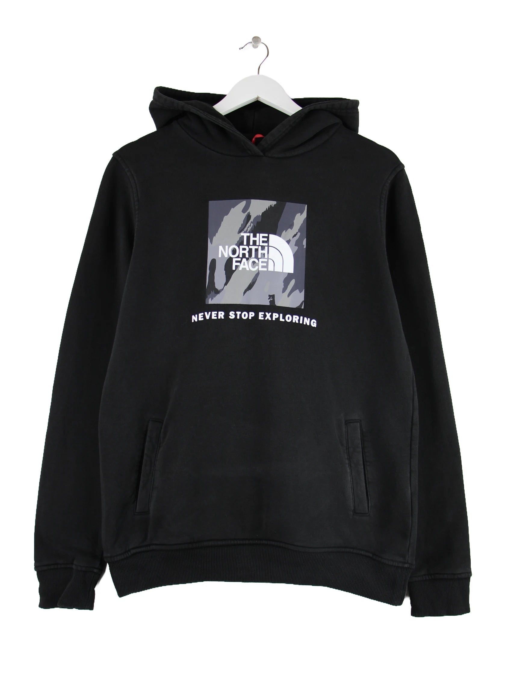 Schwarzer Hoodie vom Label The North Face in Größe M. Er ist aus einer Baumwollmischung gefertigt und in gutem Zustand zu haben. Mit chiquem Print.