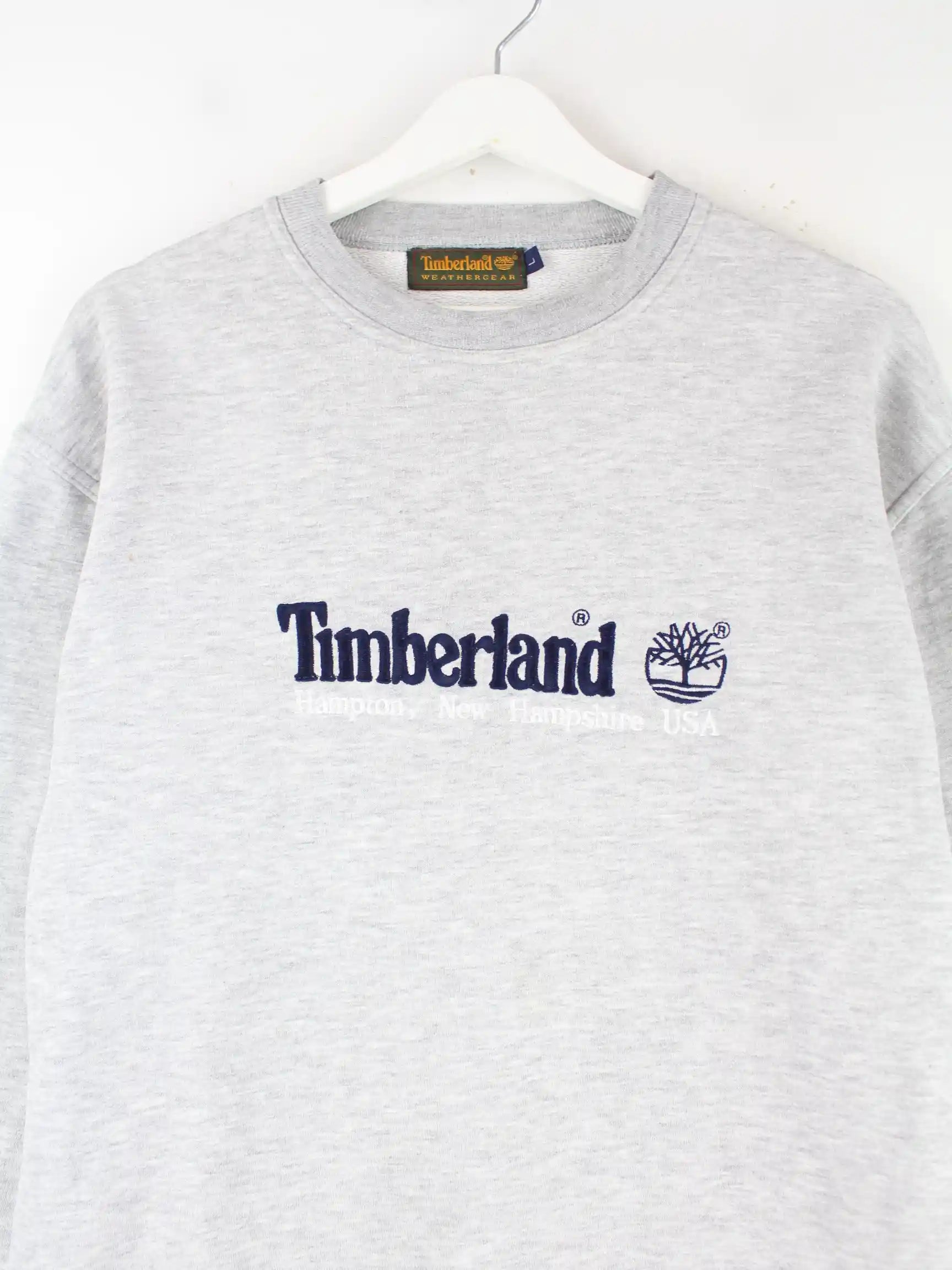 Sweater des Labels Timberland in Größe L aus den 90'ern. Er ist aus einer Baumwollmischung gemacht und in Grau zu bekommen.