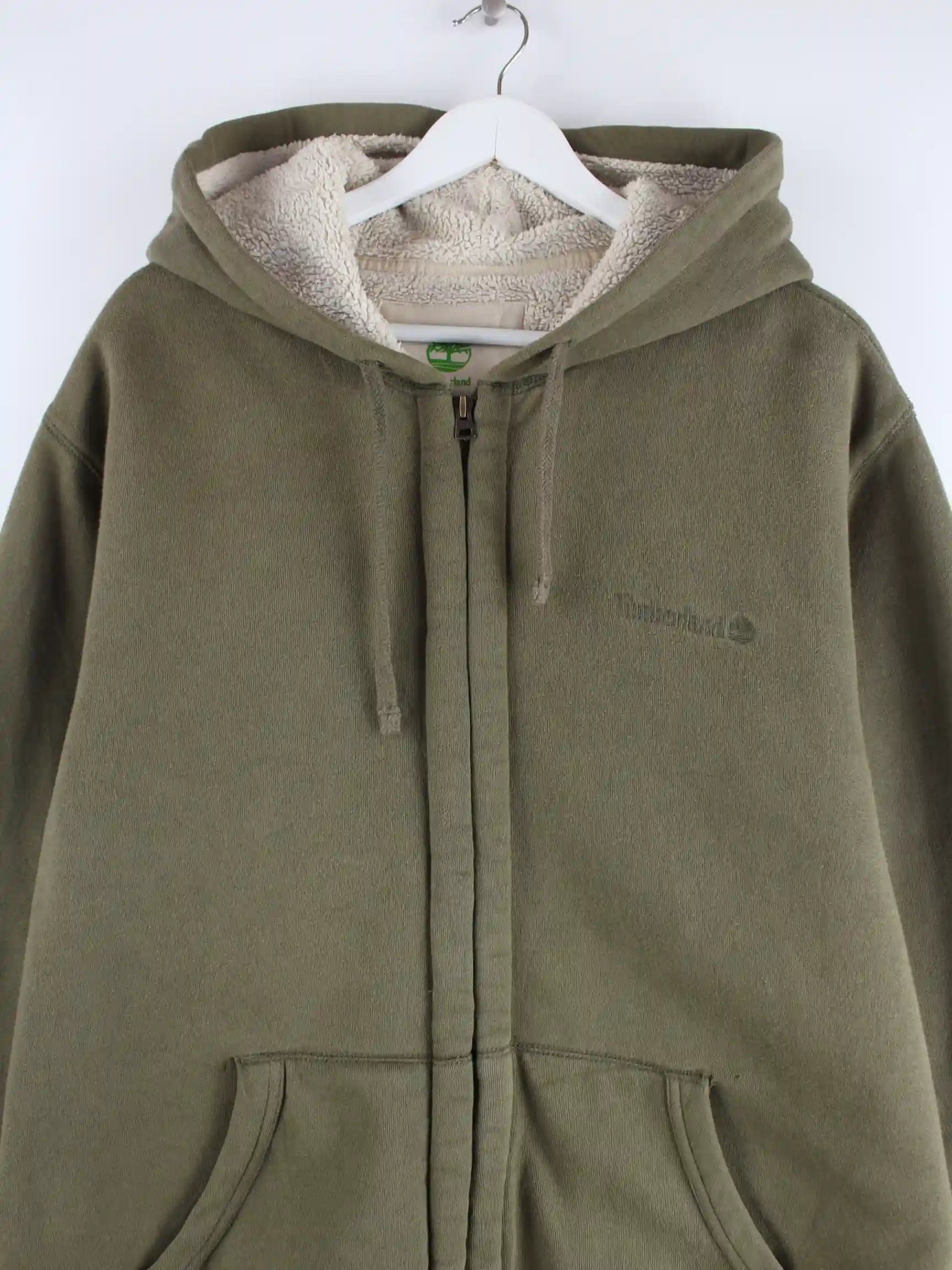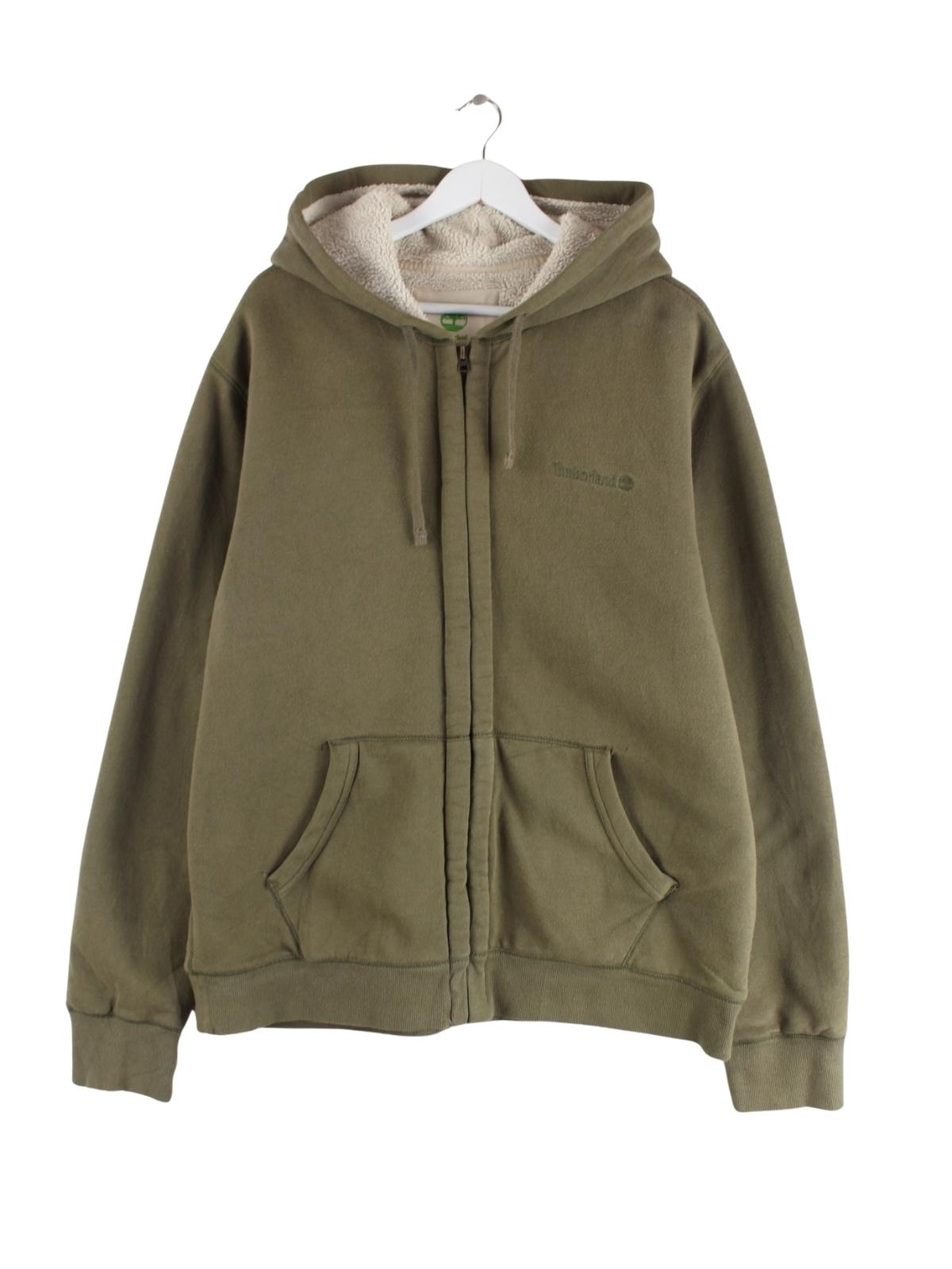 Hoodie aus dem Hause Timberland mit langem Reißverschluß in Größe XL. Er ist aus einer Baumwollmischung produziert und in Grün in Stock.
