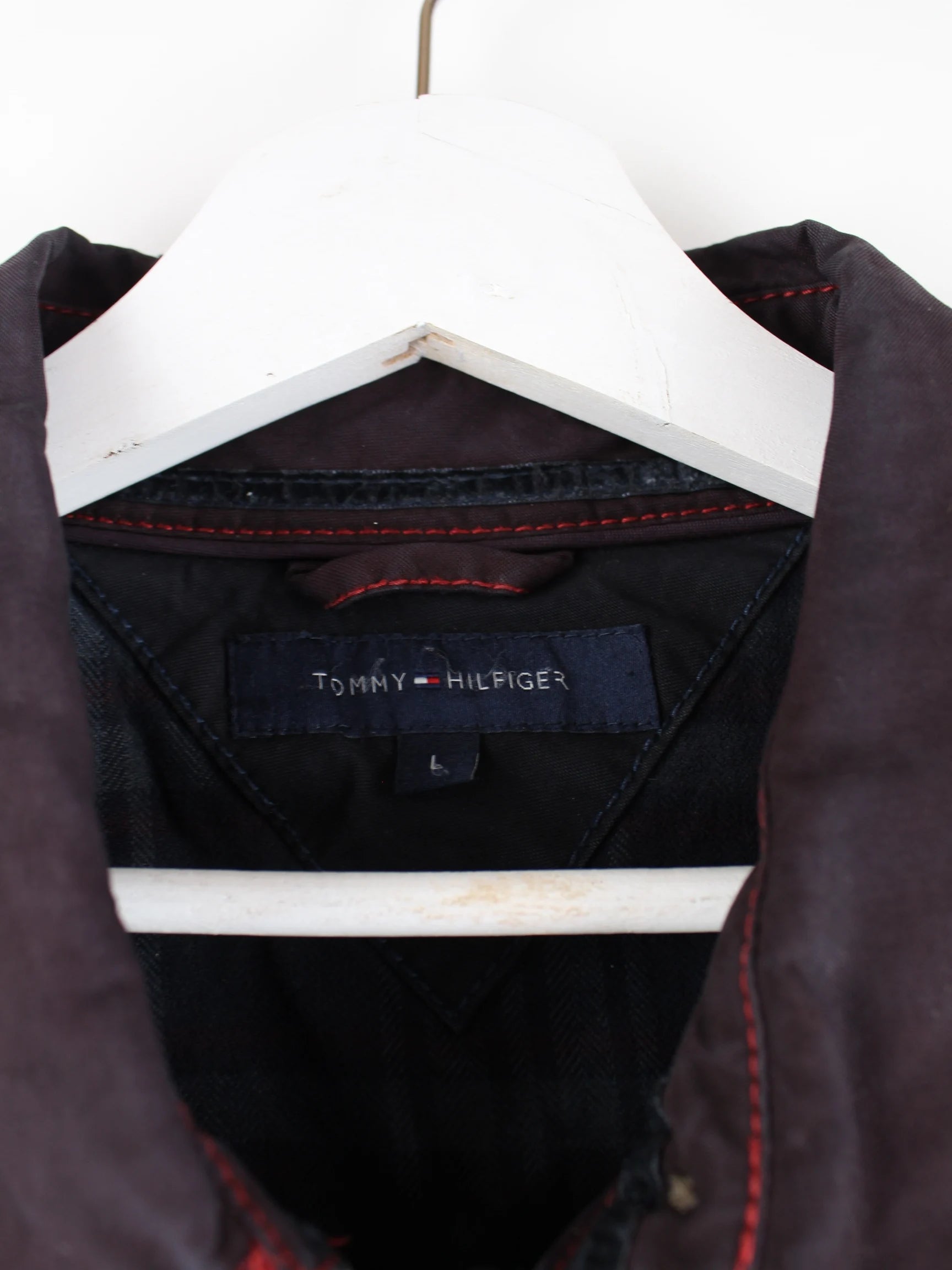 Harrington Jacke vom Brand Tommy Hilfiger in Größe L. Sie ist aus einer Baumwollmischung hergestellt und in Braun auf Lager.
