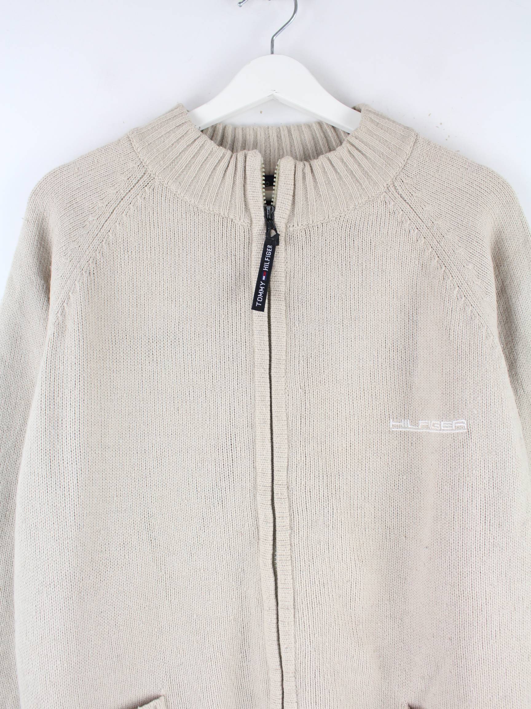 Tommy Hilfiger 90s Vintage Big Logo Embroidered Strickjacke Beige M
