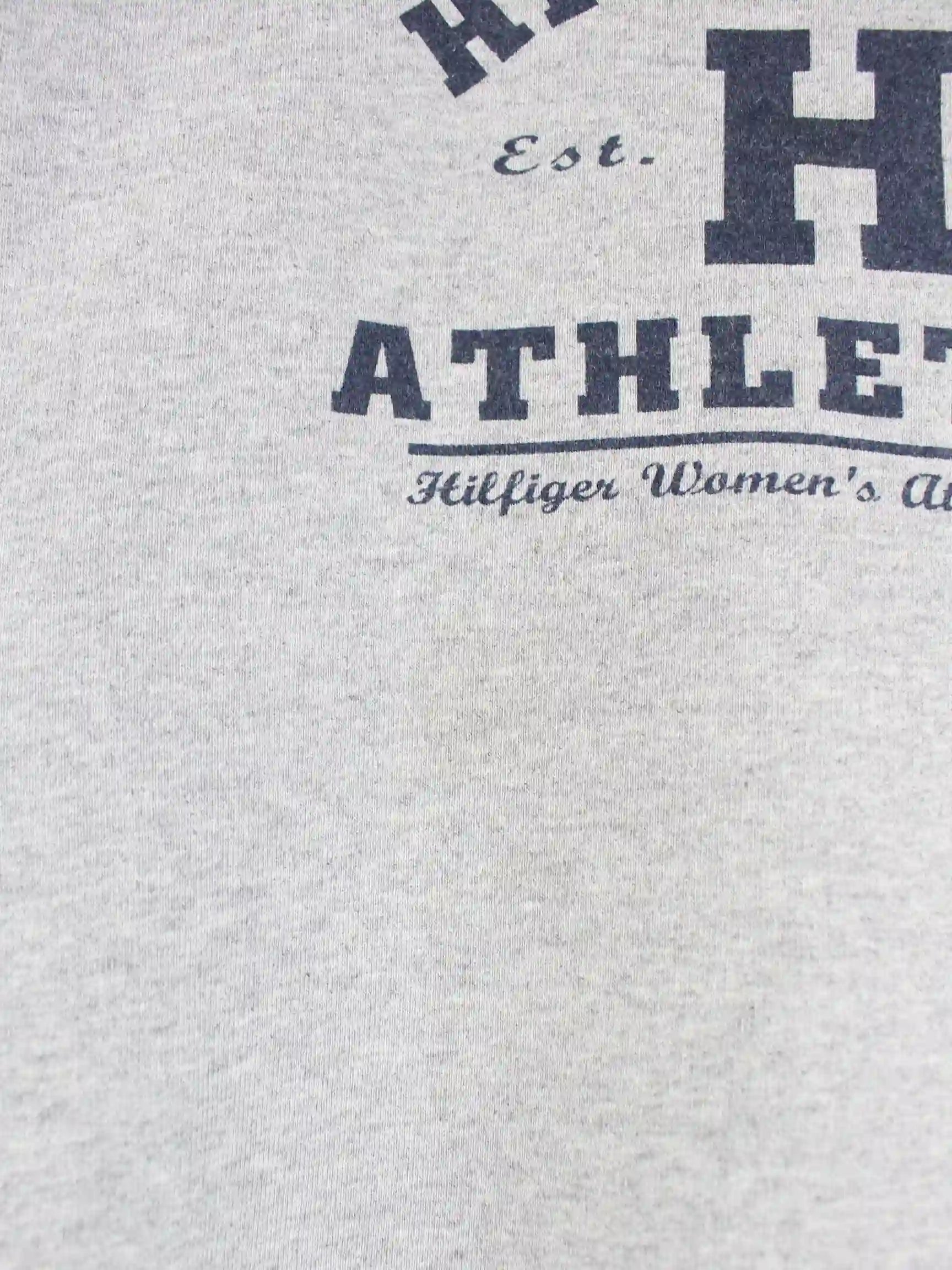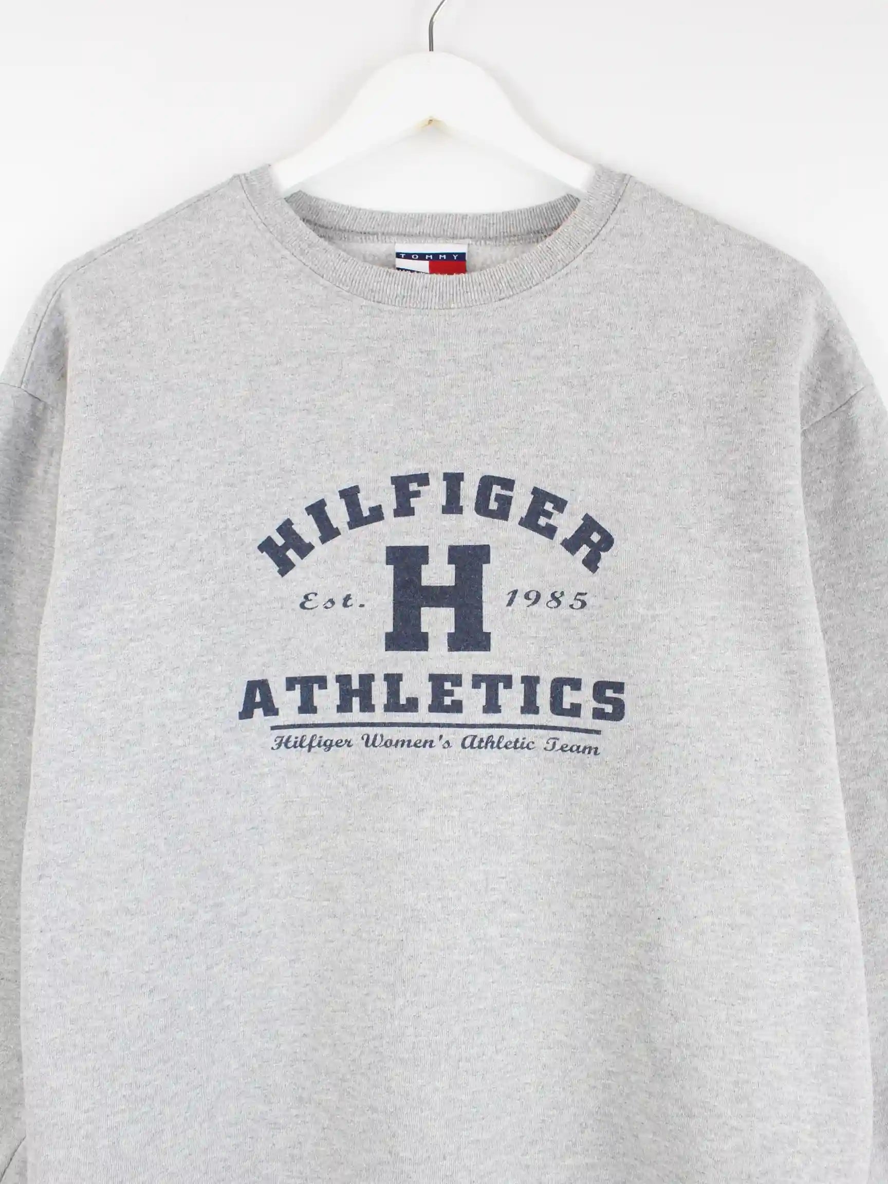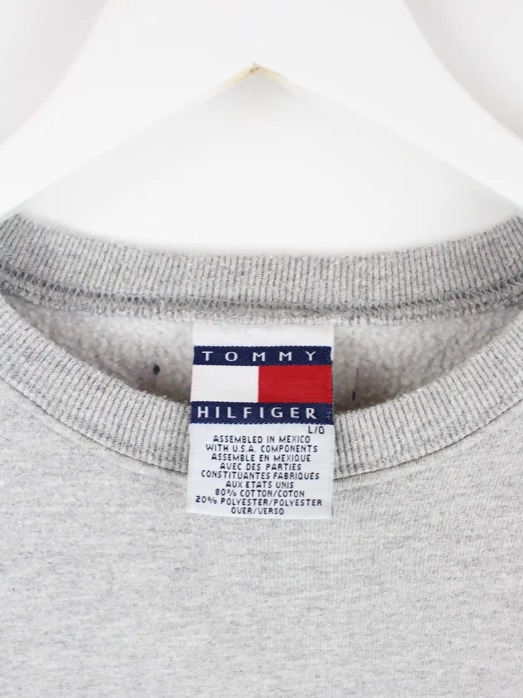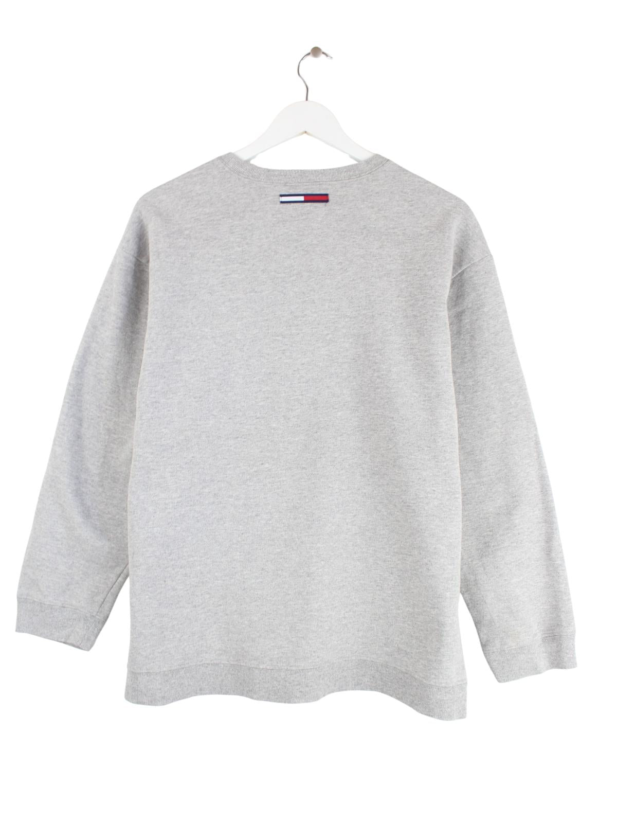 Grauer Sweater der Marke Tommy Hilfiger in Größe L. Er ist aus einer Baumwollmischung angefertigt und in gutem Zustand im Angebot. Mit schickem 00s Print.