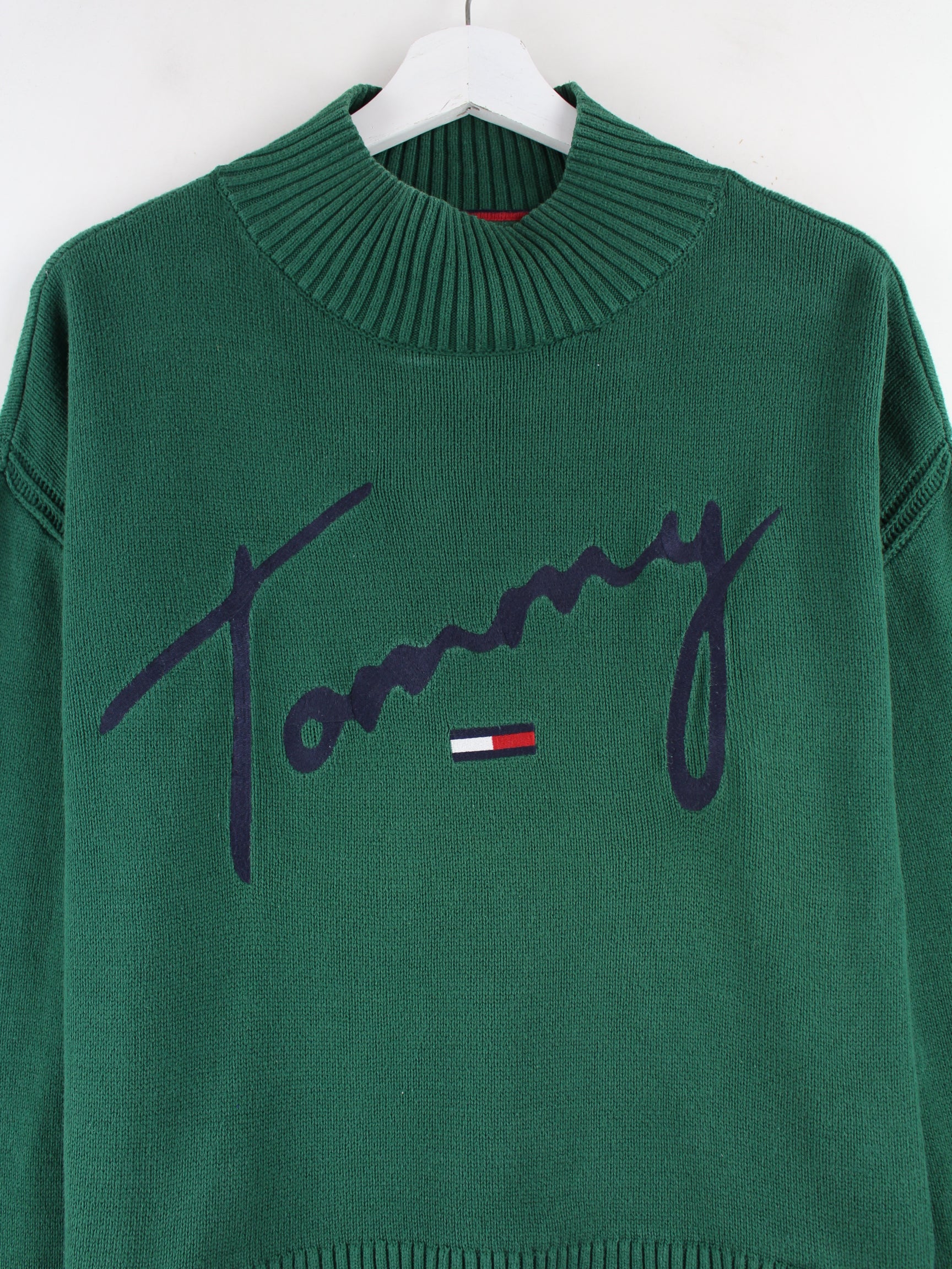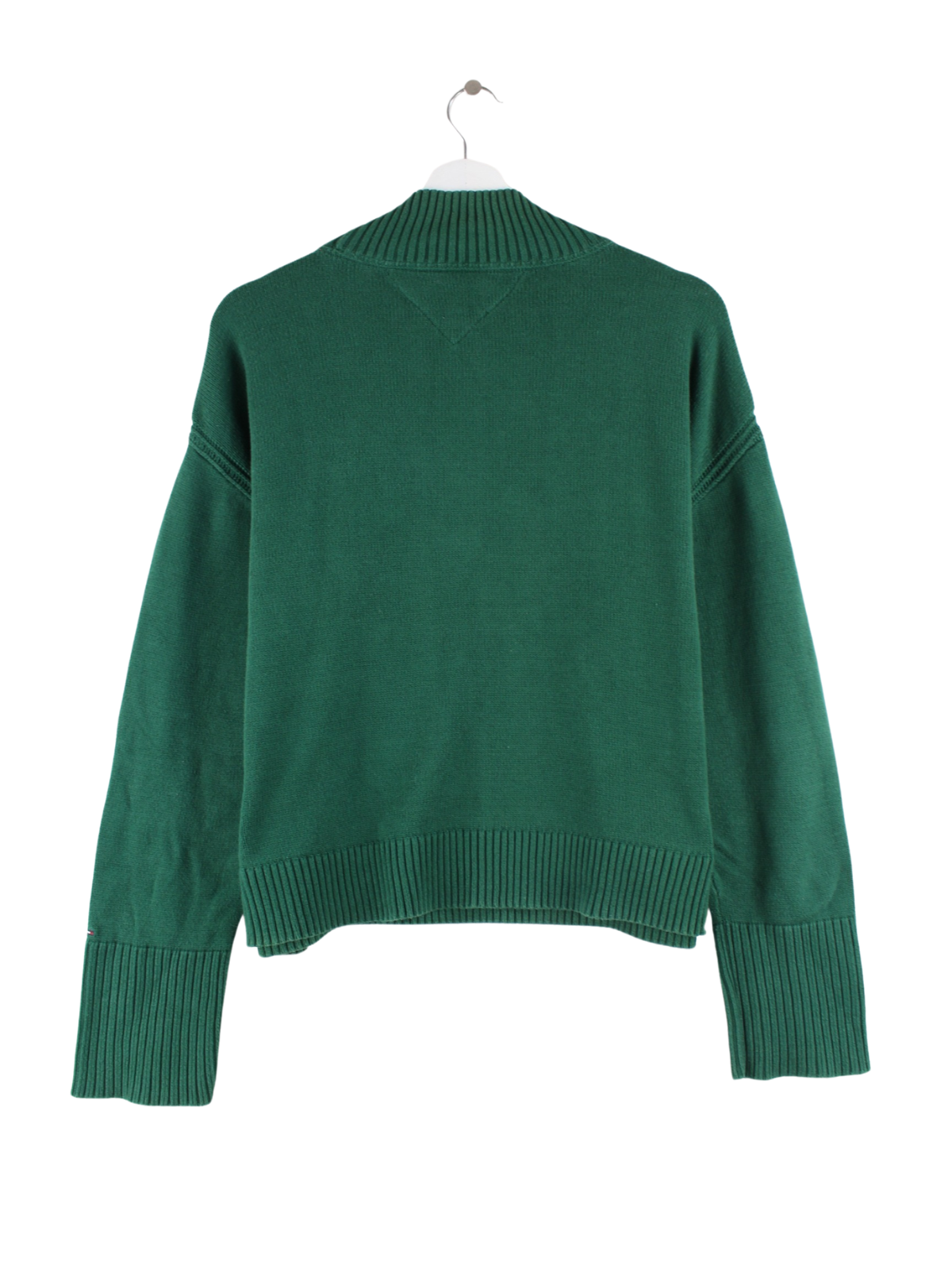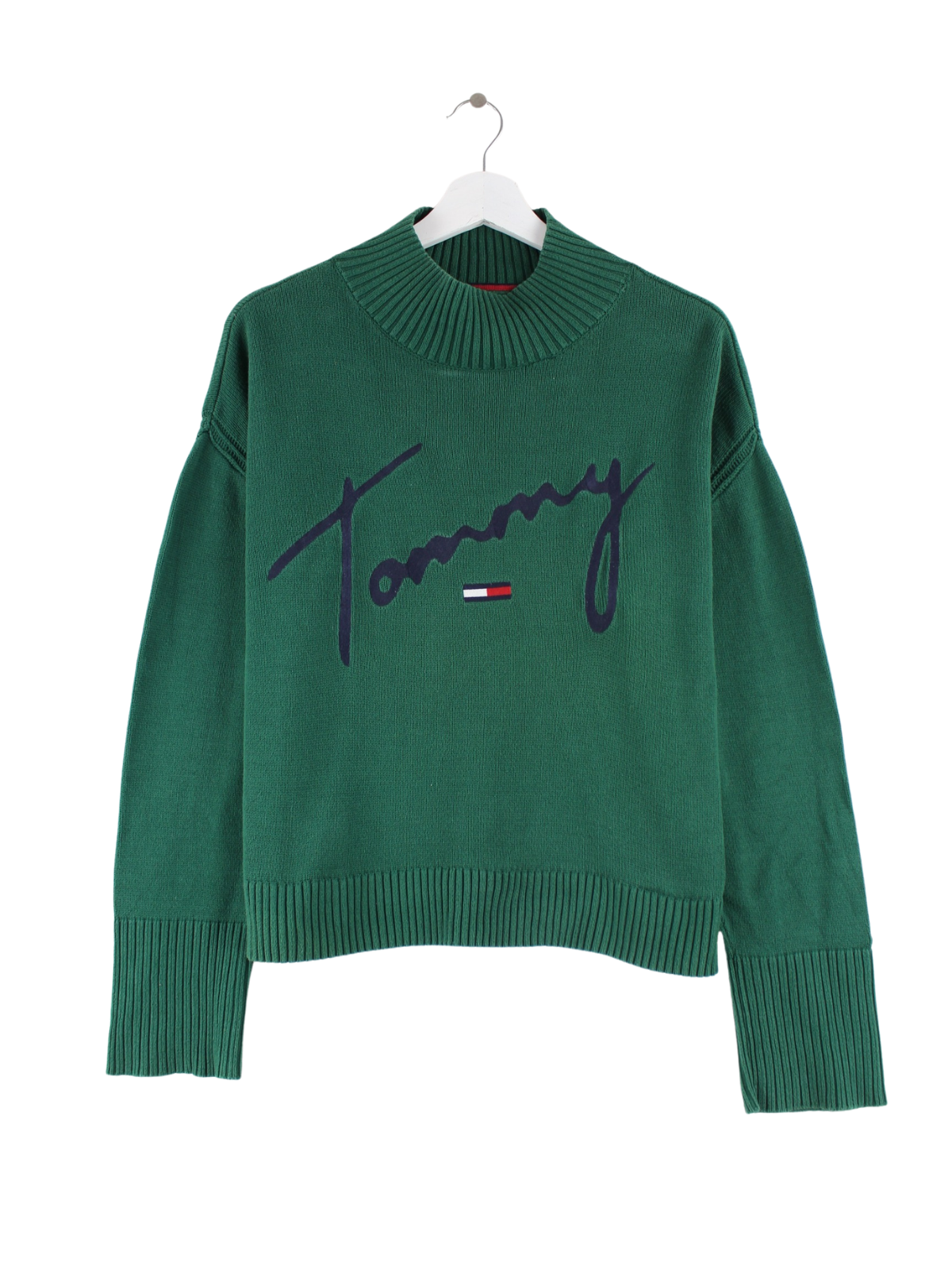 Green sweater with embroidered logo from the Tommy Hilfiger brand in size M. It is made of cotton and is available from us in very good condition.
