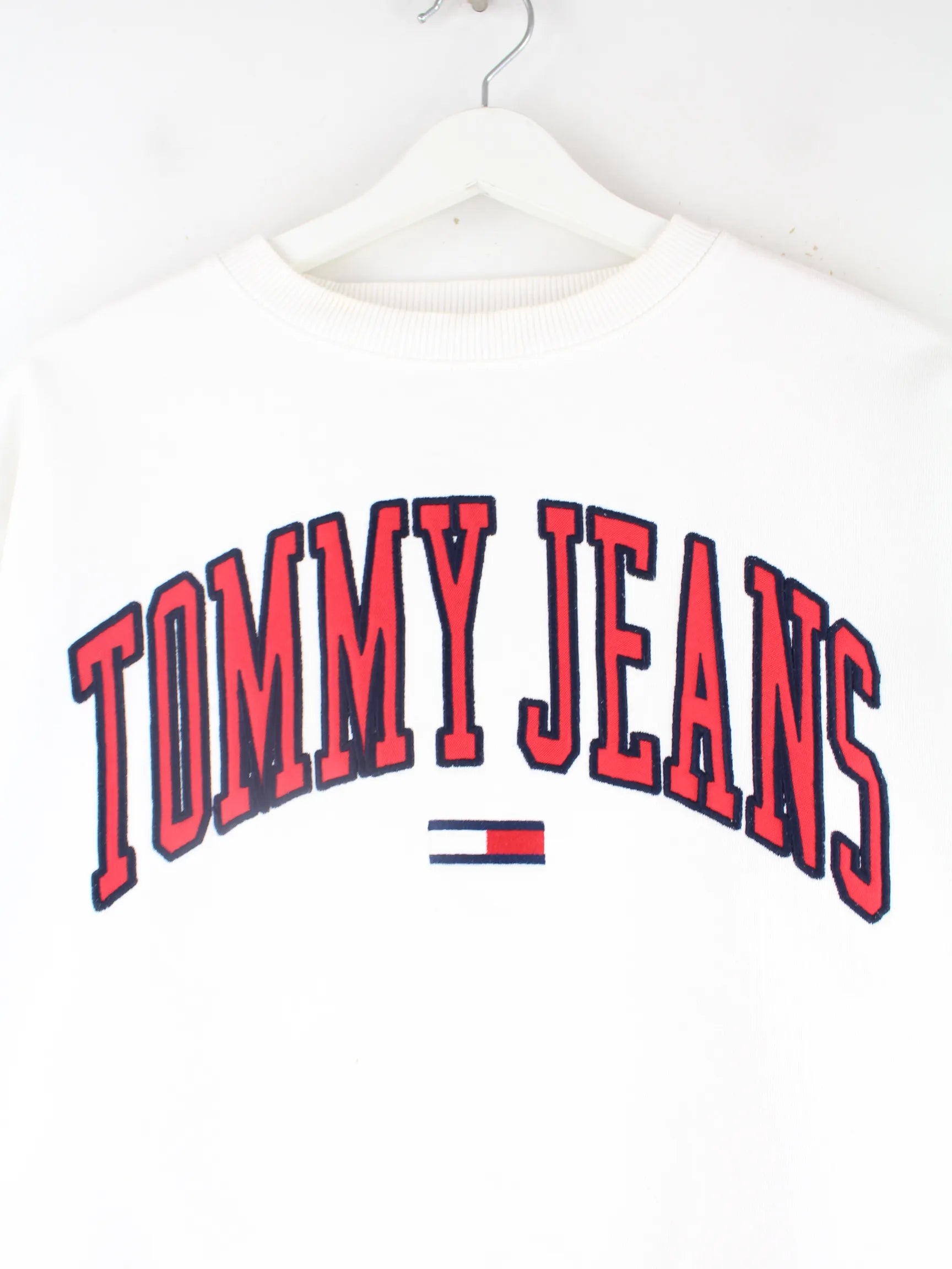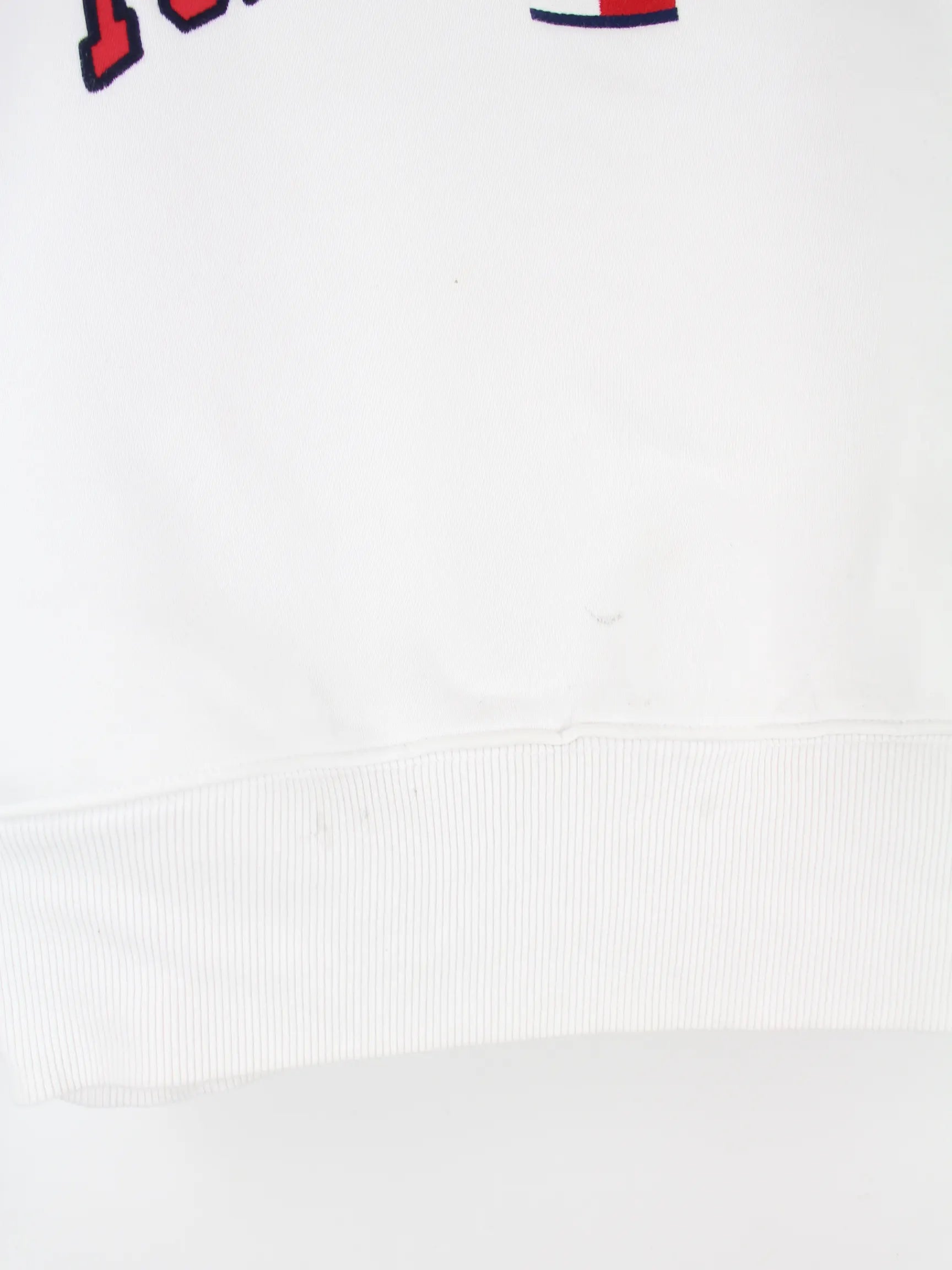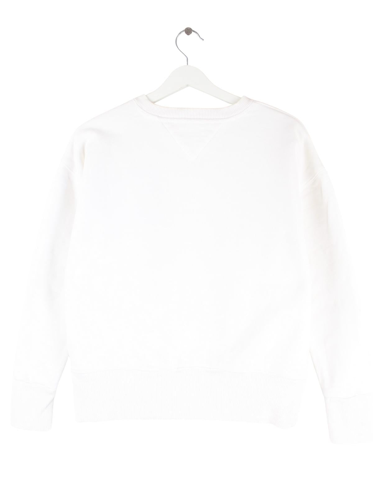 Weißer Sweater vom Brand Tommy Hilfiger aus Anfang der 2000'er in Größe S. Er ist aus einer Baumwollmischung hergestellt. Den Zustand würden wir als 'In Ordnung' bezeichnen (vergl. Bilder).